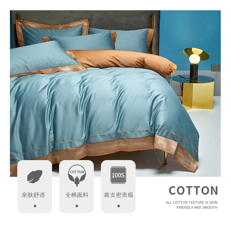 商品名称:爱缦 2021新款星空系列100支长绒棉奥棉四件套 灰蓝
