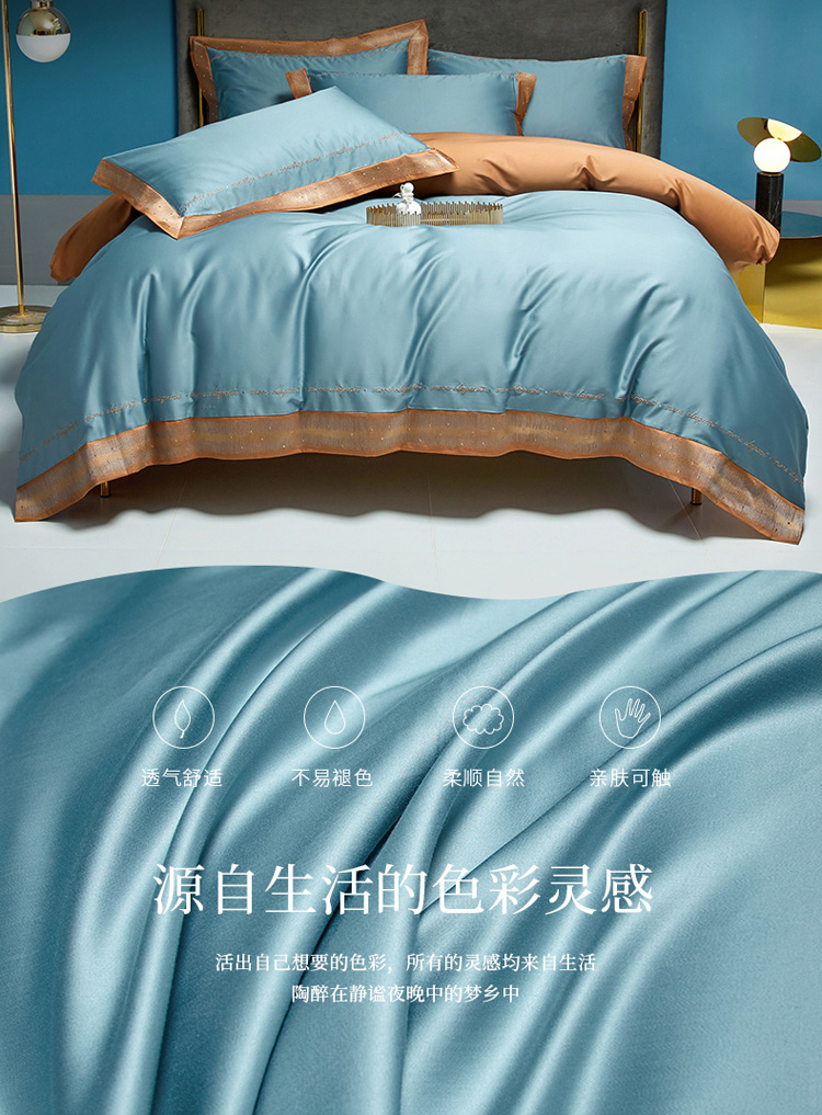 (总)爱缦 新款60支莱赛尔四件套-至真系列,蓝米驼,米白粉,浅紫,玉粉