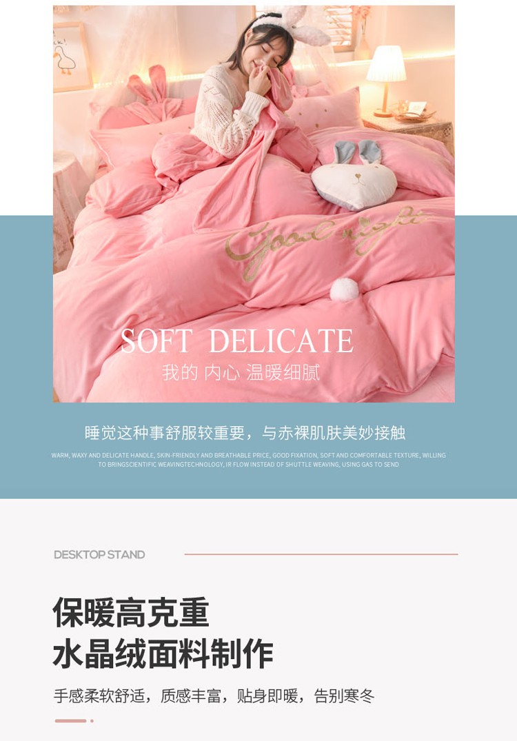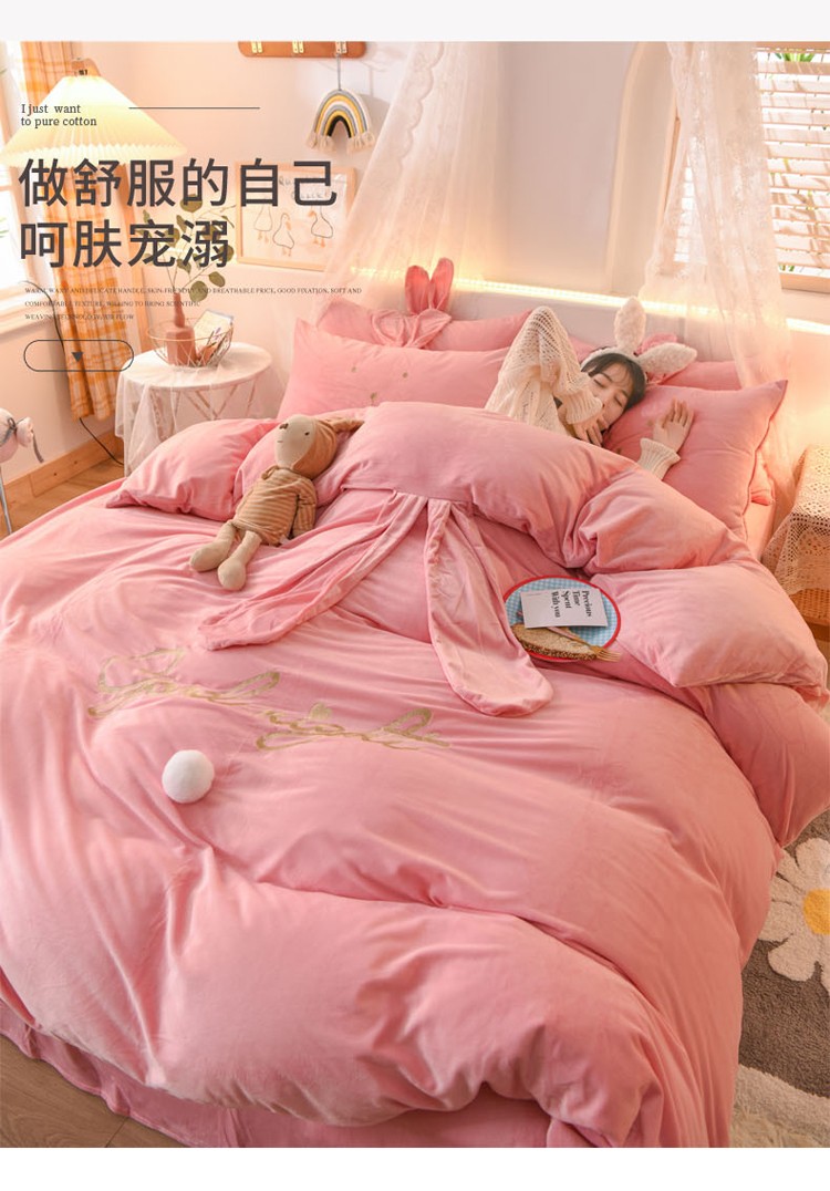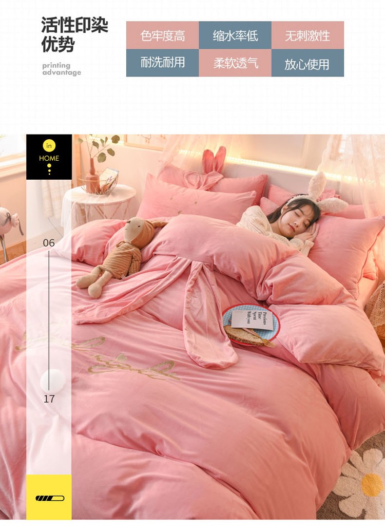 (总)欧冠 2021新款水晶绒绣花兔耳四件套-萌兔