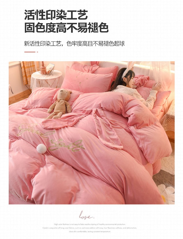 (总)欧冠 2025新款秋冬加厚公主日记牛奶绒四件套,月白,爱马仕橙,风信紫,高级灰,宁静蓝,藕荷粉,珊瑚粉