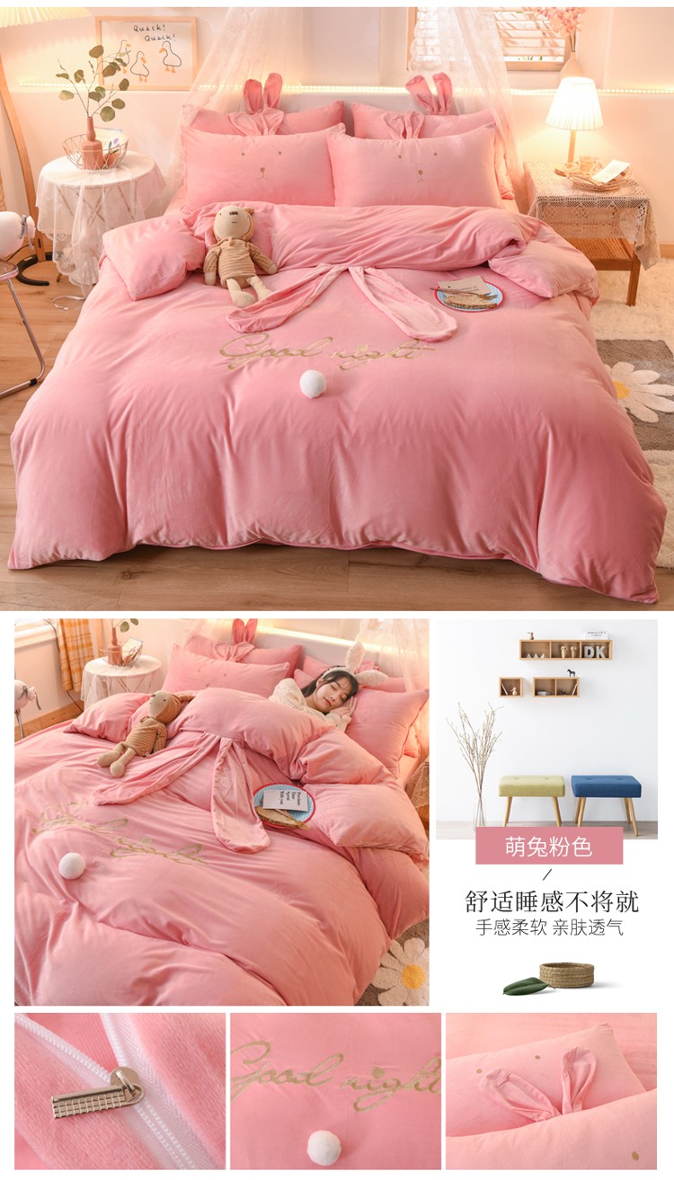 商品名称:(总)欧冠 2021新款水晶绒绣花兔耳四件套-萌兔