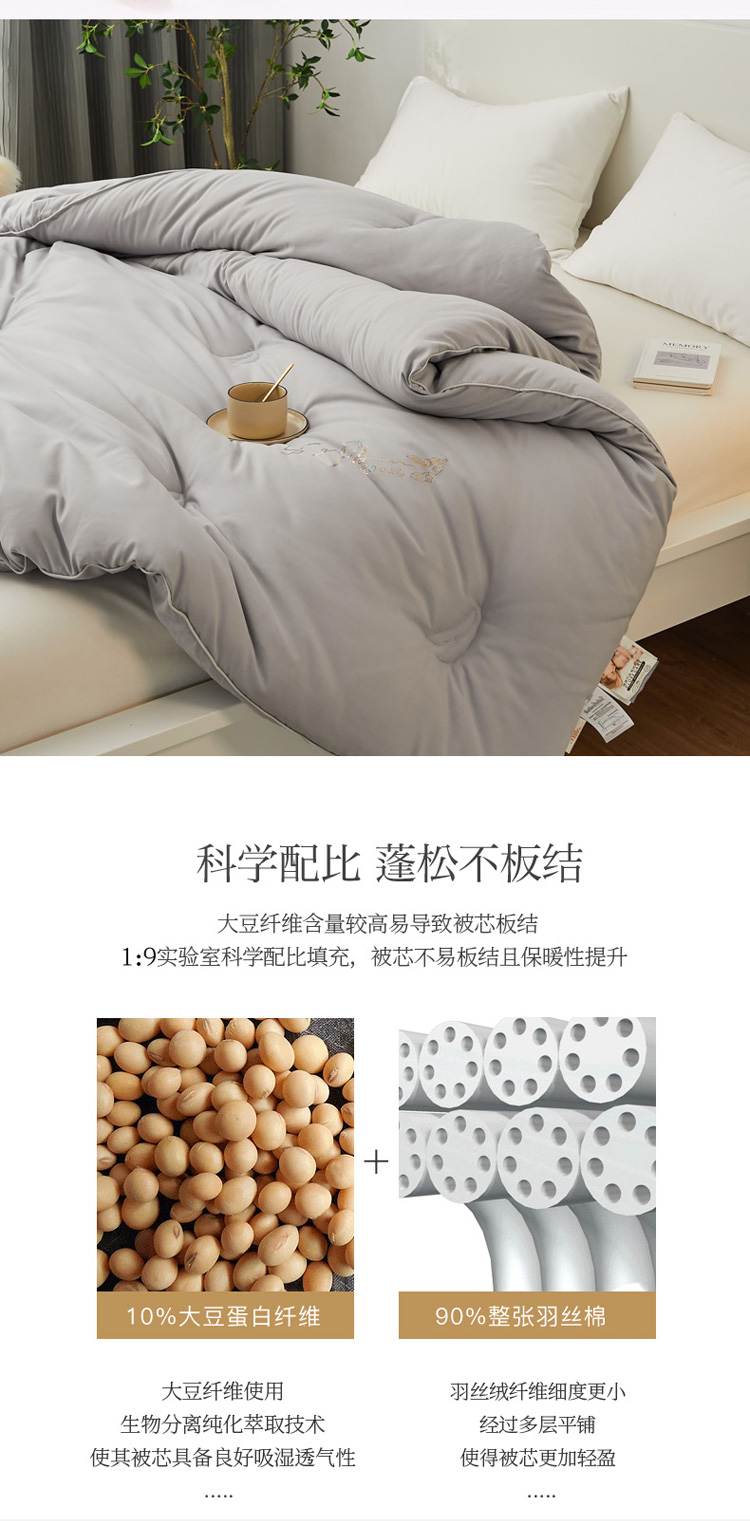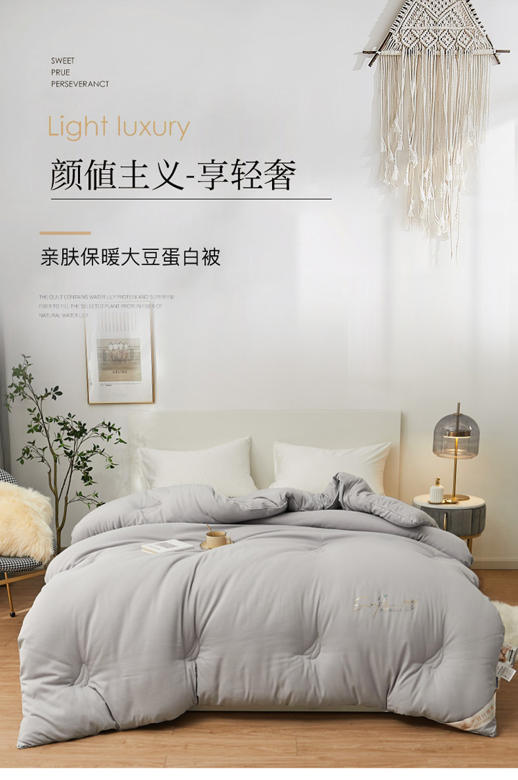 • 91家纺网 家纺一手货源 找家纺 慕尚 2022新款磨毛镶钻大豆冬被暖色调 大豆灰