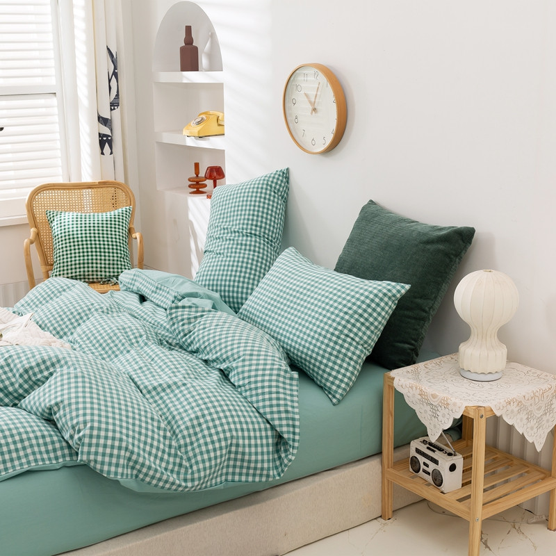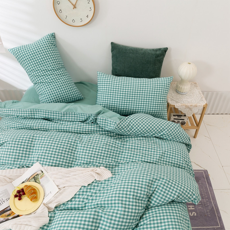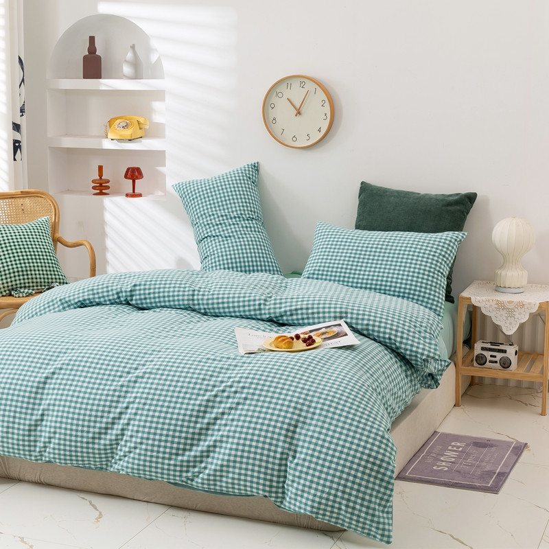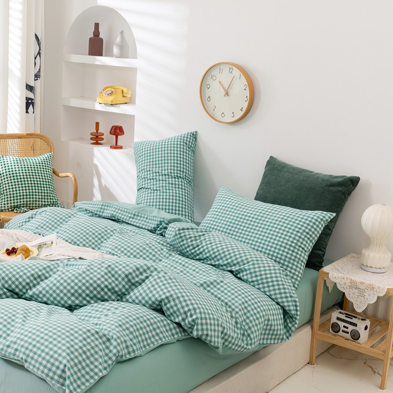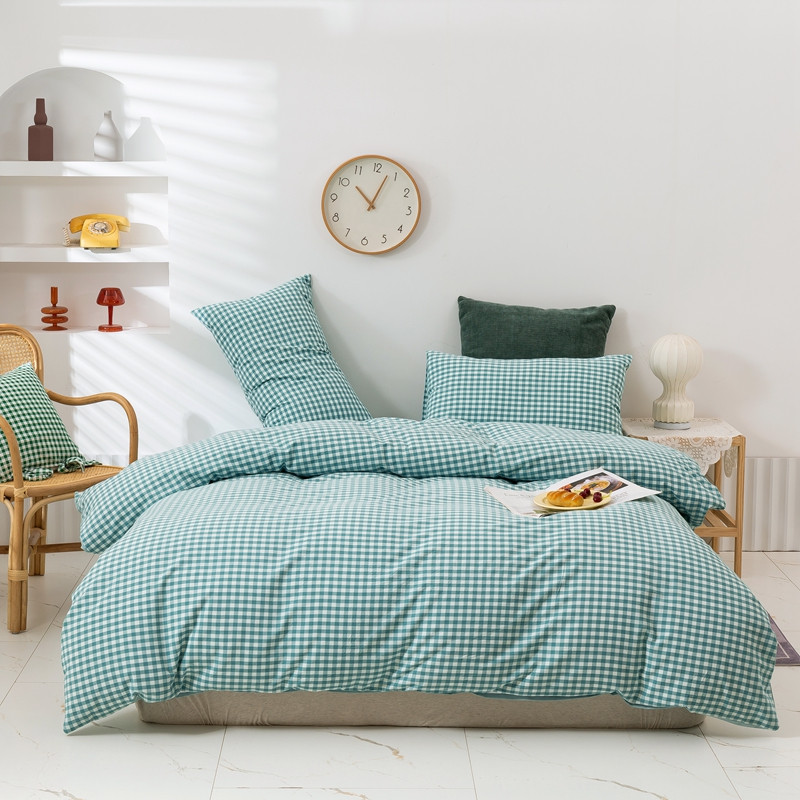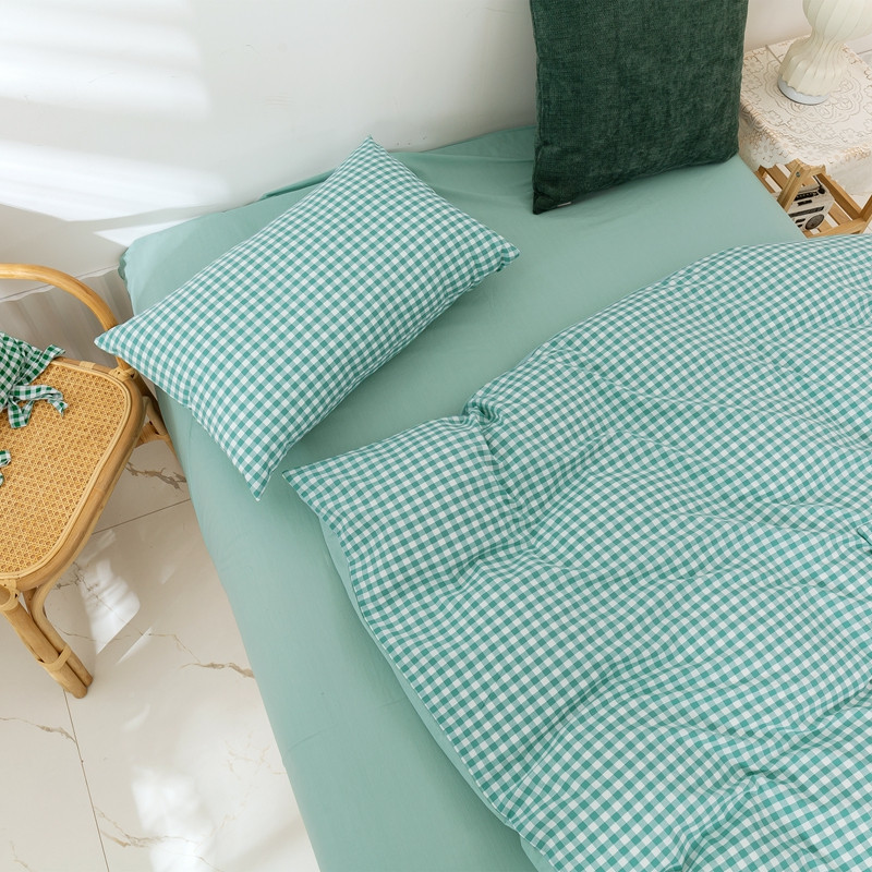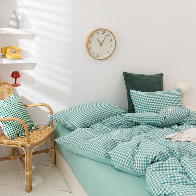 简色坊 2023新款全棉水洗棉四件套薄荷小格