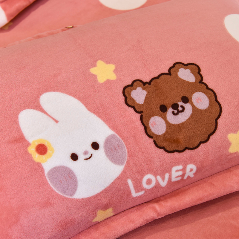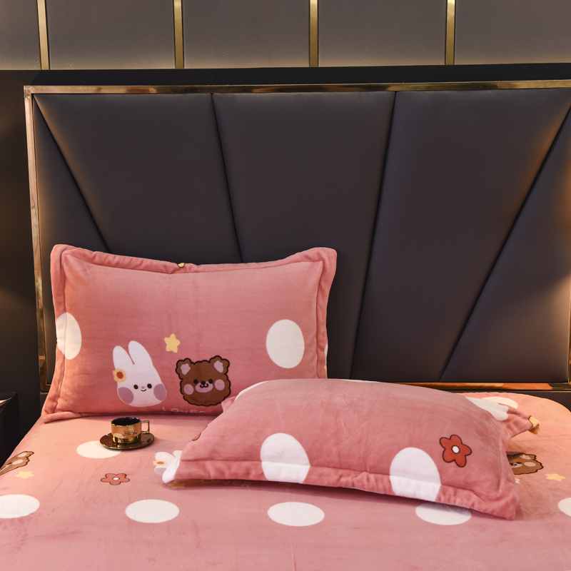 商品名称:锦罗绣 2021新款牛奶绒印花单品枕套一对粉底小兔