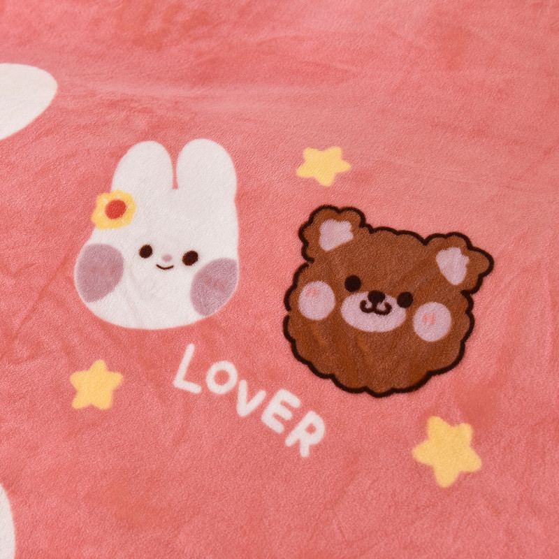 锦罗绣 2021新款牛奶绒印花单品枕套一对粉底小兔