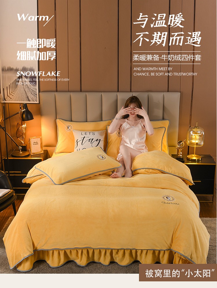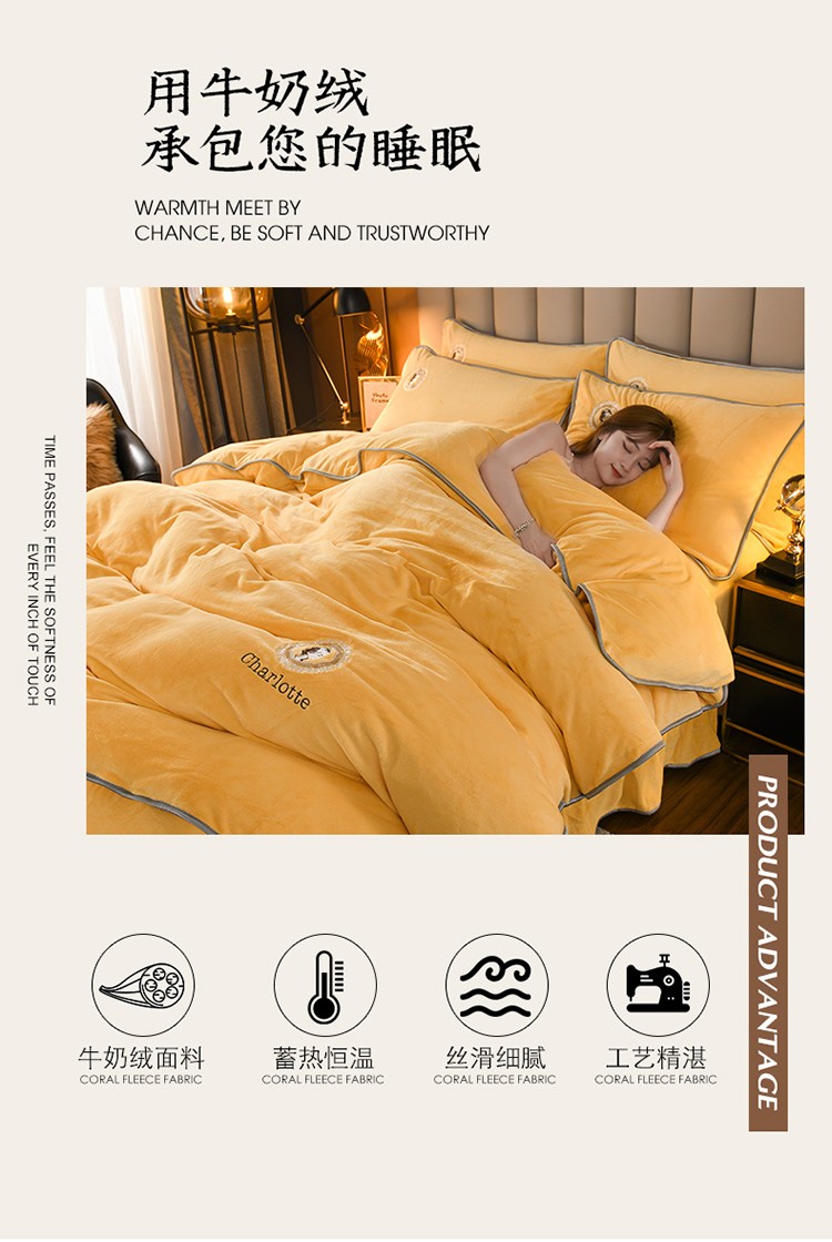 商品名称:迷仙巢 2021新款牛奶绒系列四件套枫叶 枫叶-鹅蛋黄