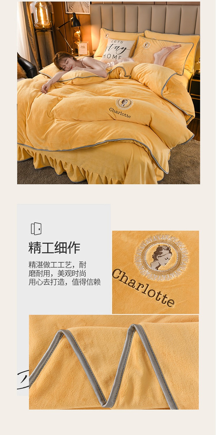 迷仙巢 2021新款牛奶绒系列四件套枫叶 枫叶-鹅蛋黄