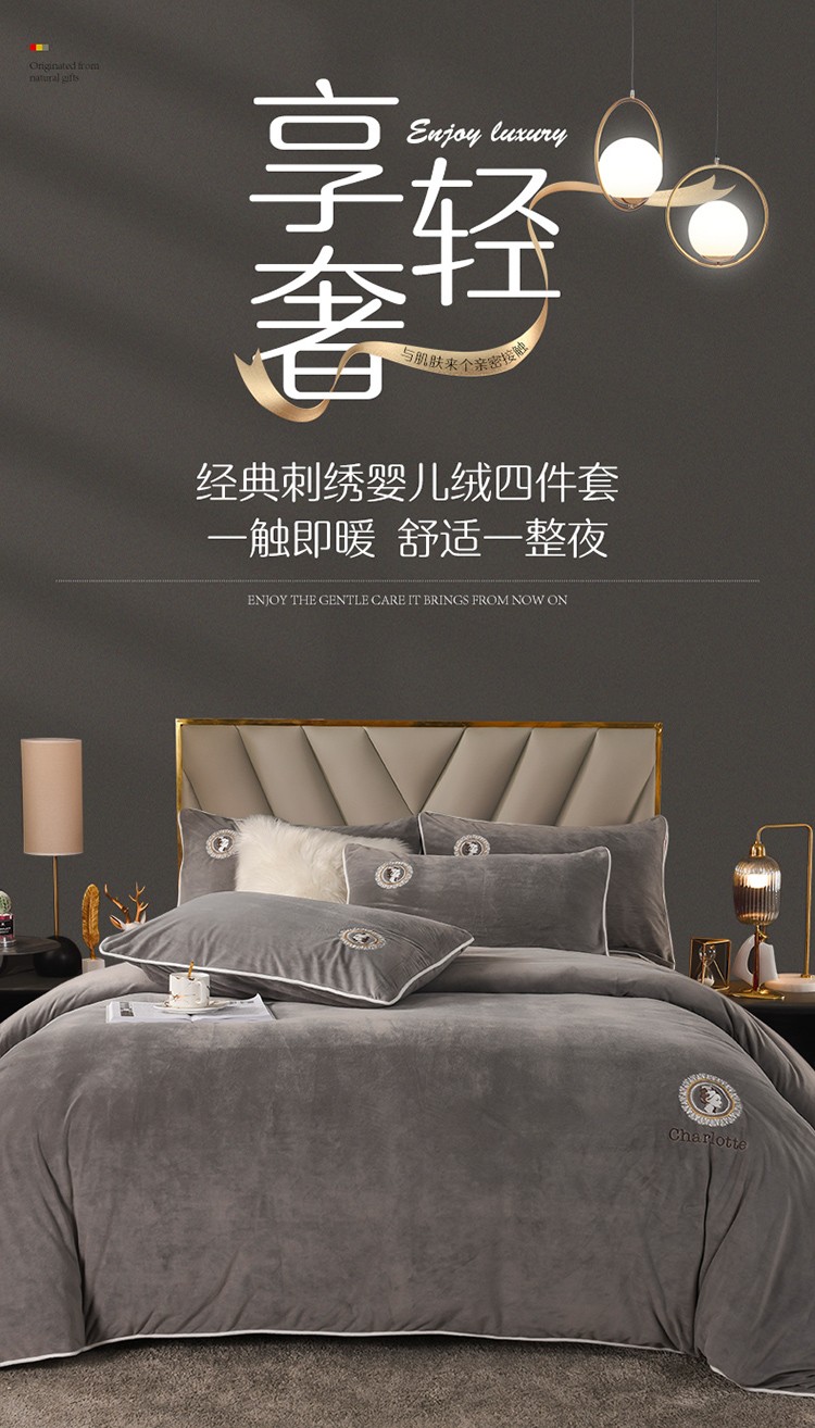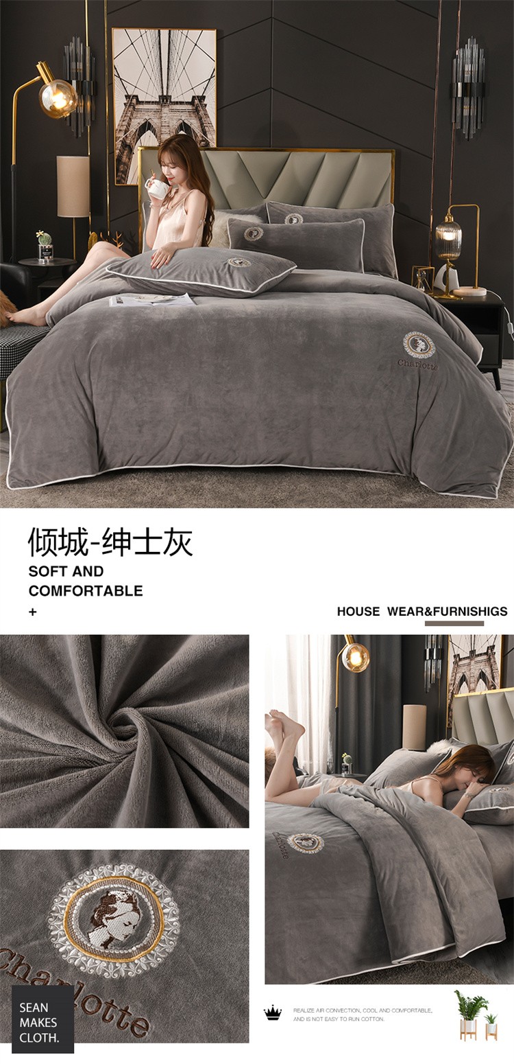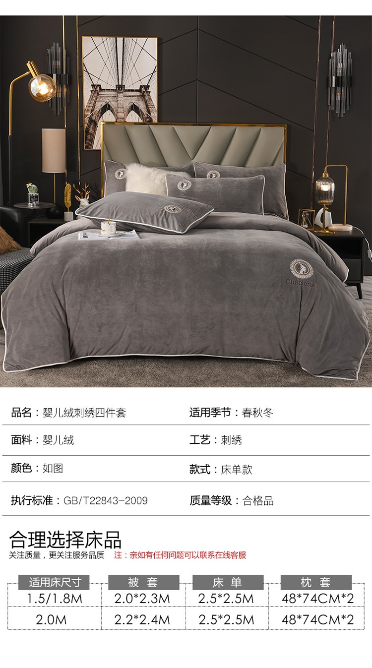 商品名称:迷仙巢 2021新款婴儿绒系列四件套倾城 倾城-绅士灰