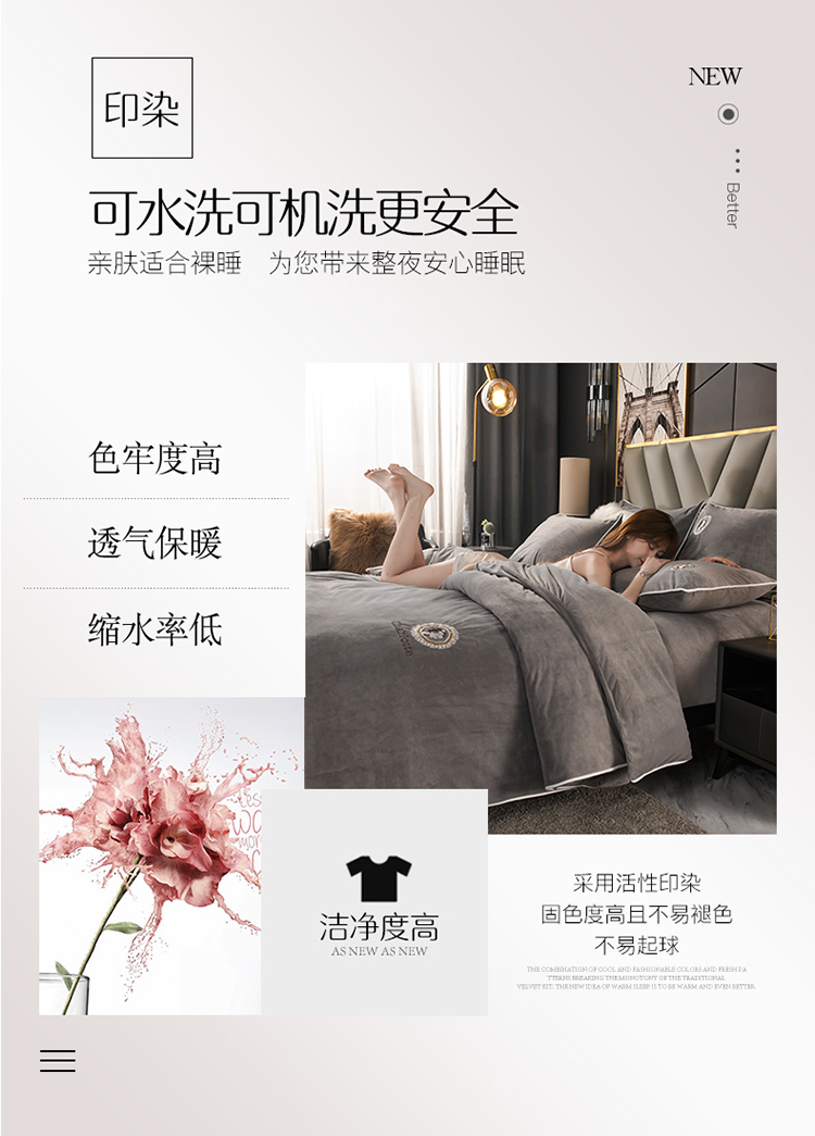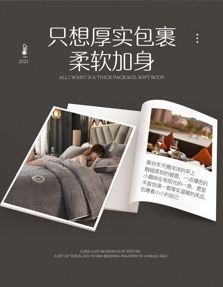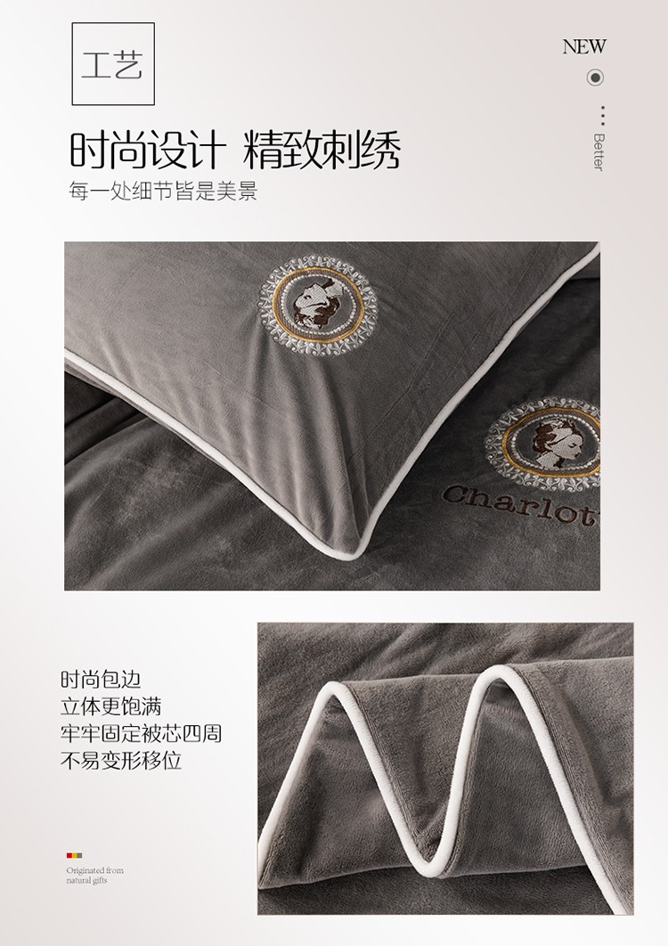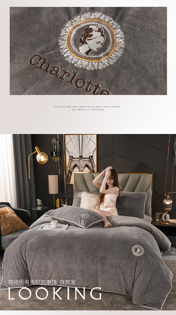 商品名称:迷仙巢 2021新款婴儿绒系列四件套倾城 倾城-绅士灰