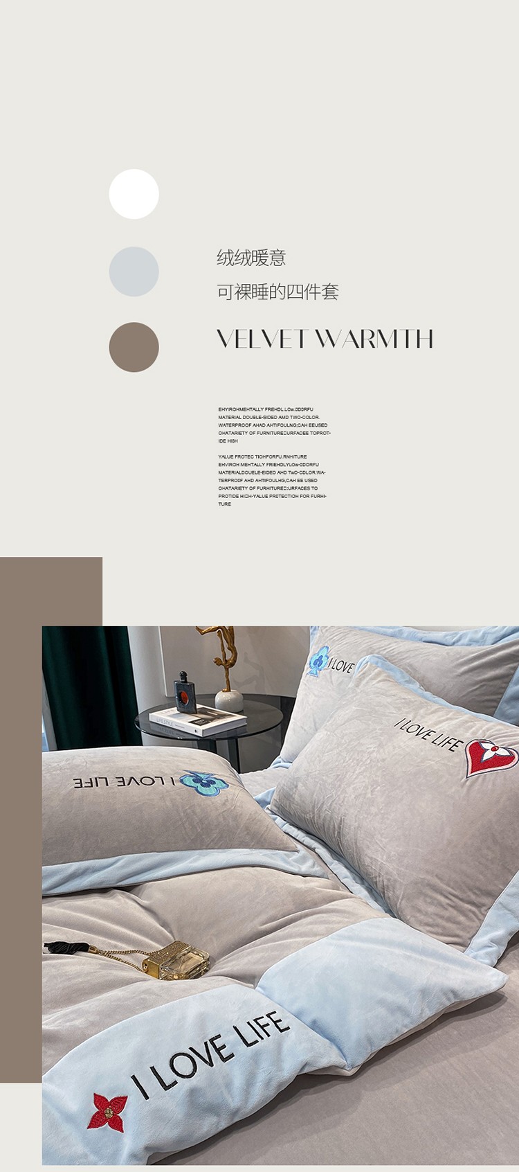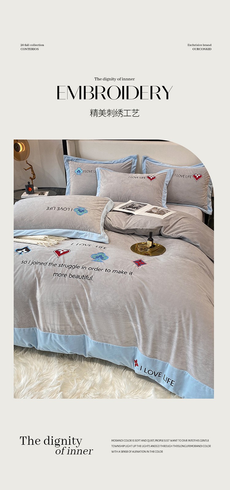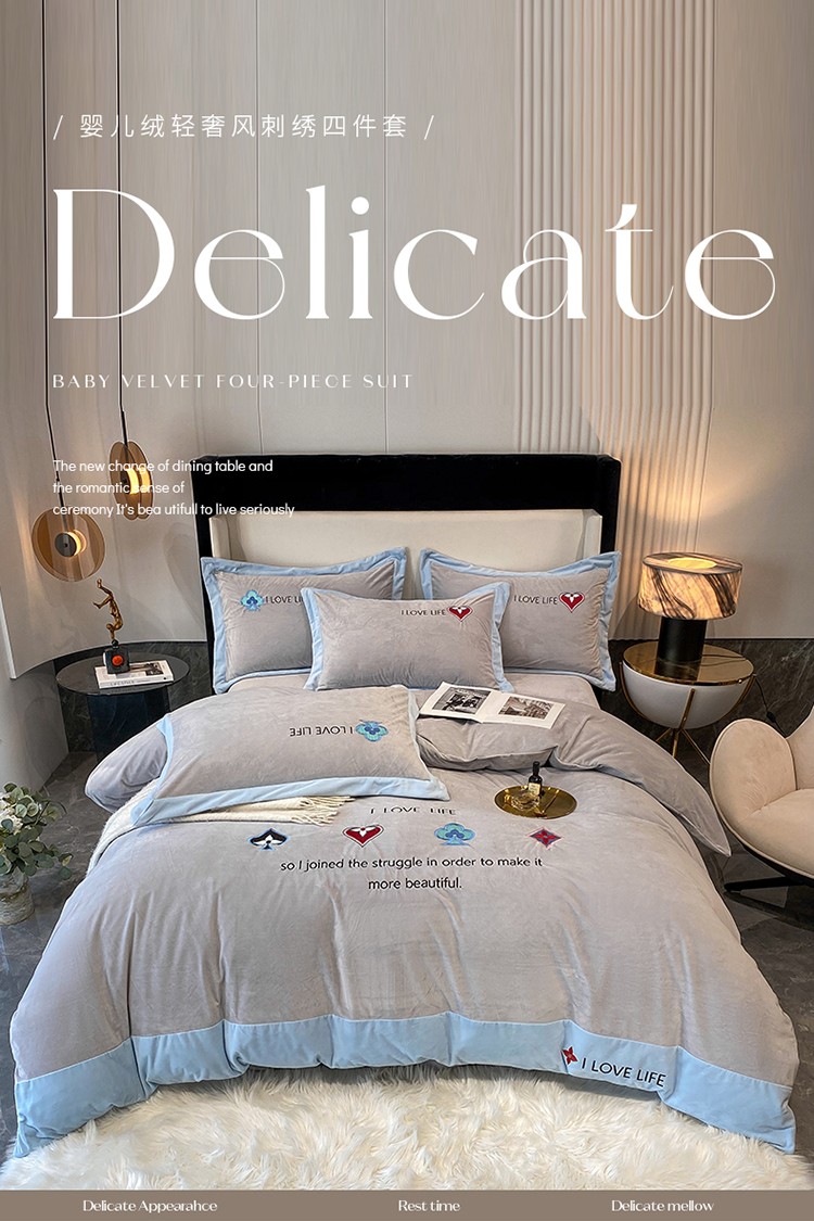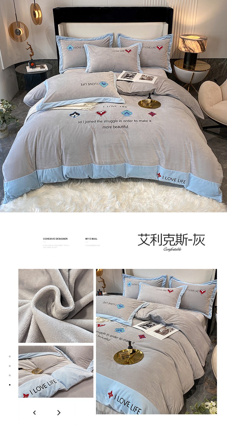 澳梵 2021【艾利克斯】婴儿绒轻奢风刺绣四件套 艾利克斯-灰