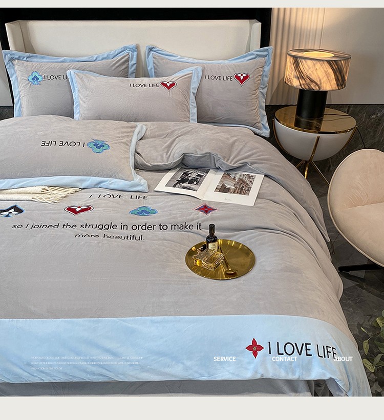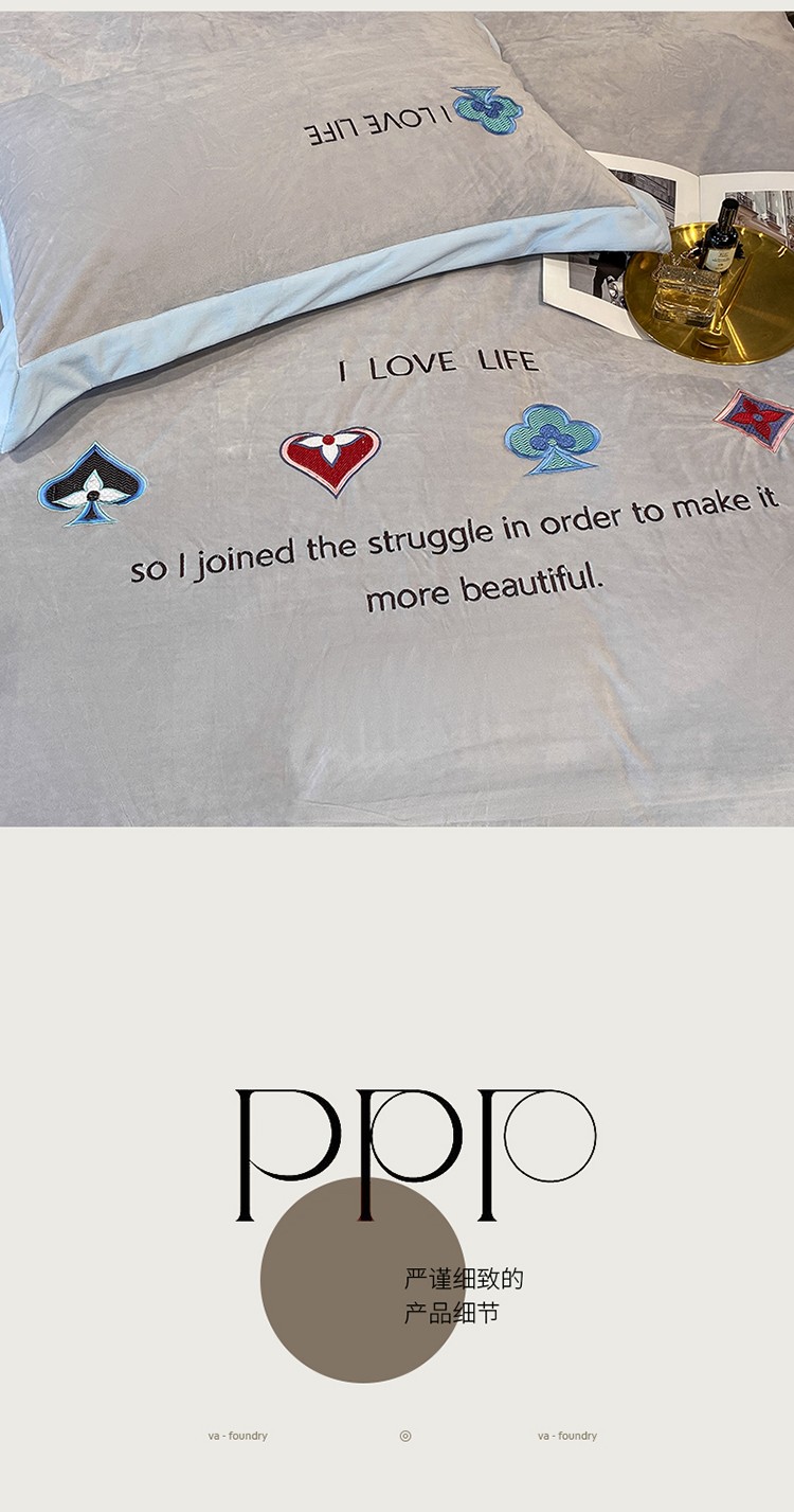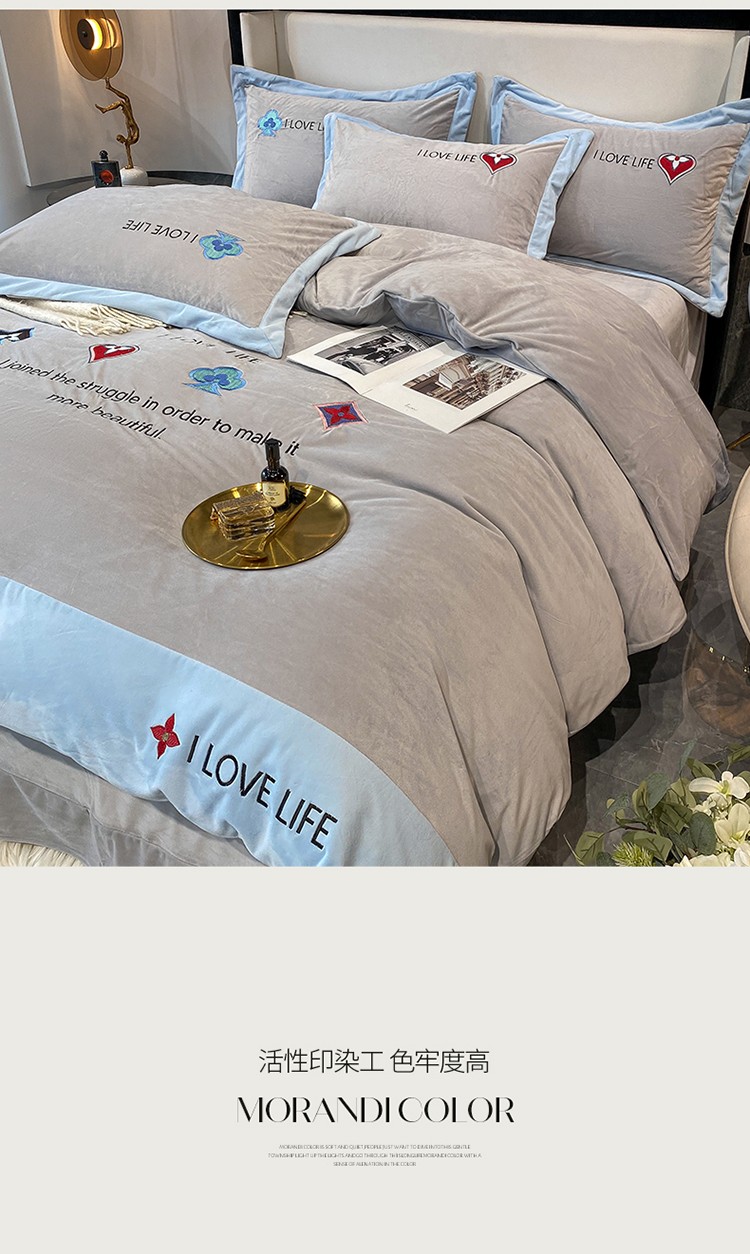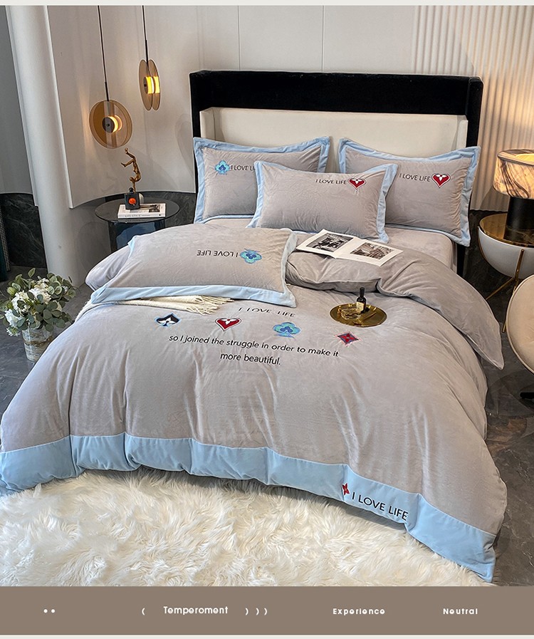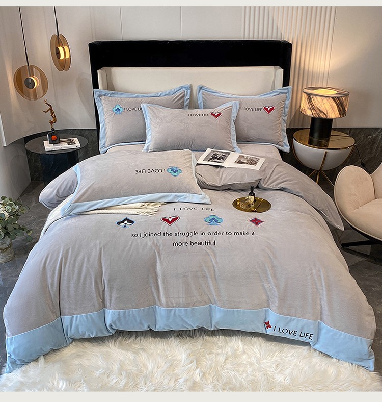 澳梵 2021【艾利克斯】婴儿绒轻奢风刺绣四件套 艾利克斯-灰