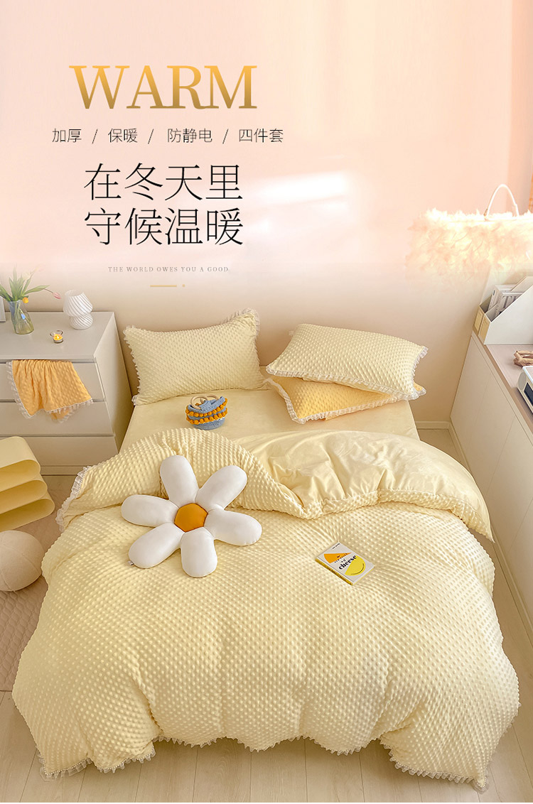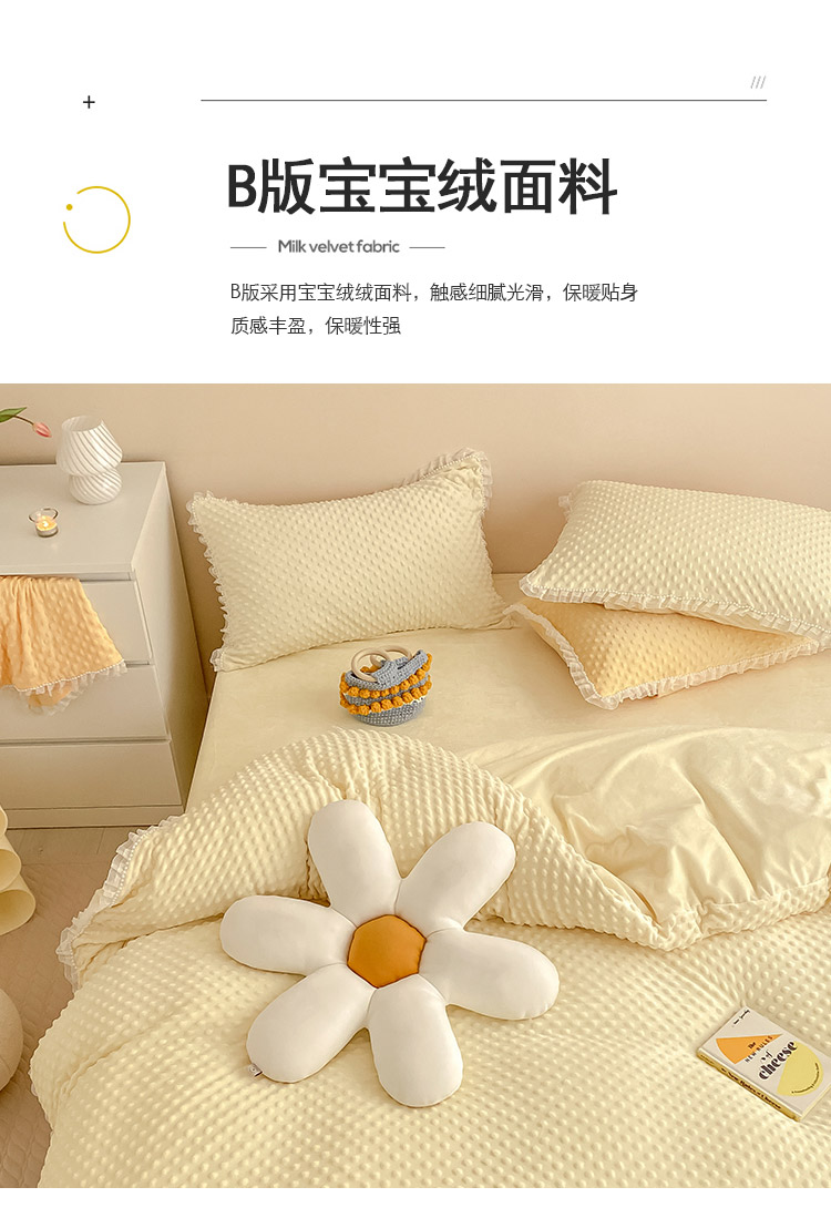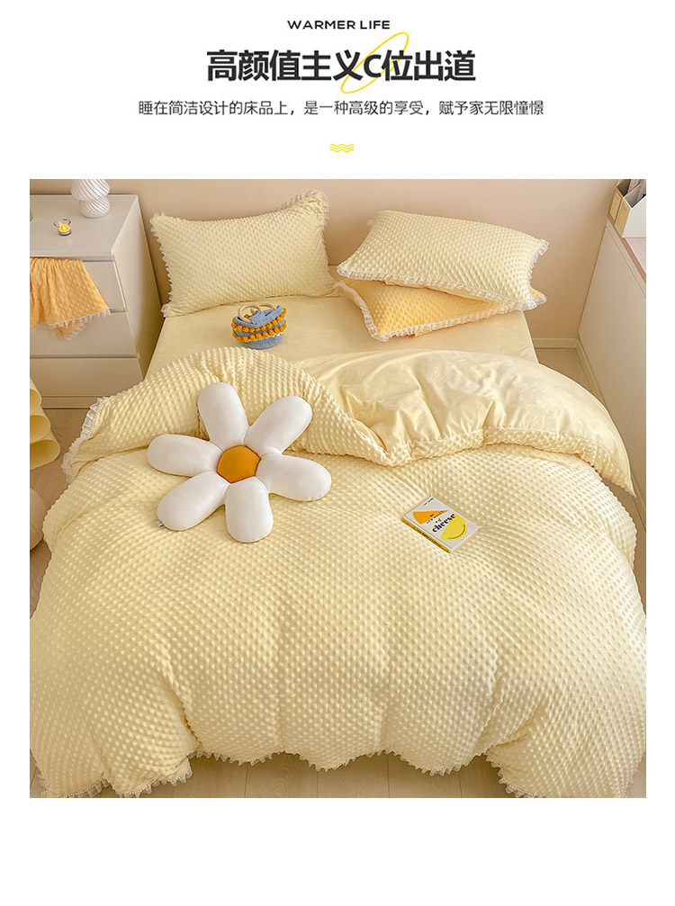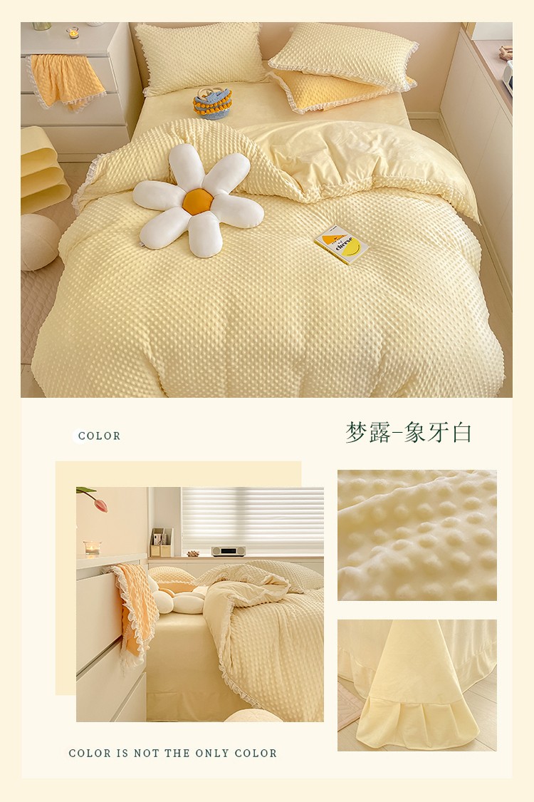 商品名称:玛奇朵 2021新款豆豆绒珍珠款四件套-梦露系列 梦露-象牙白