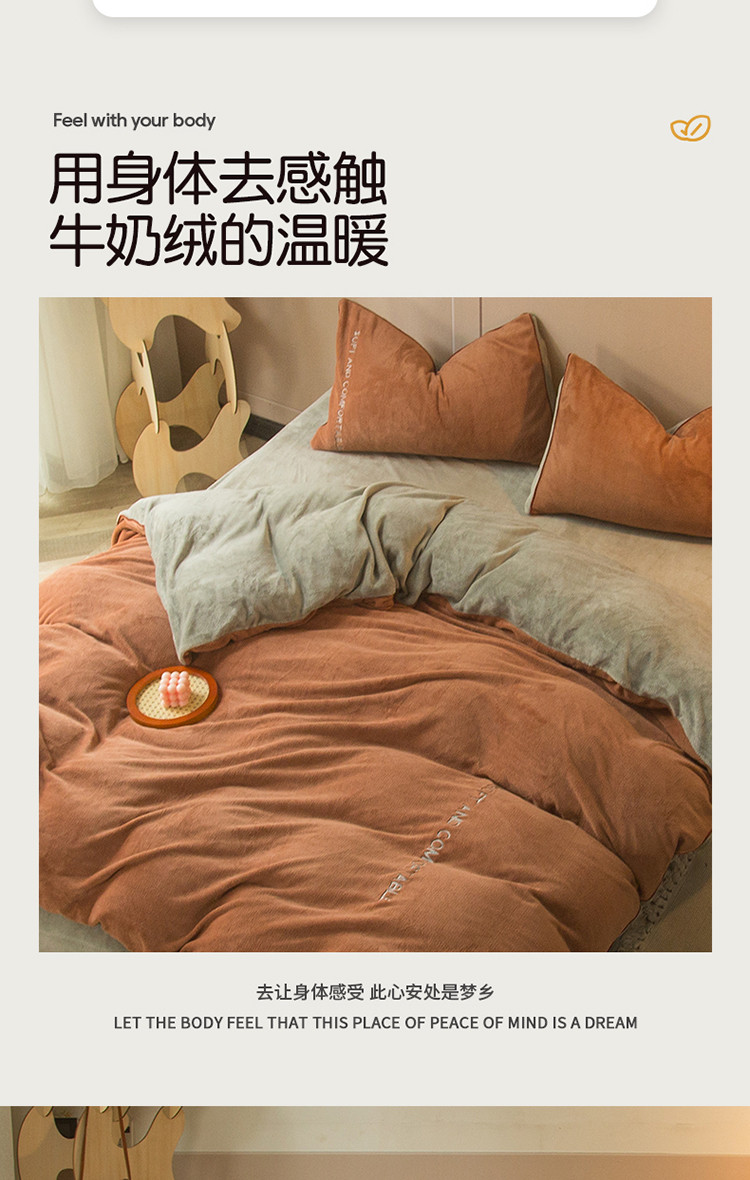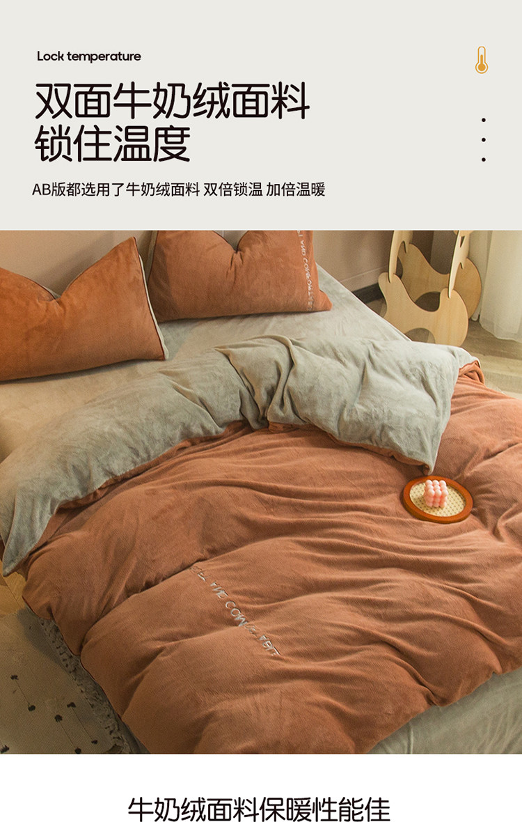 (总)凡客家居 2024新款A类加厚230克纯色双拼牛奶绒四件套,草绿+奶黄,姜黄+深灰,奶白+奶茶咖,奶茶咖+奶咖,奶咖+奶茶咖,奶油粉+奶咖,奶油黄+香芋紫,浅灰+深灰,天蓝+奶咖,香芋紫+浅粉