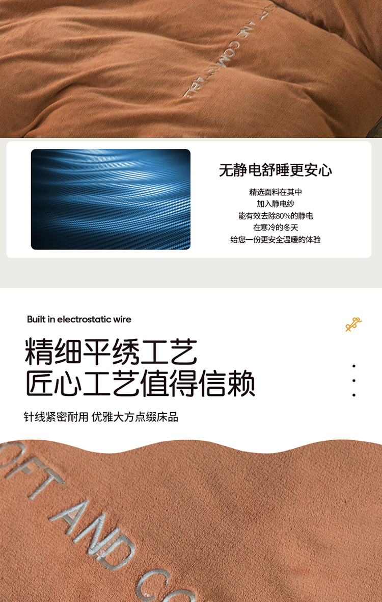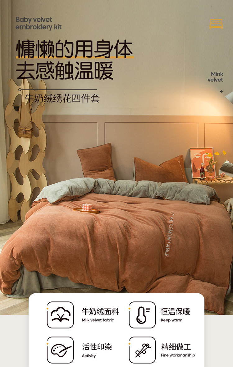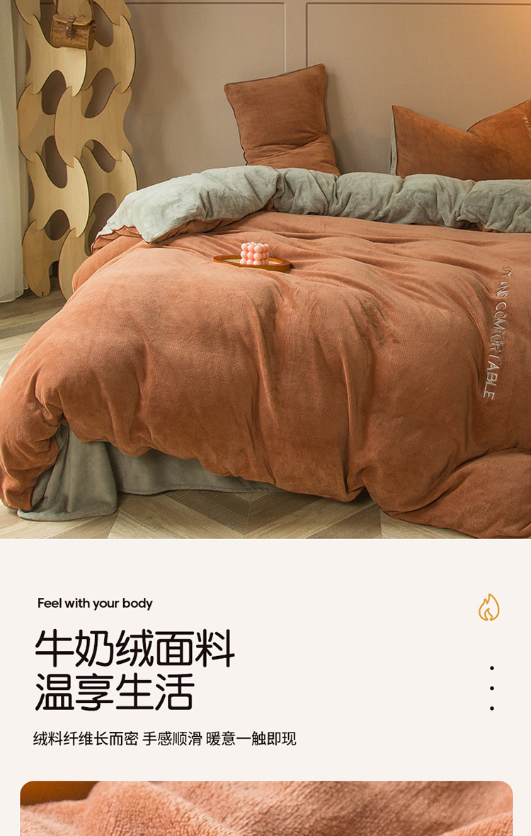 凡客家居 2021秋冬新款工艺款牛奶绒四件套 格调-咖