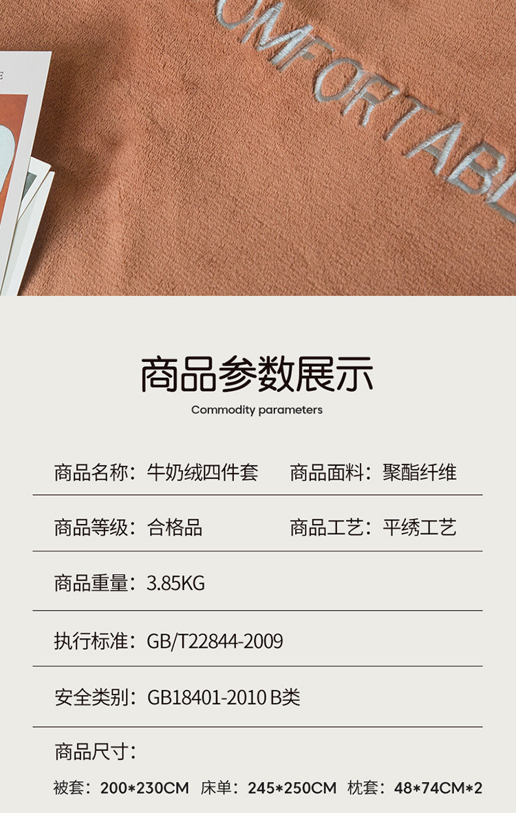 商品名称:凡客家居 2021秋冬新款工艺款牛奶绒四件套 格调-咖