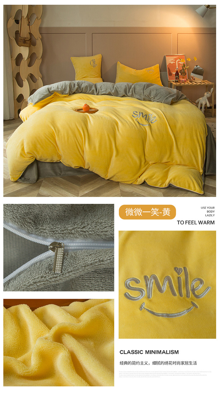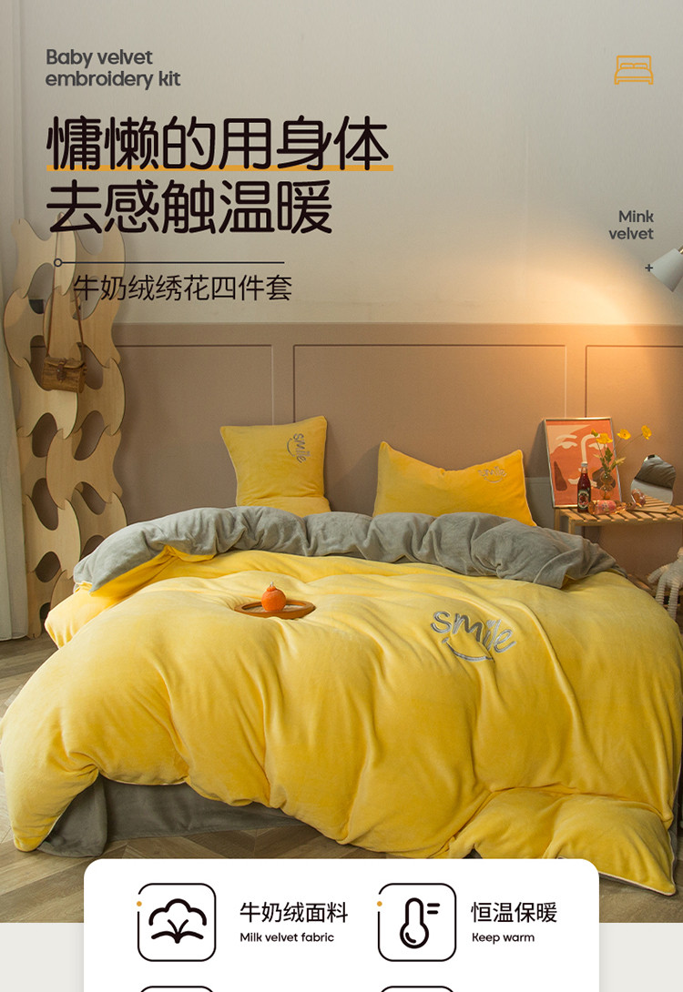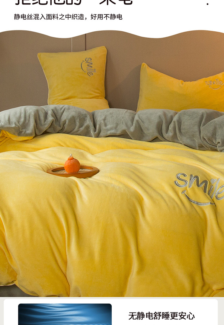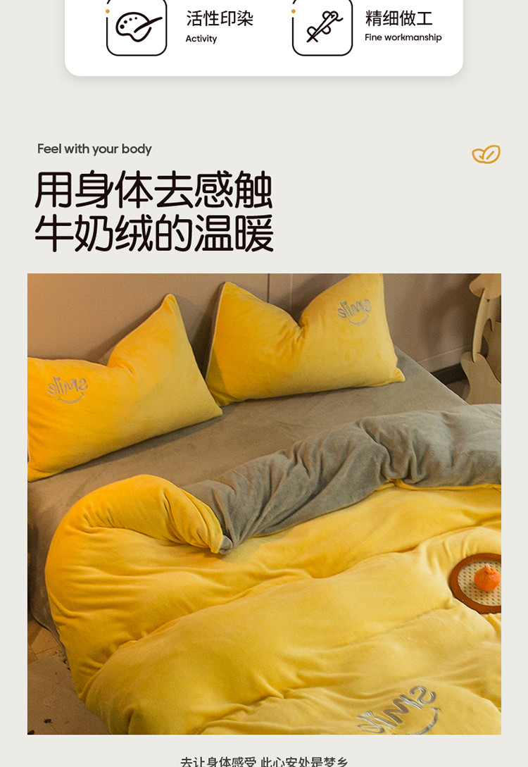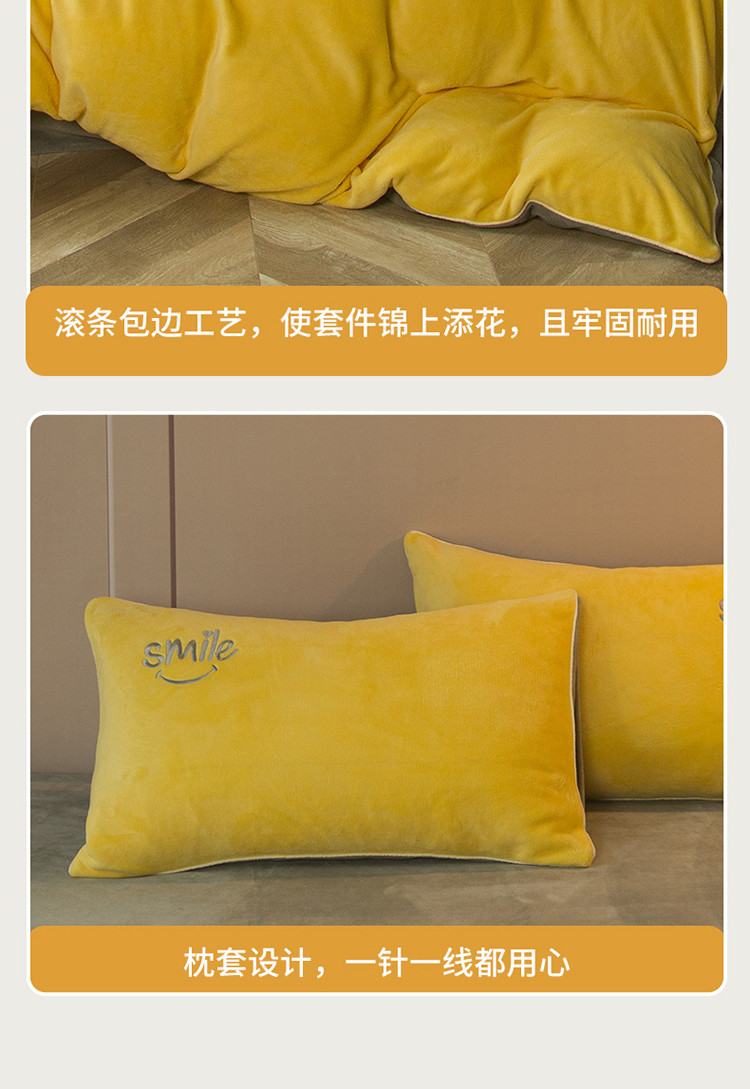 商品名称:凡客家居 2021秋冬新款工艺款牛奶绒四件套 微微一笑-黄