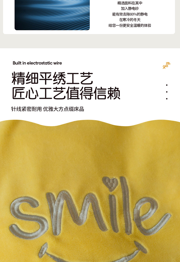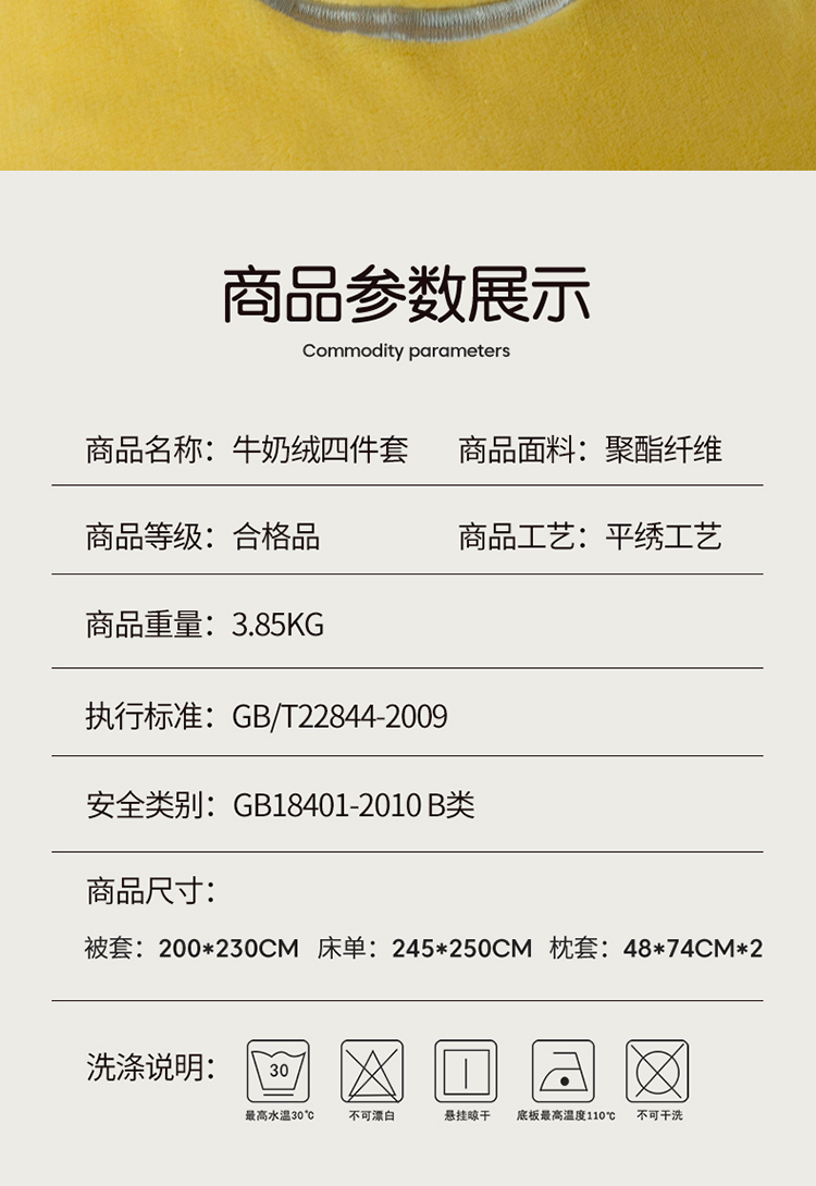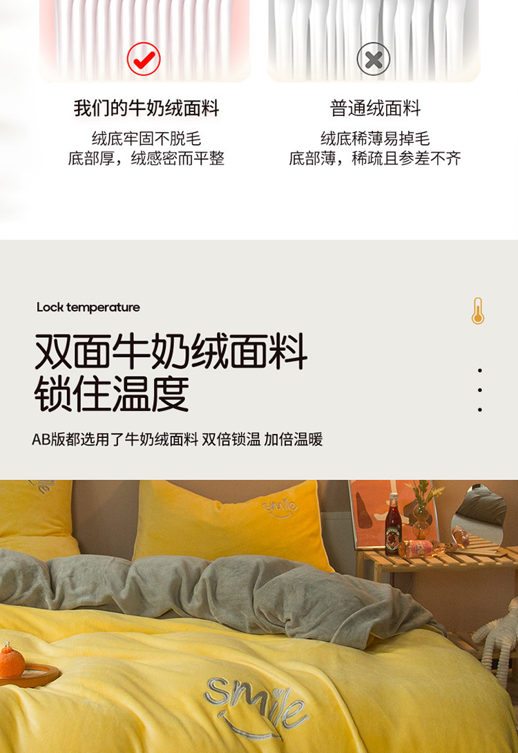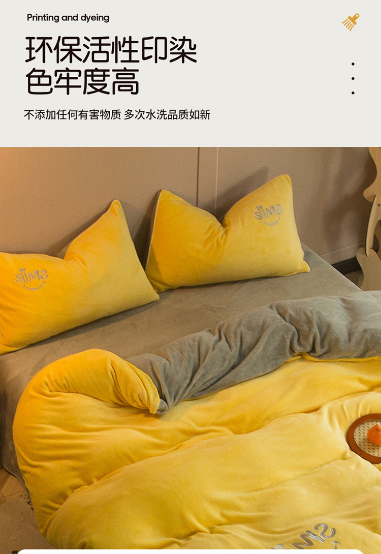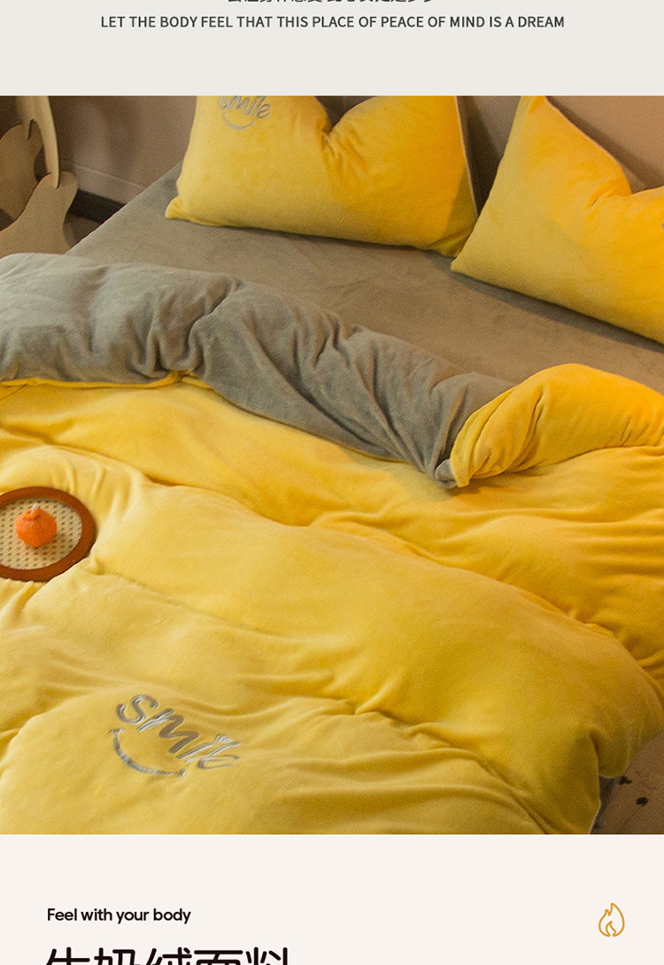 商品名称:凡客家居 2021秋冬新款工艺款牛奶绒四件套 微微一笑-黄