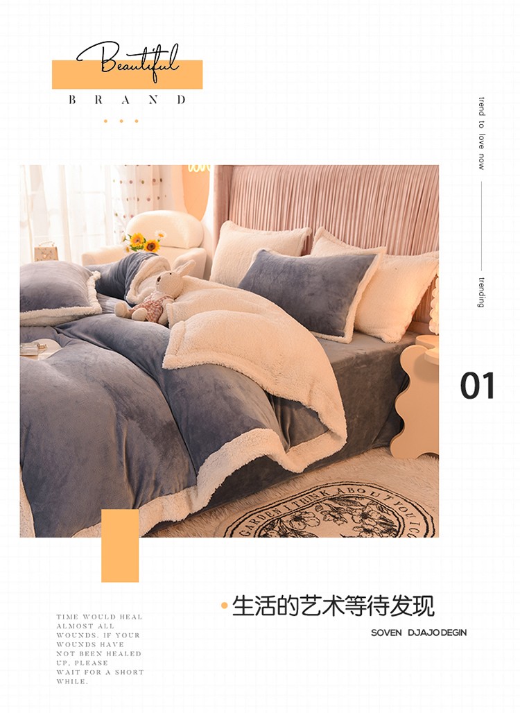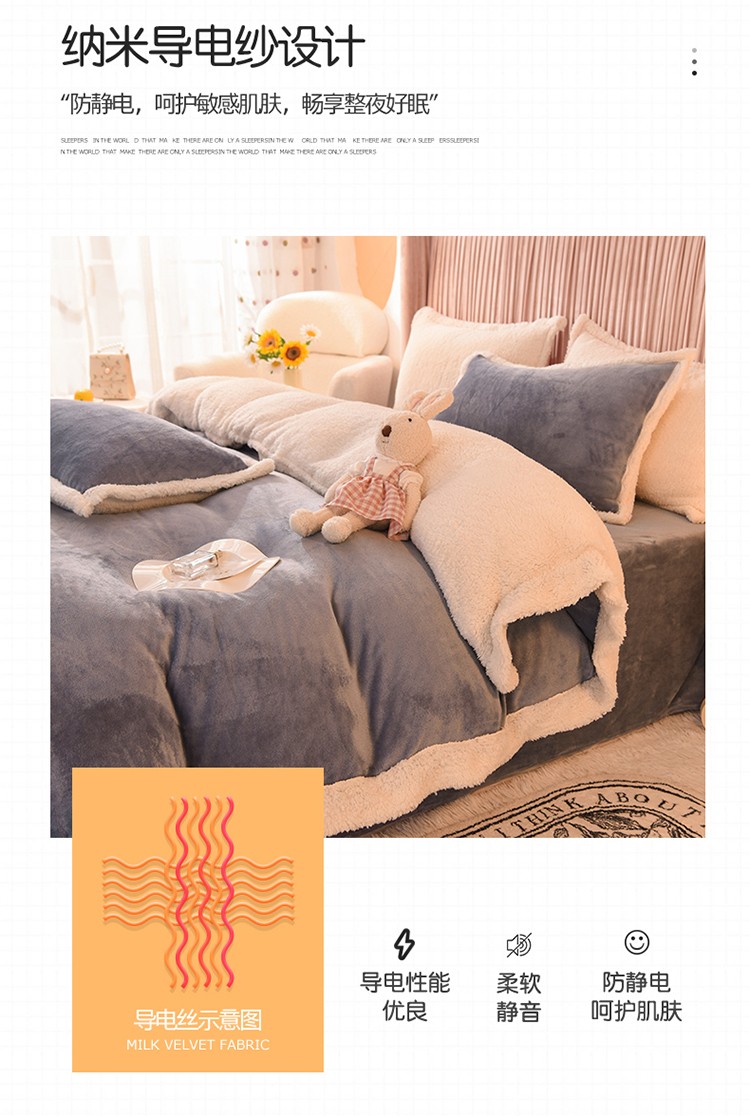 商品名称:艾米 2021新款牛奶绒羊羔绒双拼四件套 梅紫色