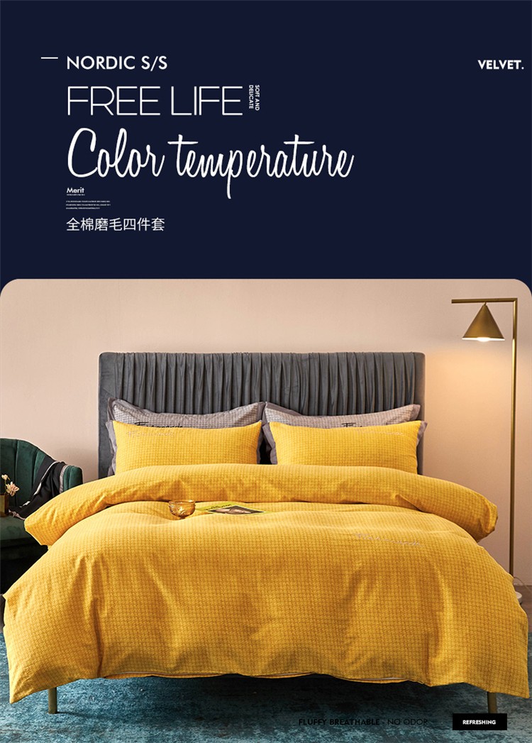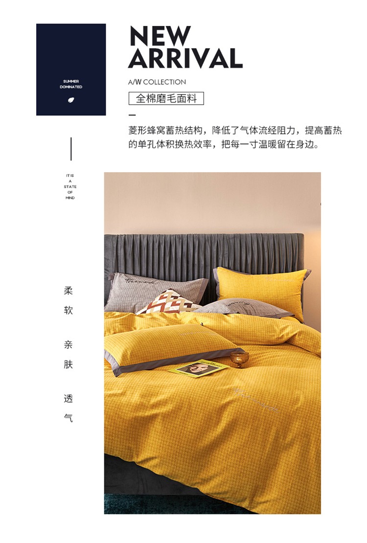 凡客2021秋冬新款全棉磨毛刺绣四件套-潘多拉 潘多拉(黄)