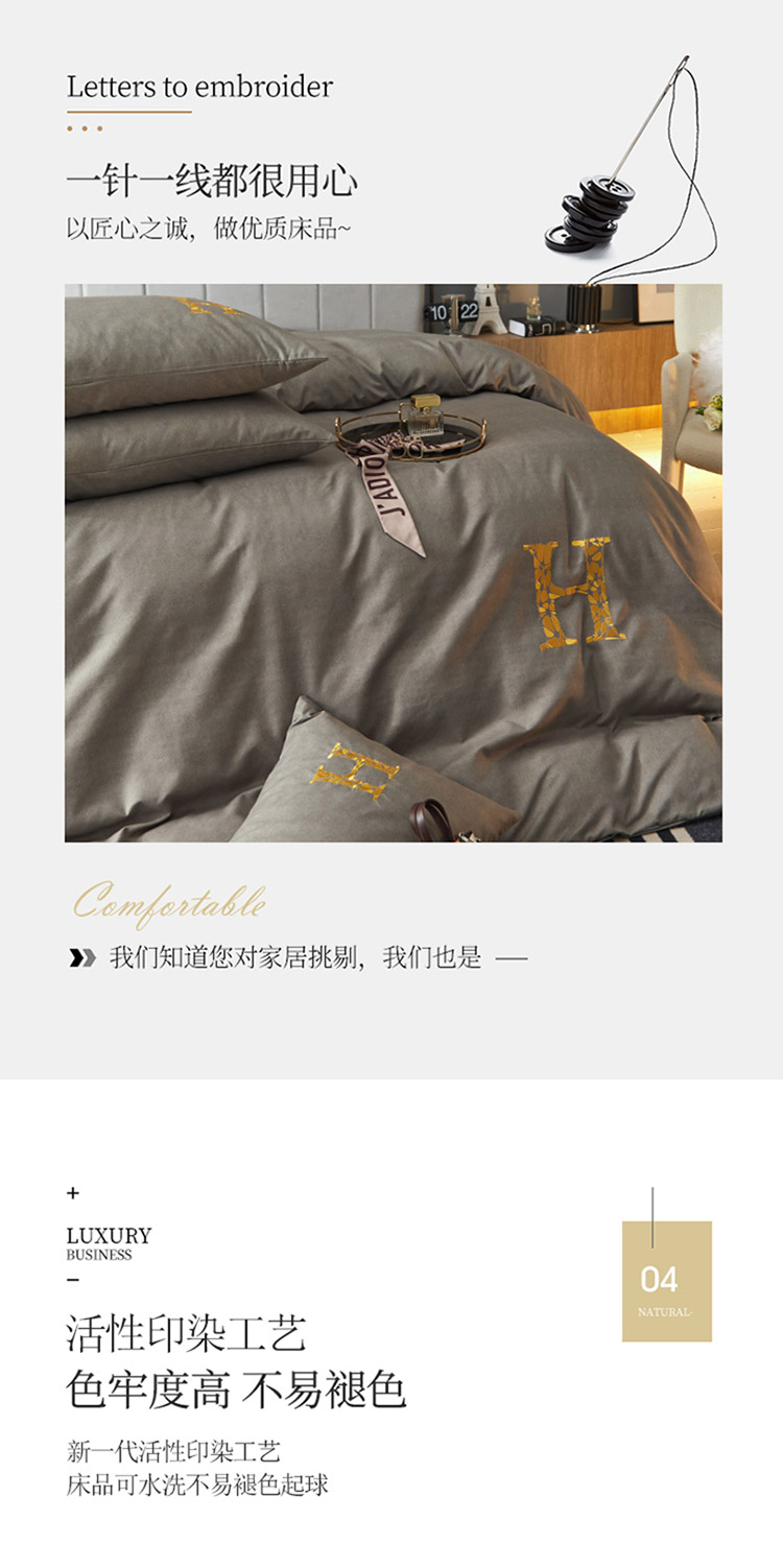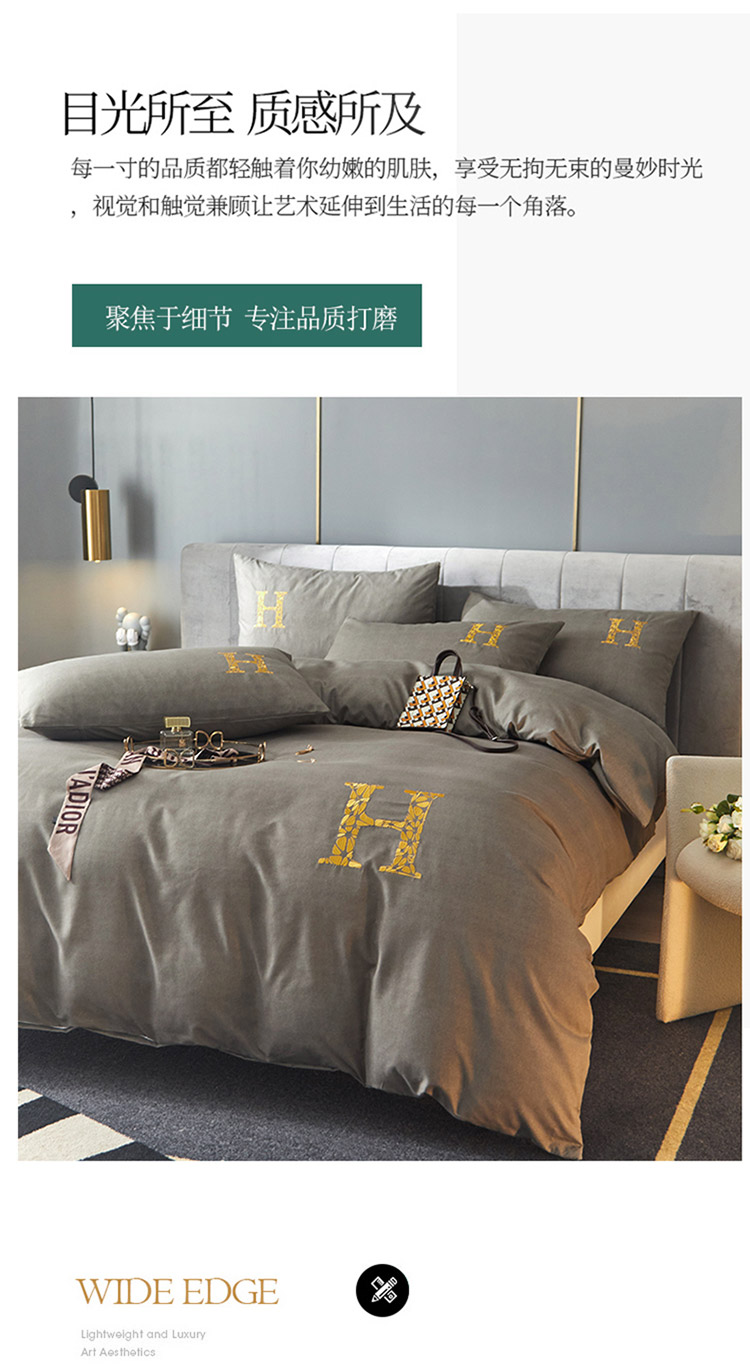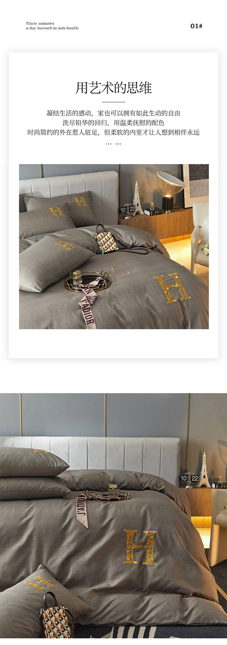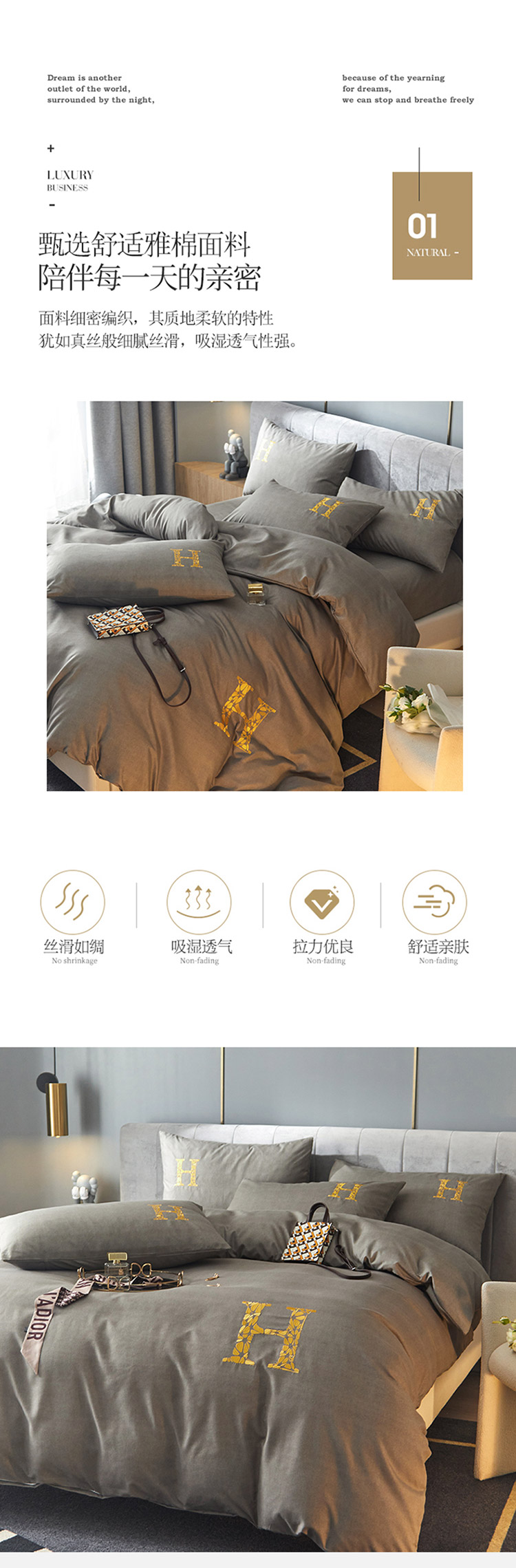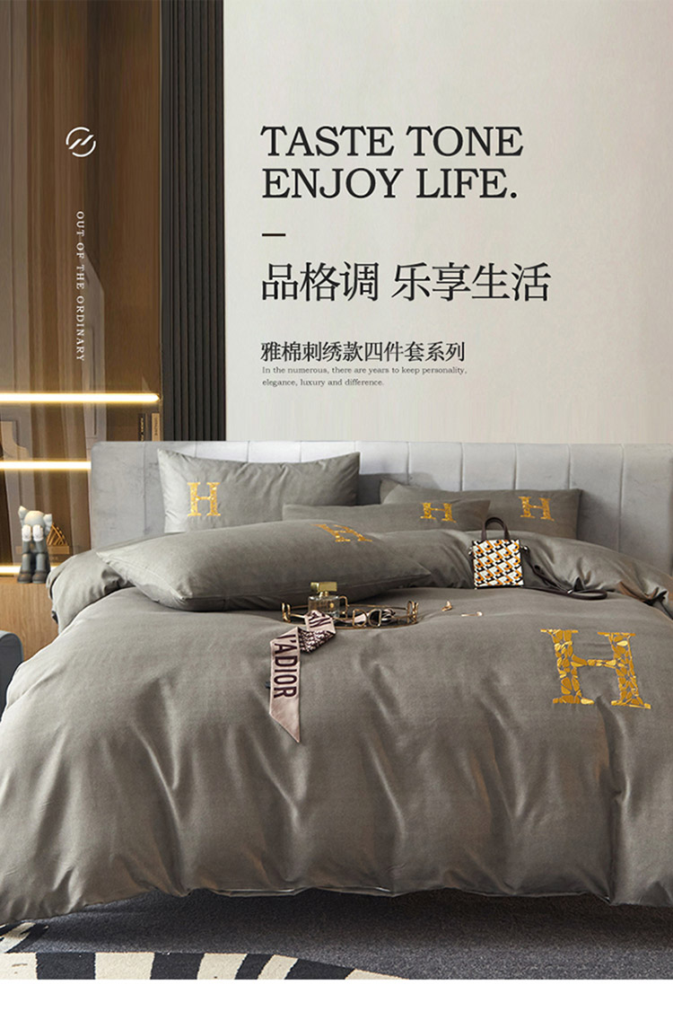 凡客2021秋冬新款雅棉刺绣四件套-索菲亚 索菲亚-灰