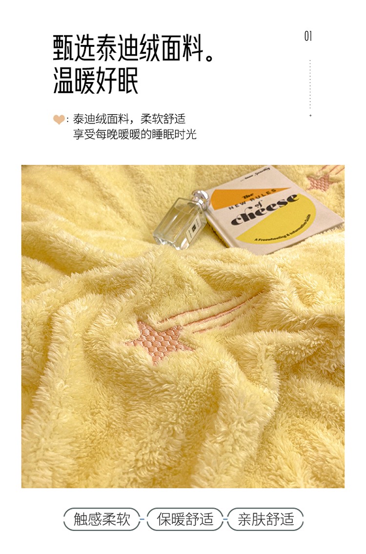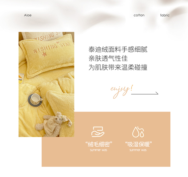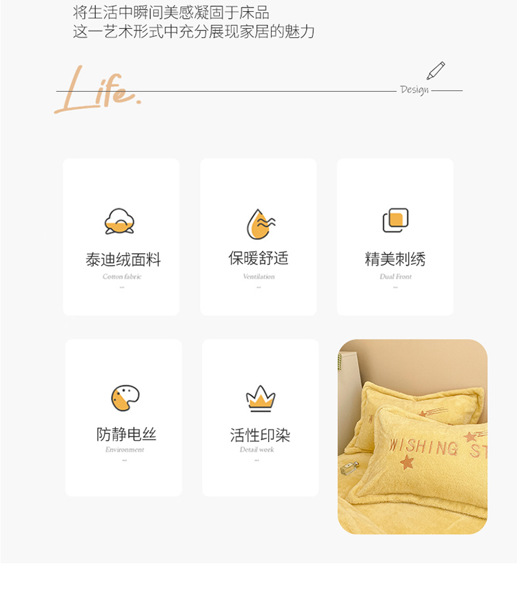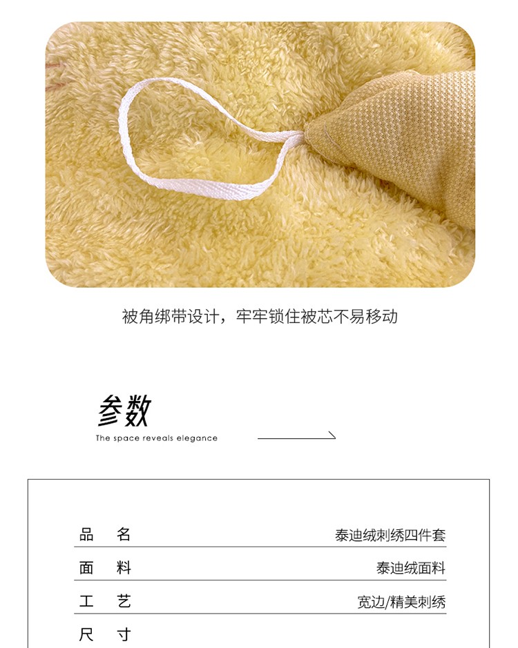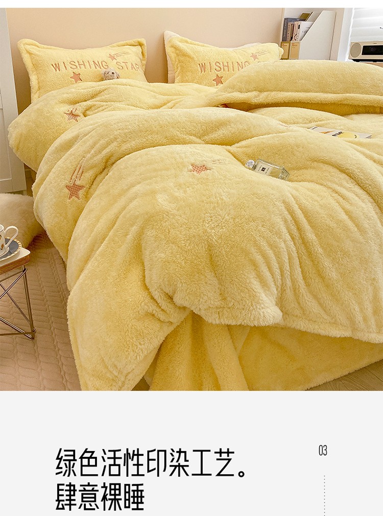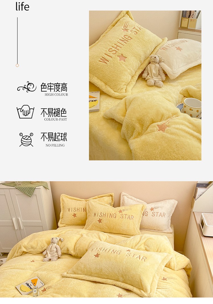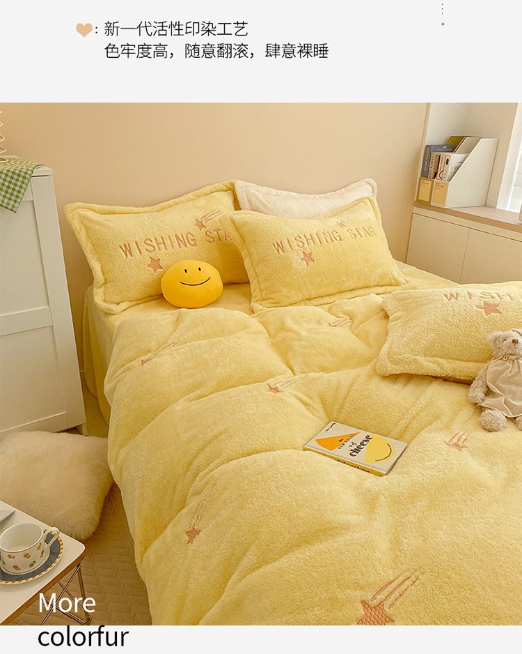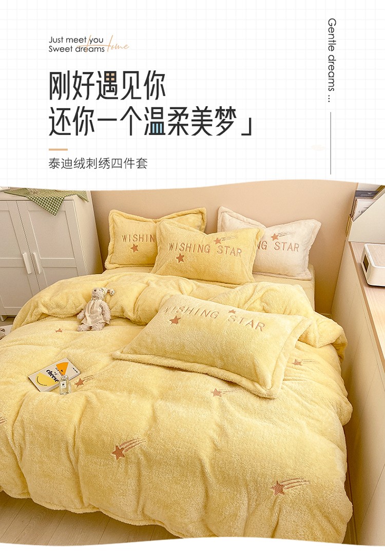 商品名称:雅居纺 2022新款泰迪绒绣花四件套拍摄风格2 许愿星-黄
