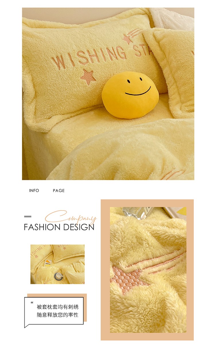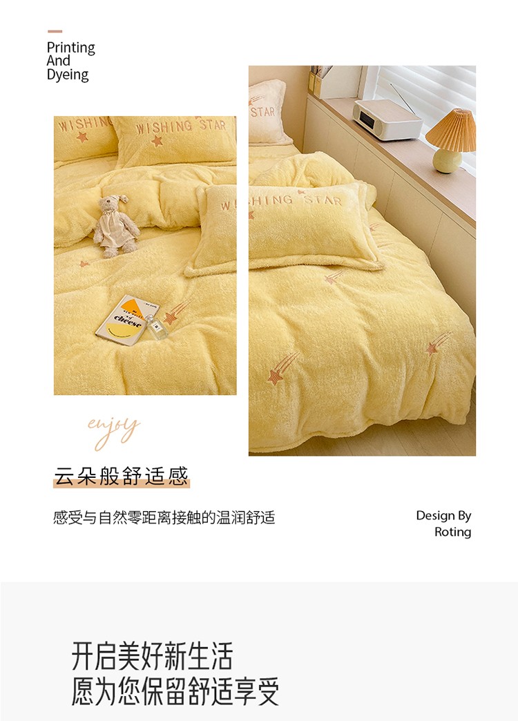 雅居纺 2022新款泰迪绒绣花四件套拍摄风格2 许愿星-黄