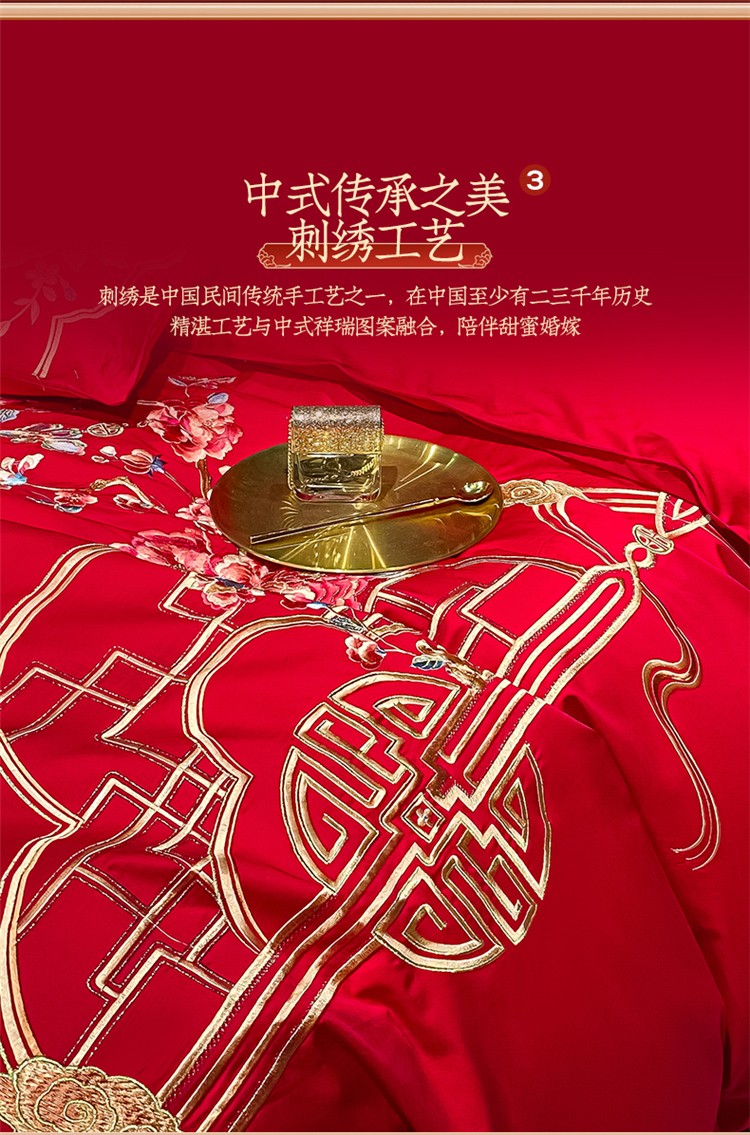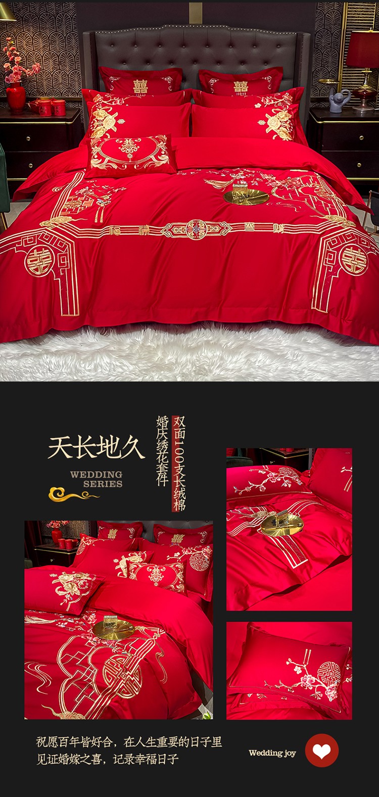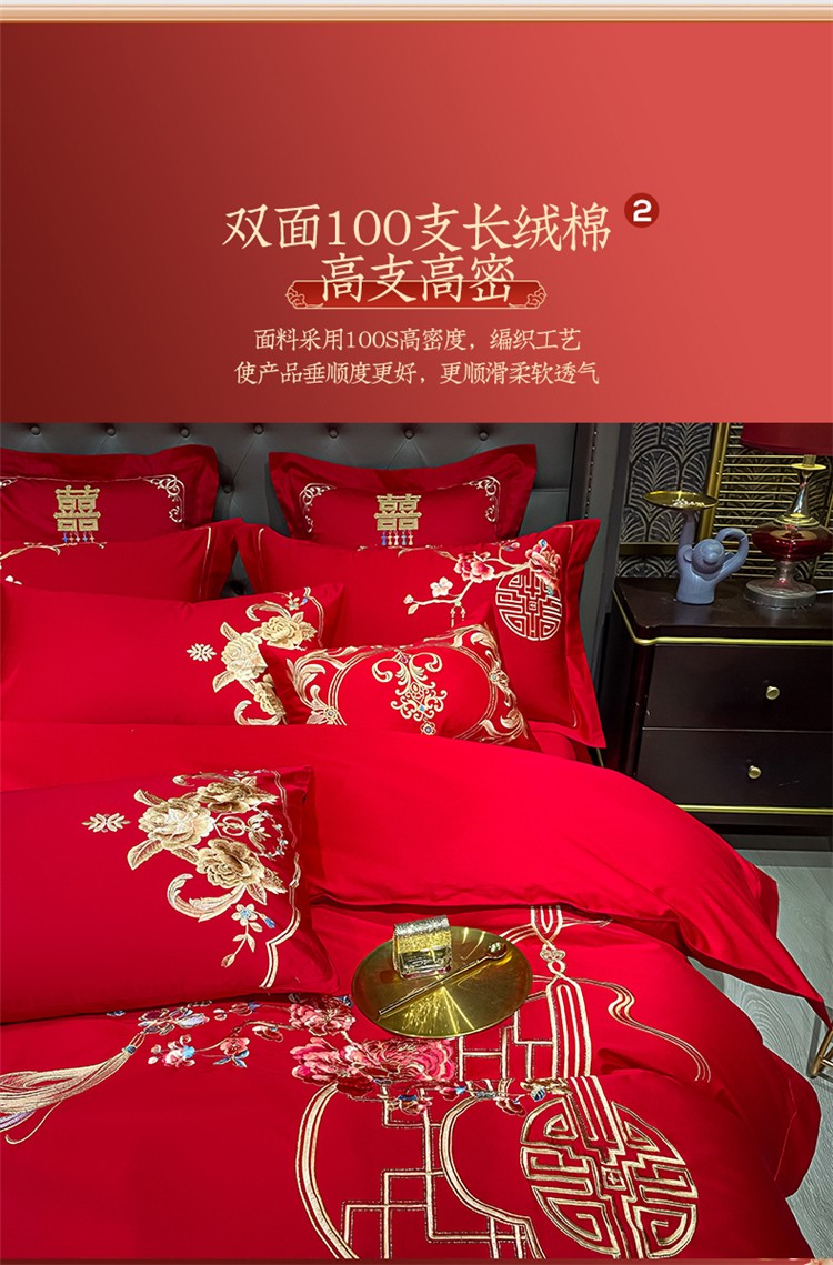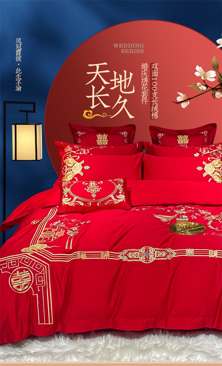 当前位置: 91家纺网 > 商品网购 > 床品套件 > 多件套 > 多件套 > 千禧 2021新款婚庆双面100支长绒棉婚庆绣花套件天长地久