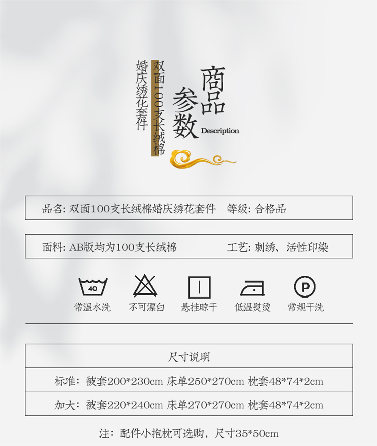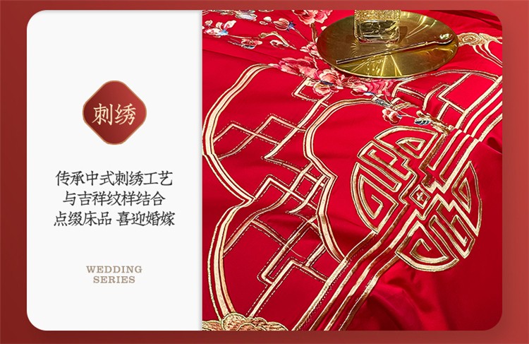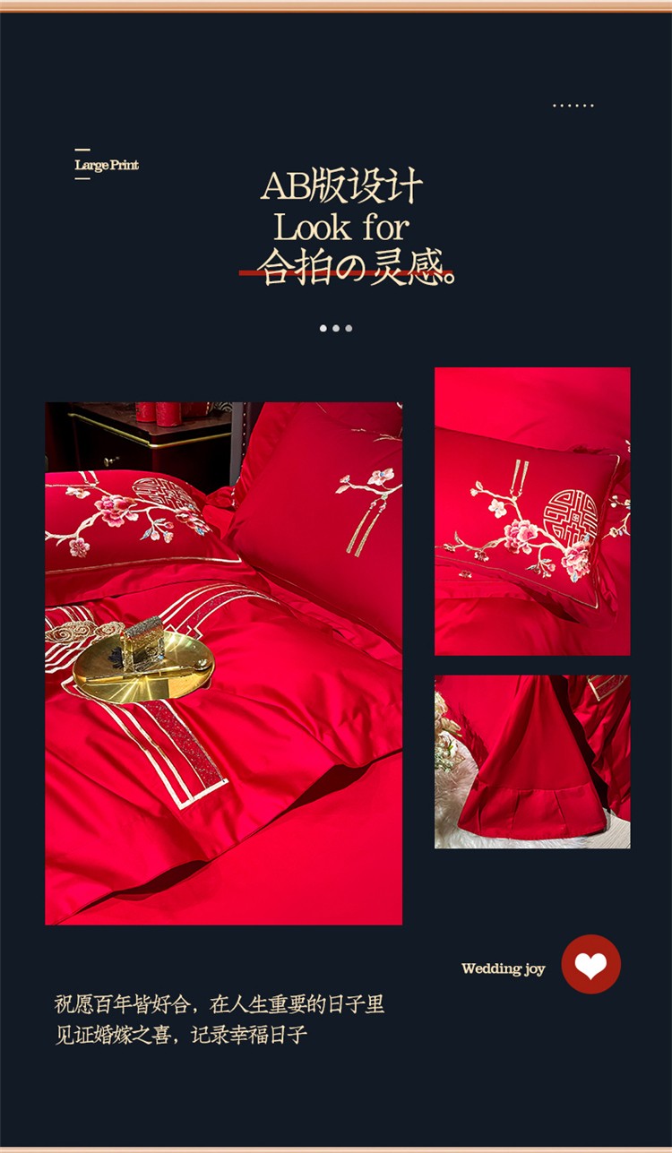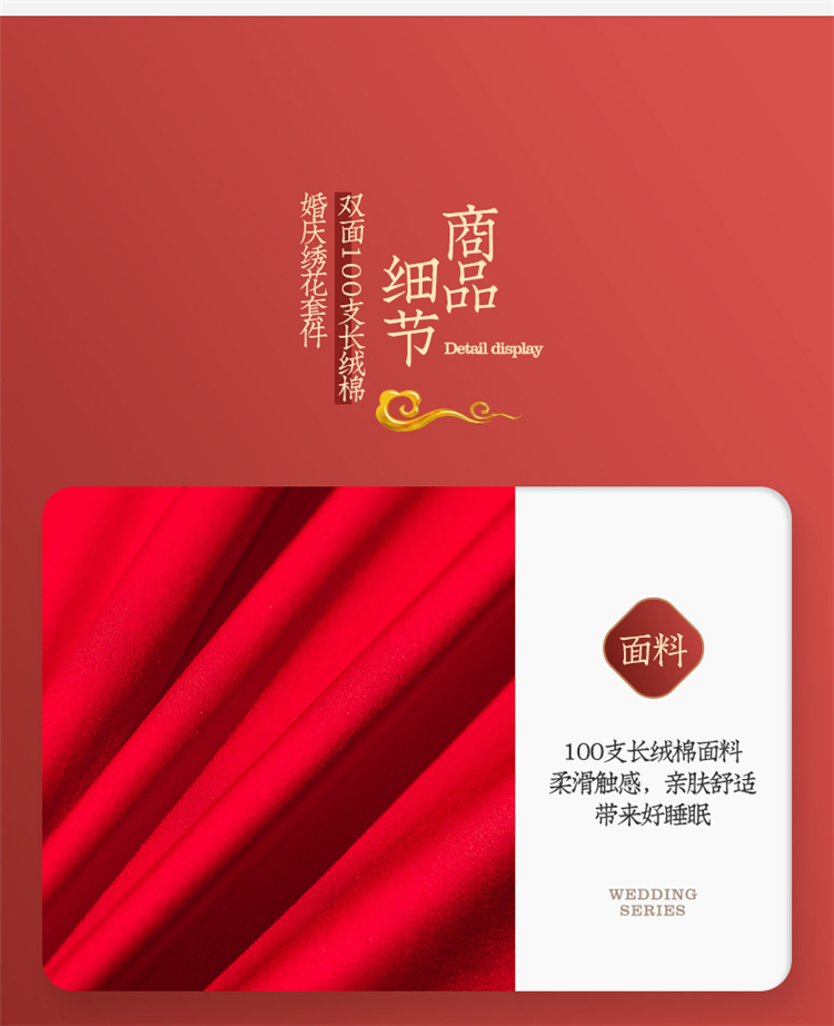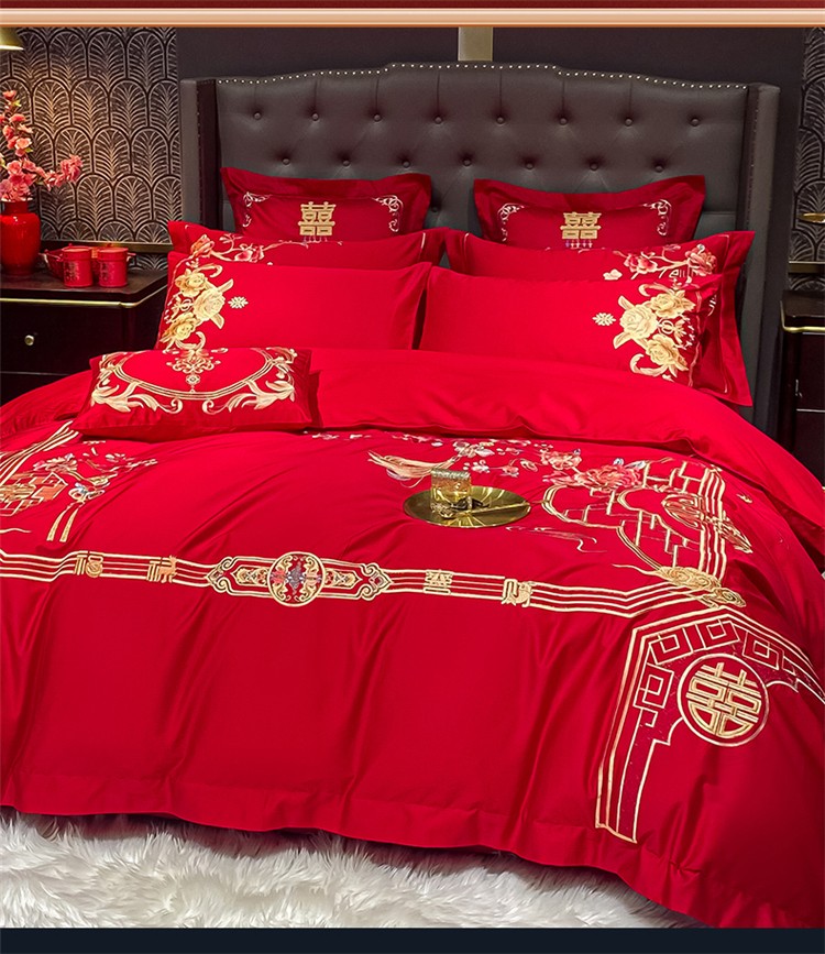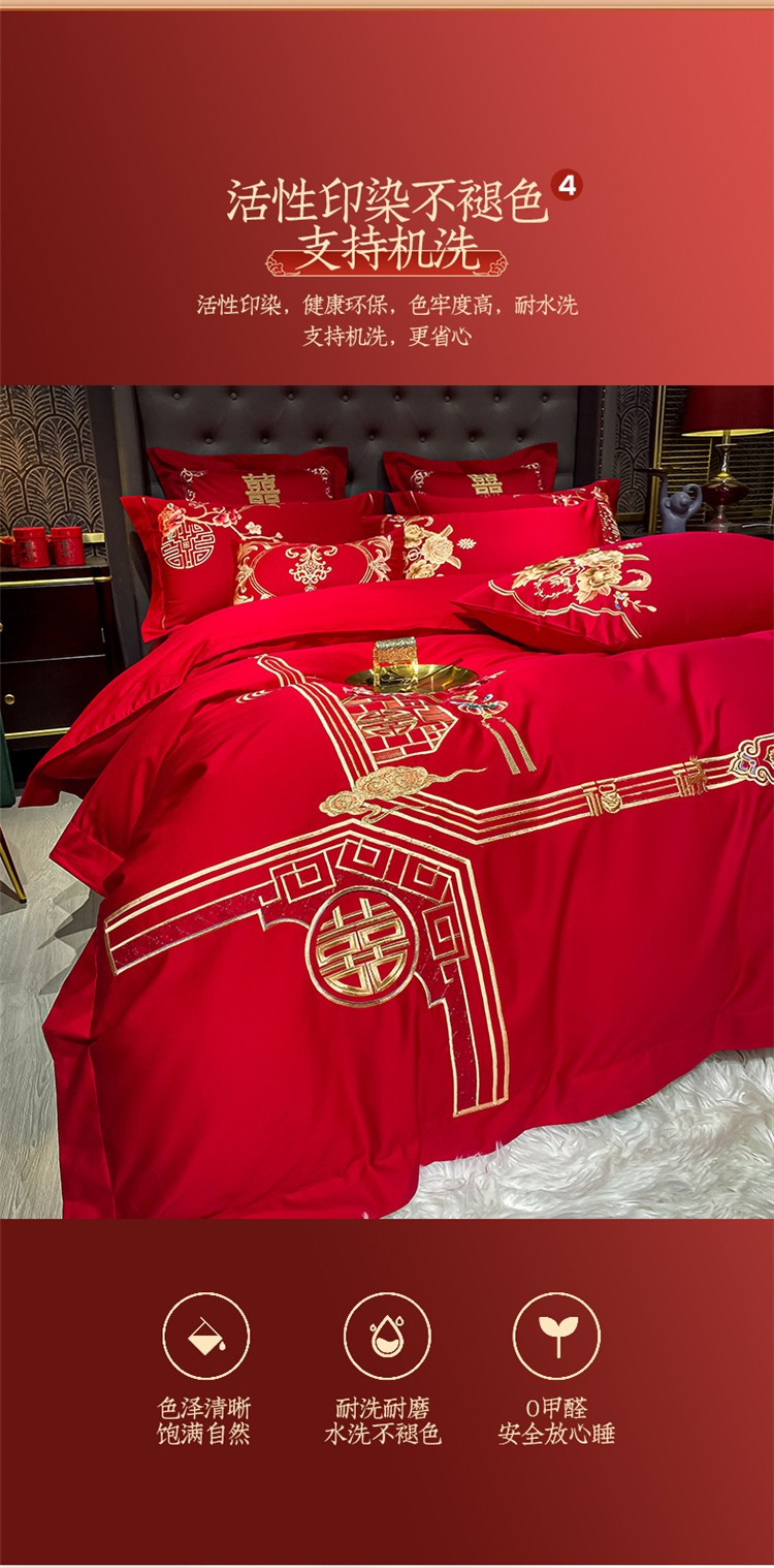 当前位置: 91家纺网 > 商品网购 > 床品套件 > 多件套 > 多件套 > 千禧 2021新款婚庆双面100支长绒棉婚庆绣花套件天长地久