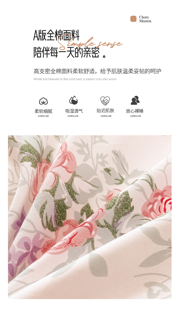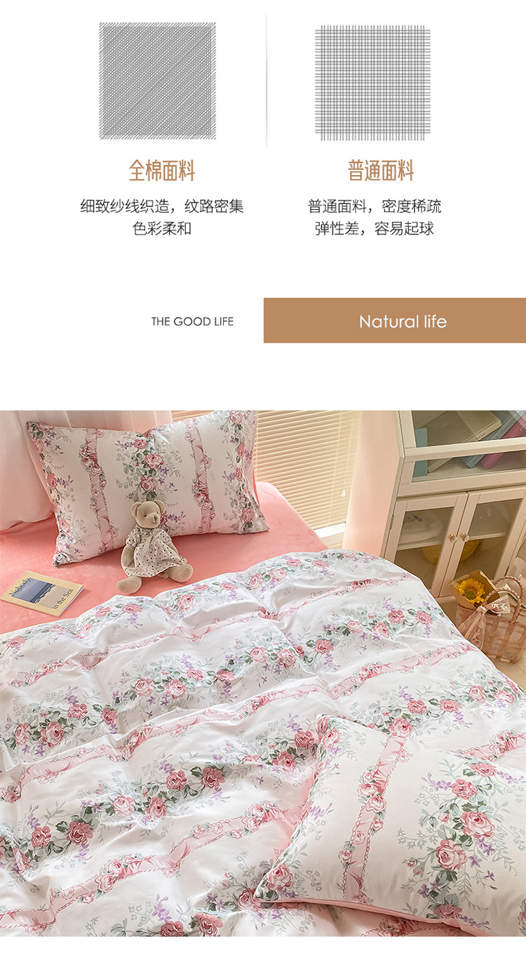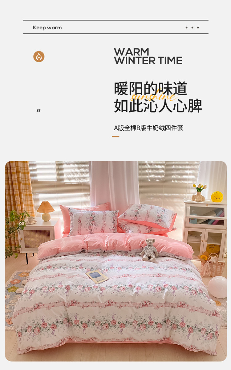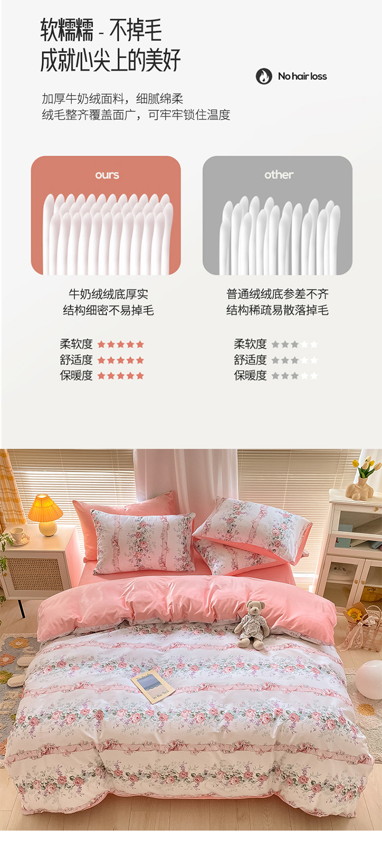 商品名称:2022新款全棉+水晶绒四件套 粉色花语