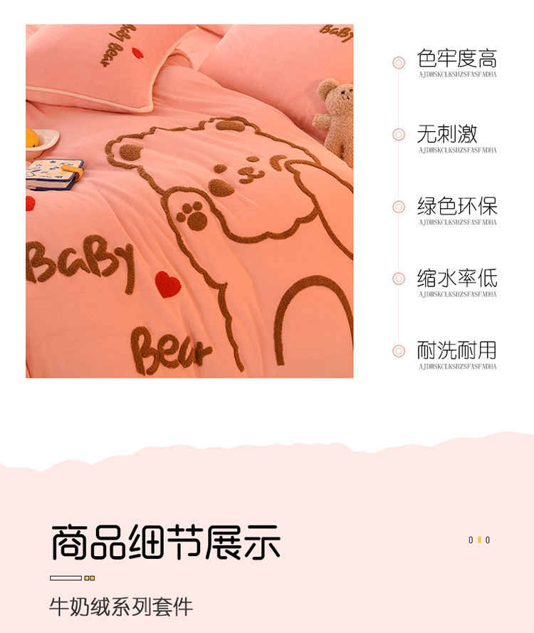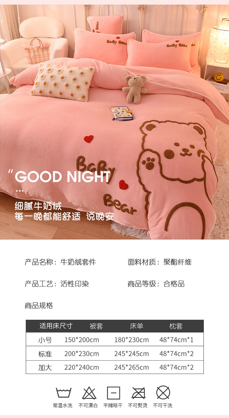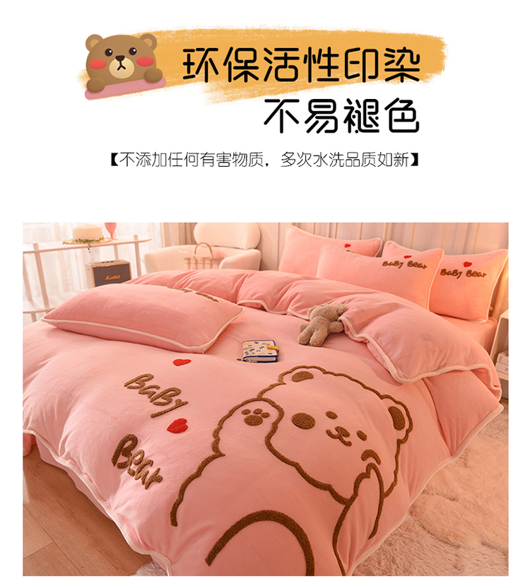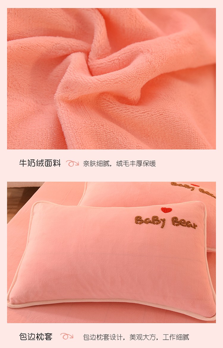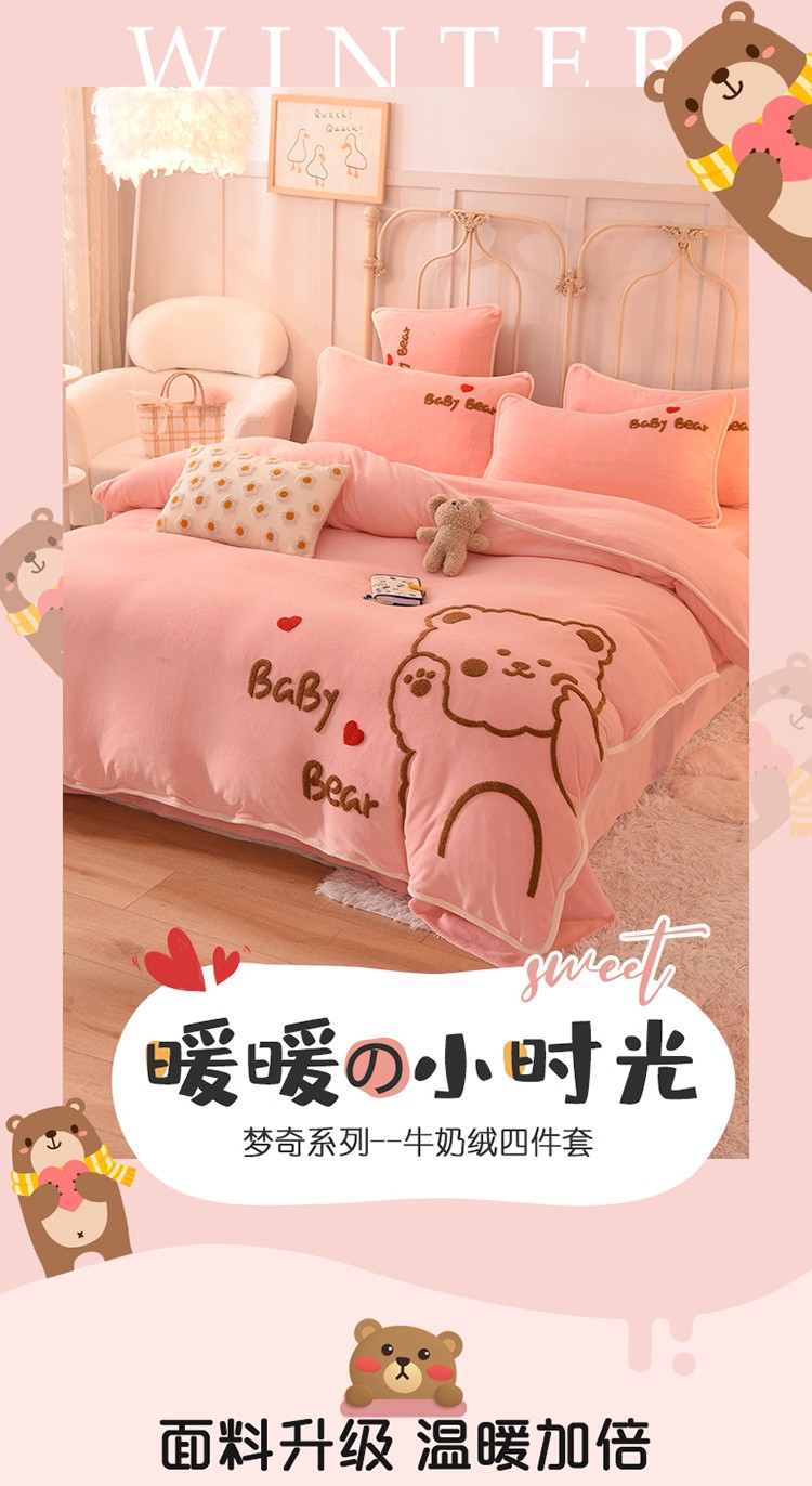 商品名称:大米家居2023新款卡通毛巾绣牛奶绒宝宝绒四件套梦奇-樱花粉