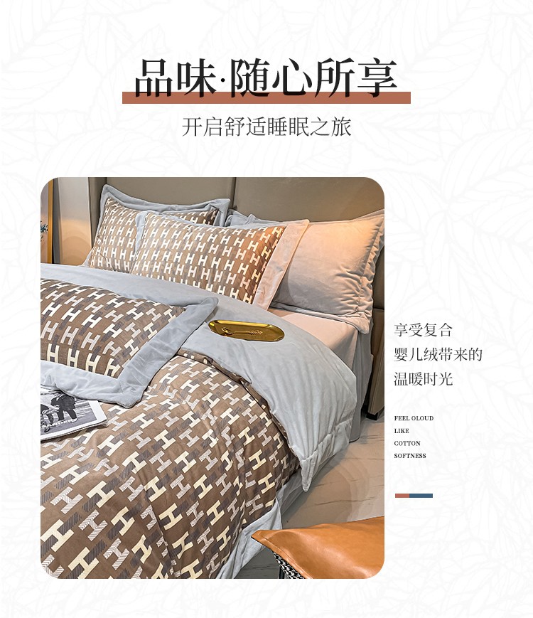 (总)米奈家居 2024新款A类牛奶雕花绒四件套-瑞丽,巴赫(卡其),巴赫(紫粉),花漾(淡雅粉),花漾(香槟),水墨(豆沙),水墨(卡其),邂逅(咖色),邂逅(绿色)