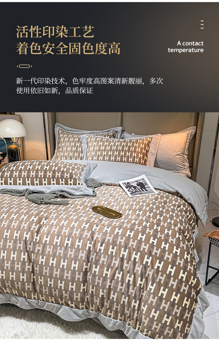 米奈 2021新款高克重婴儿绒印花四件套 普鲁斯-咖