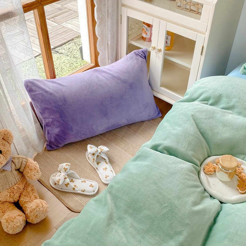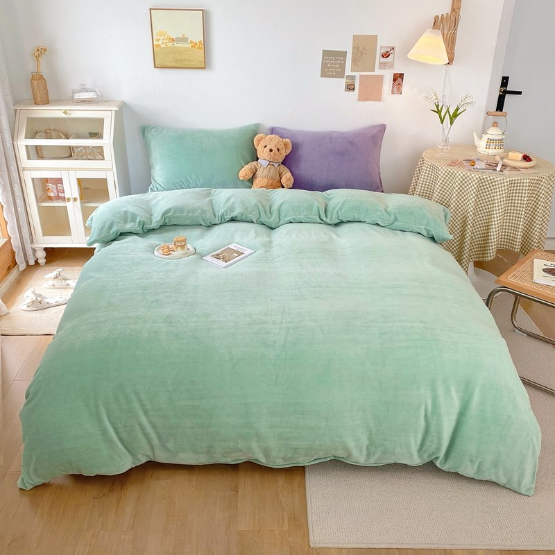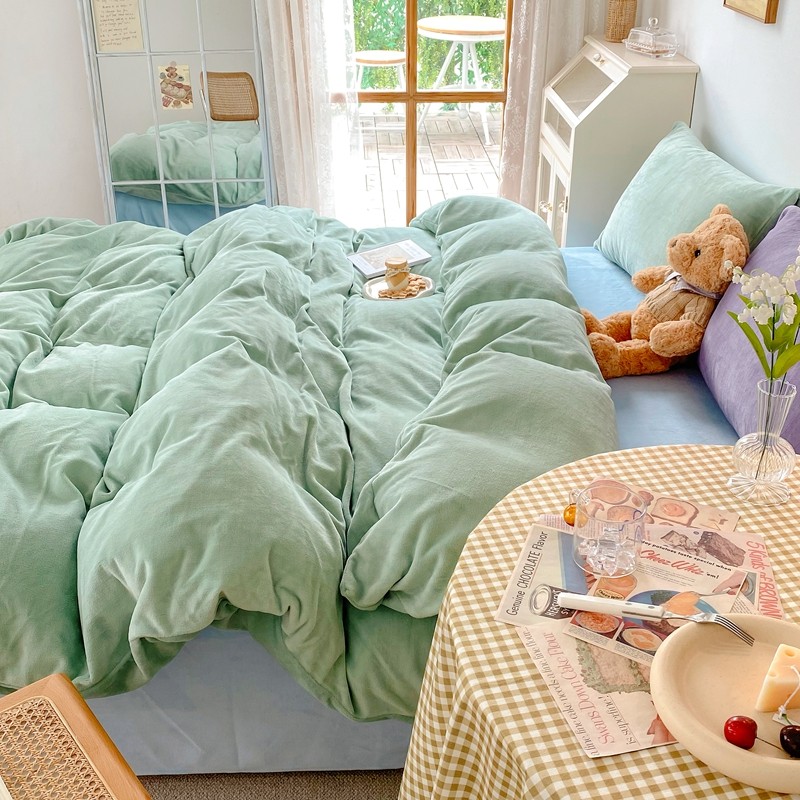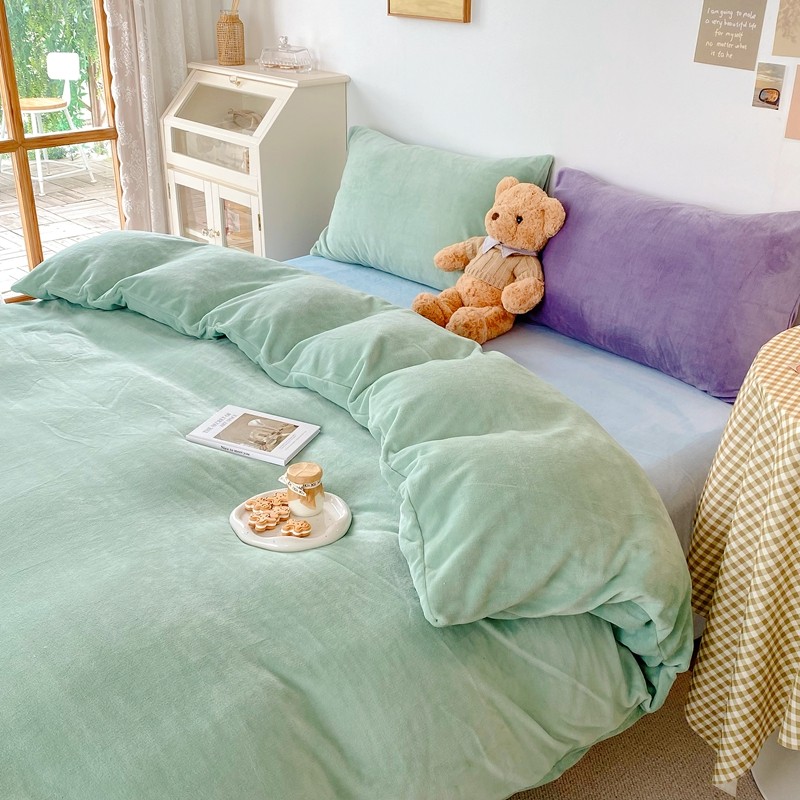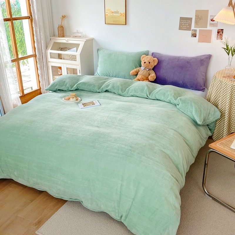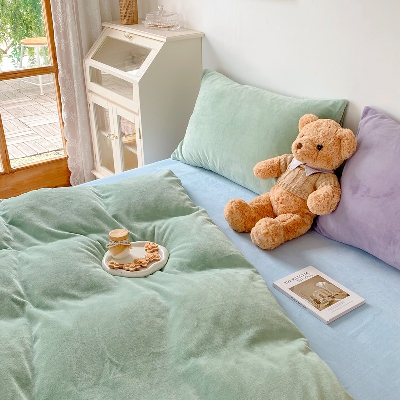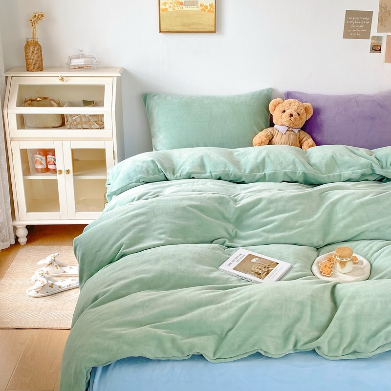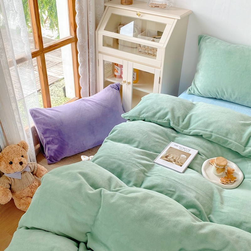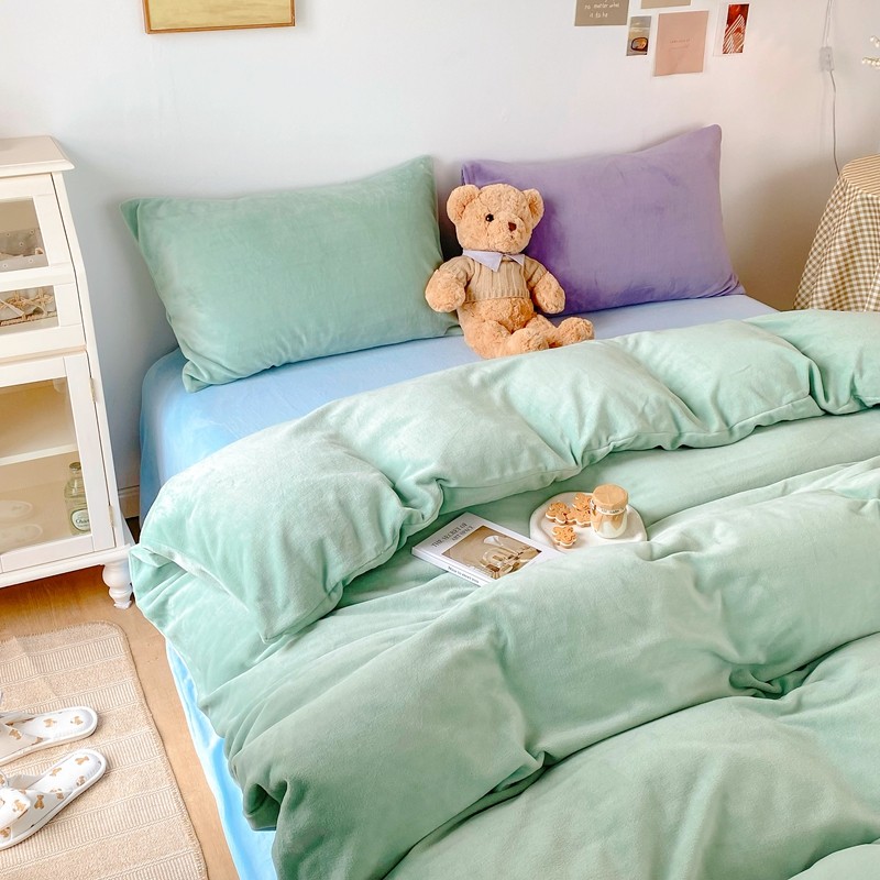 商品名称:星期八 2021新款马卡龙牛奶绒四件套 绿-蓝