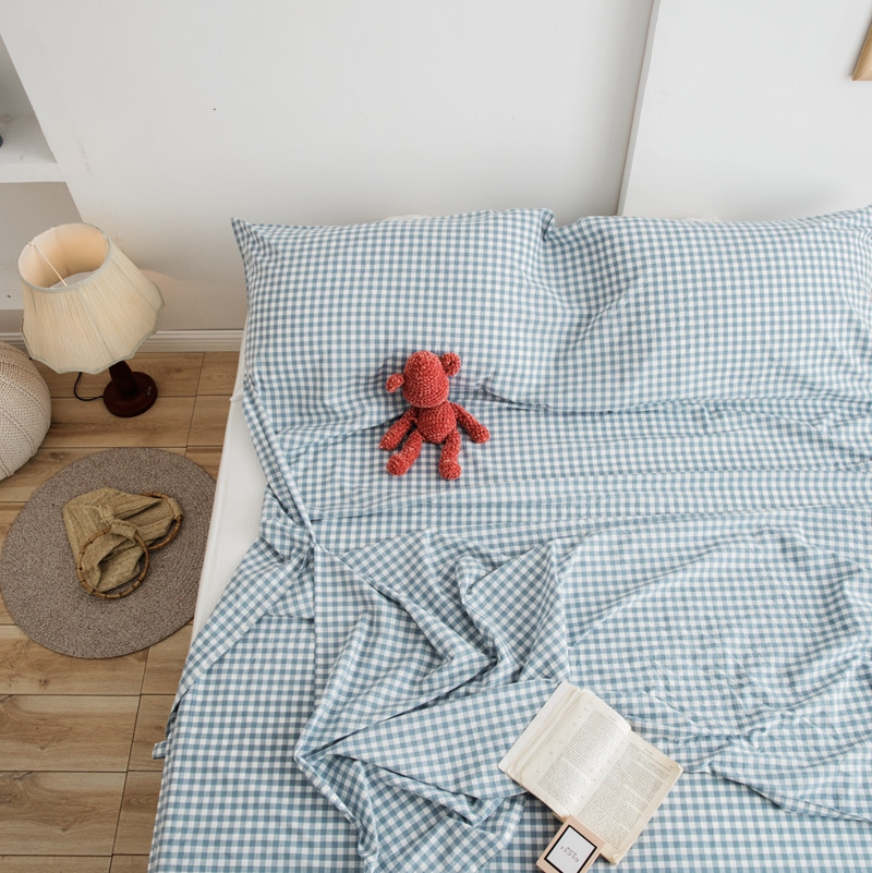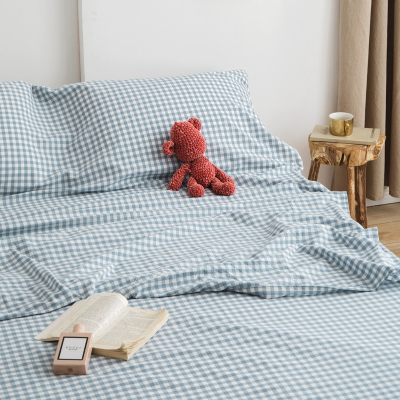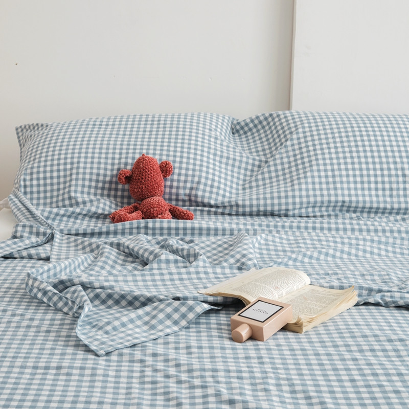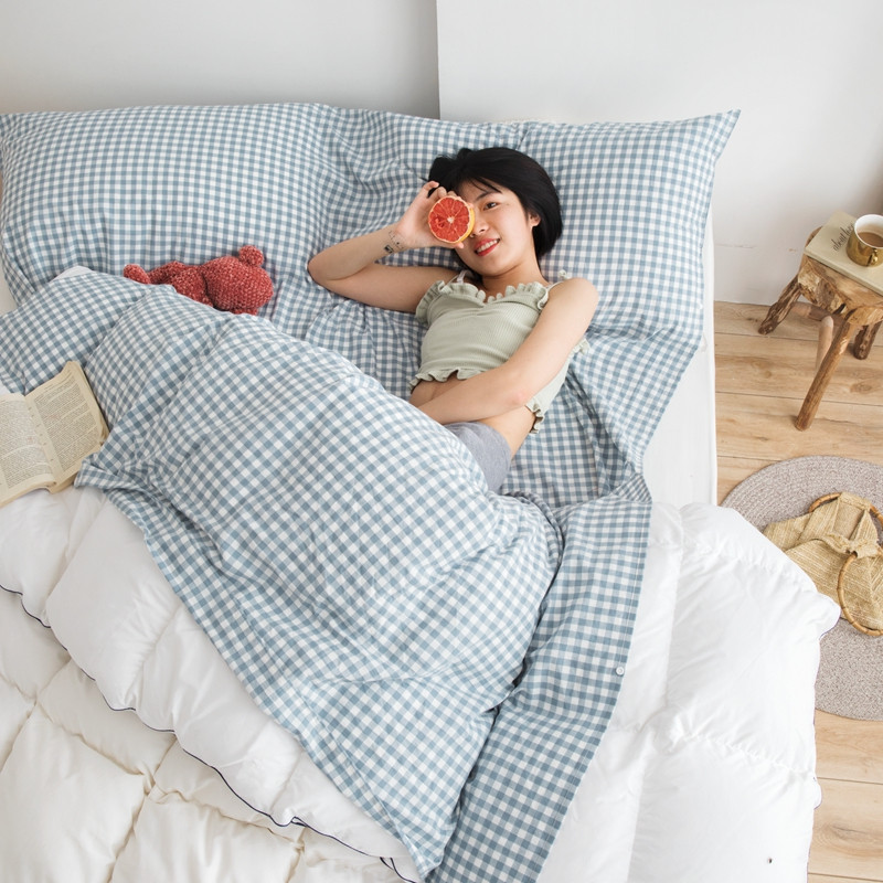 安莱生活 2021新款全棉水洗棉色织睡袋 浅蓝小格