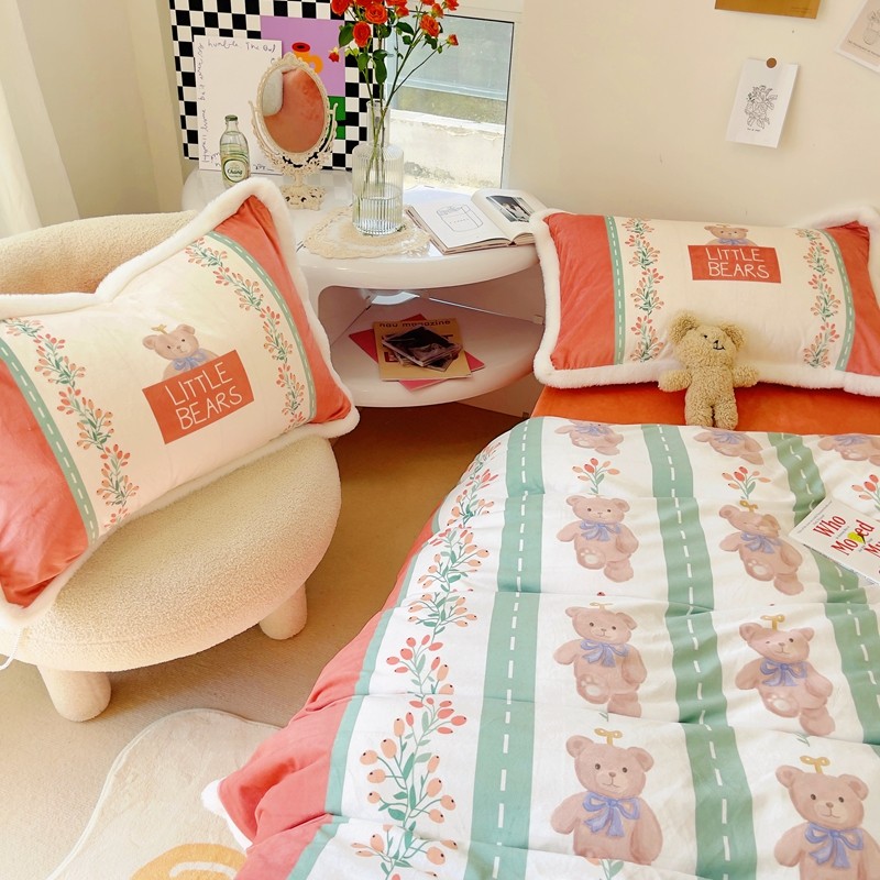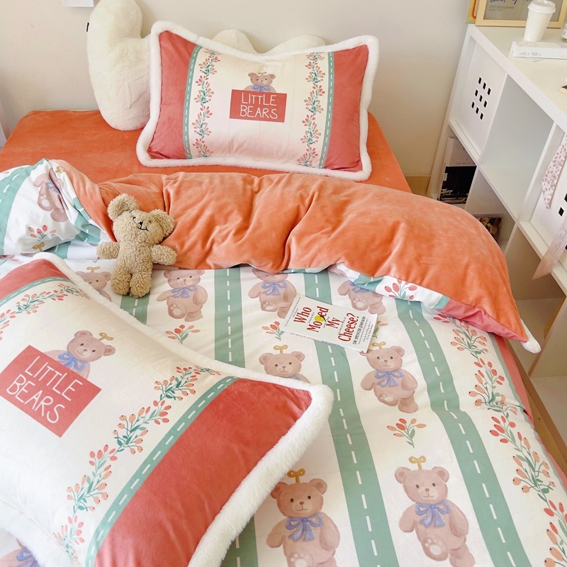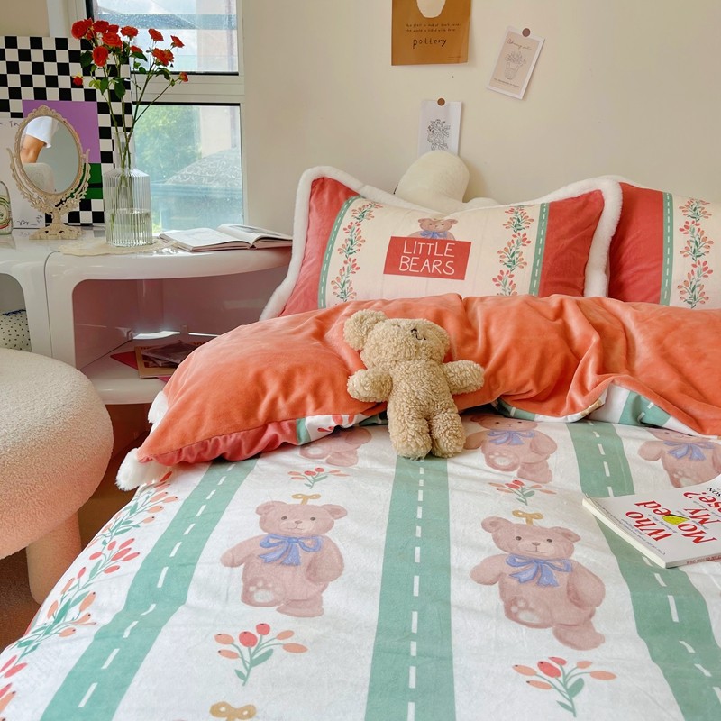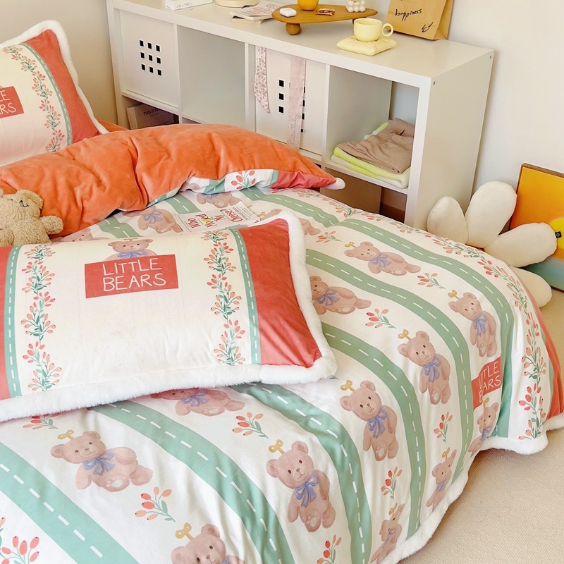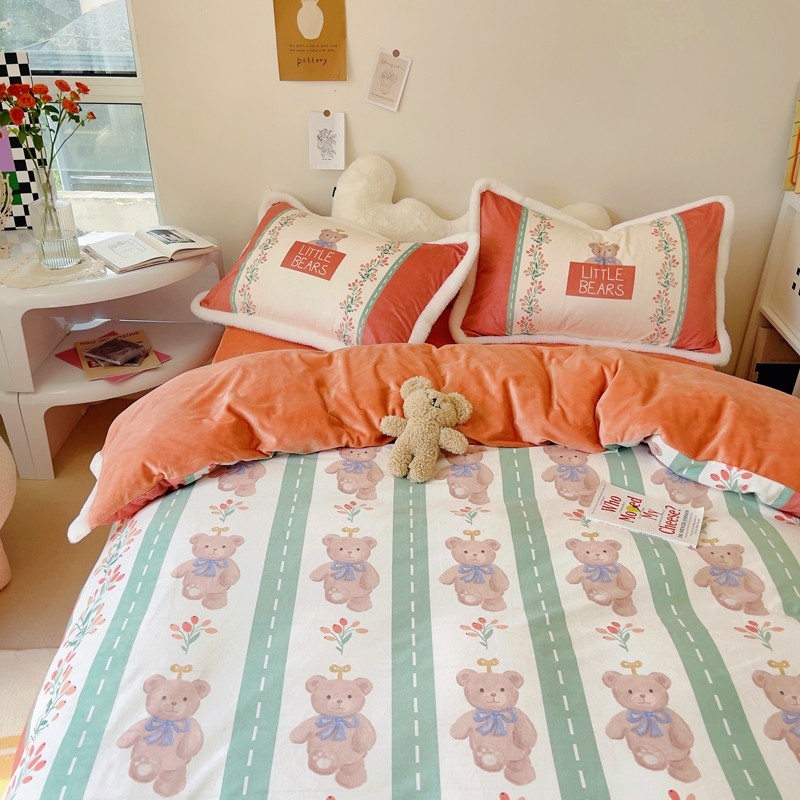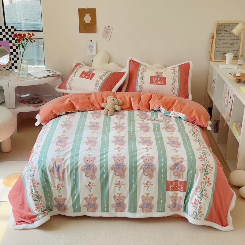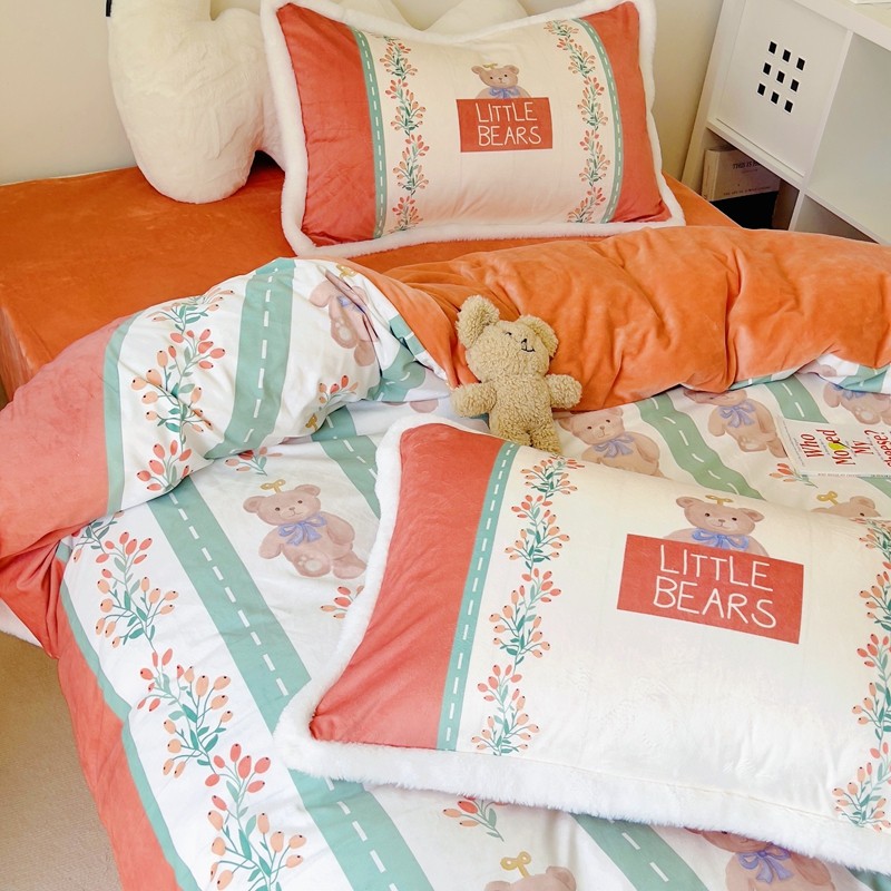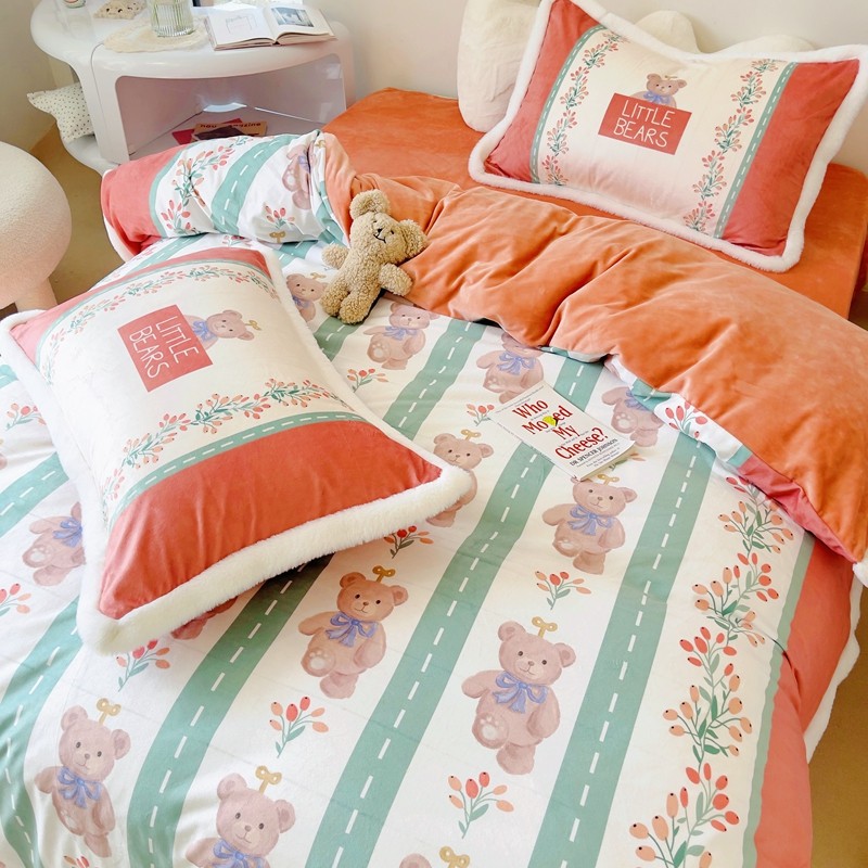 圆岛家纺 新款冬季数码印花高档婴儿绒兔兔绒四件套 小熊仔