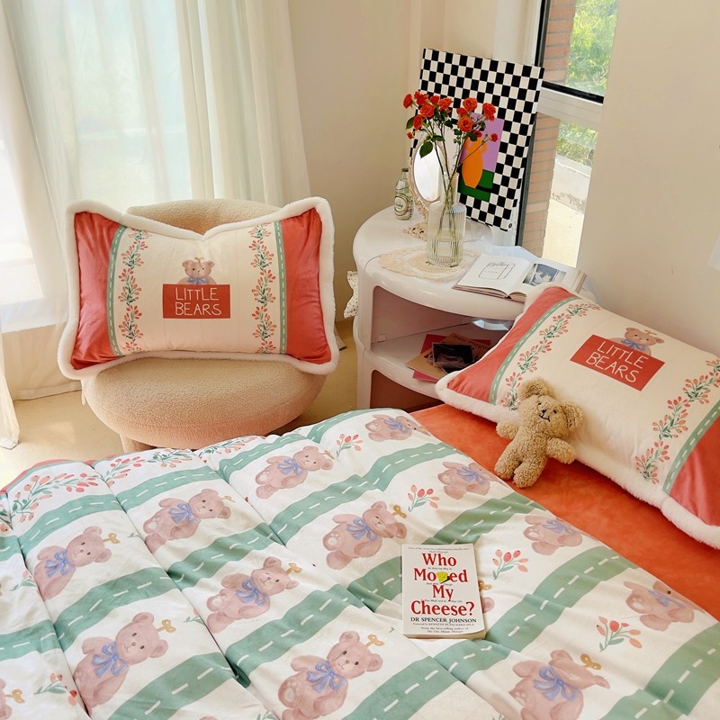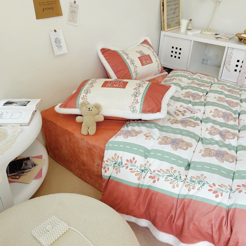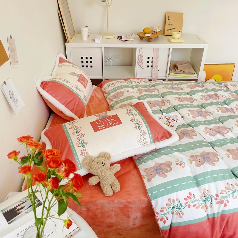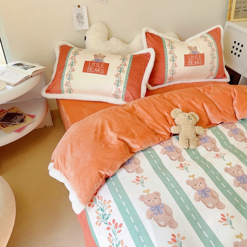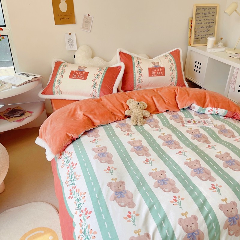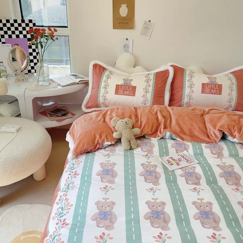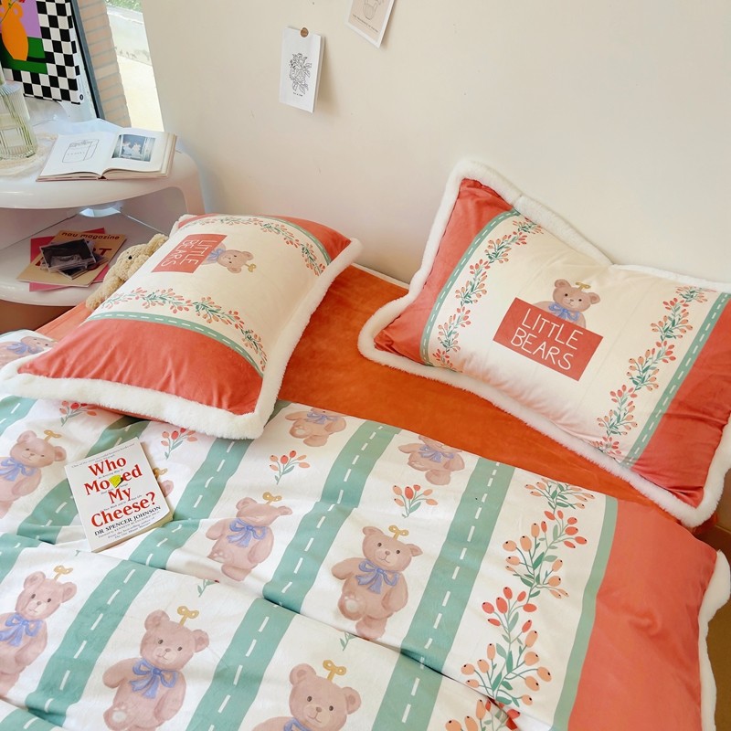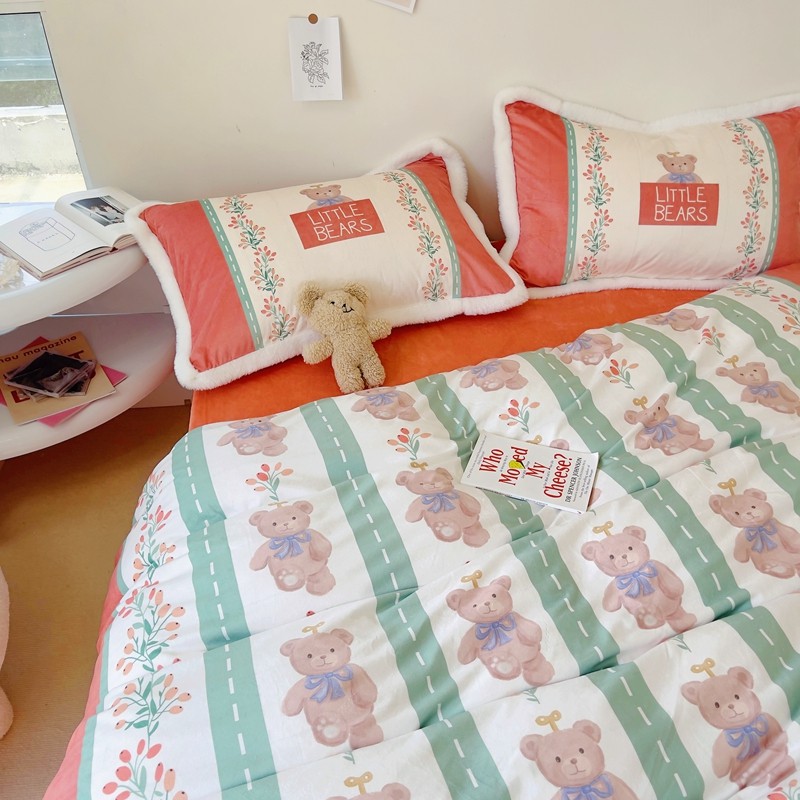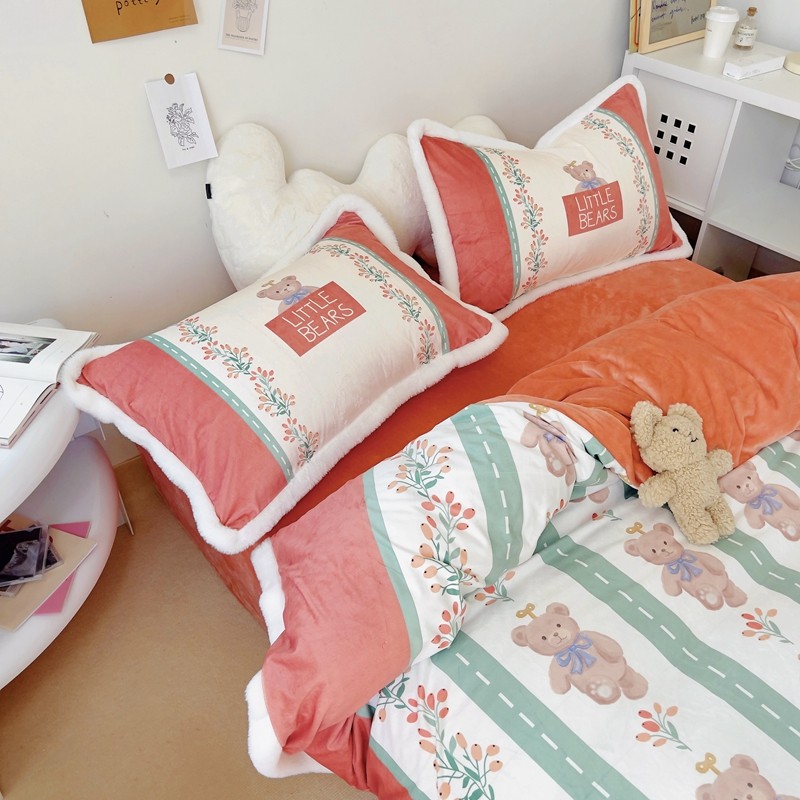 圆岛家纺 新款冬季数码印花高档婴儿绒兔兔绒四件套 小熊仔