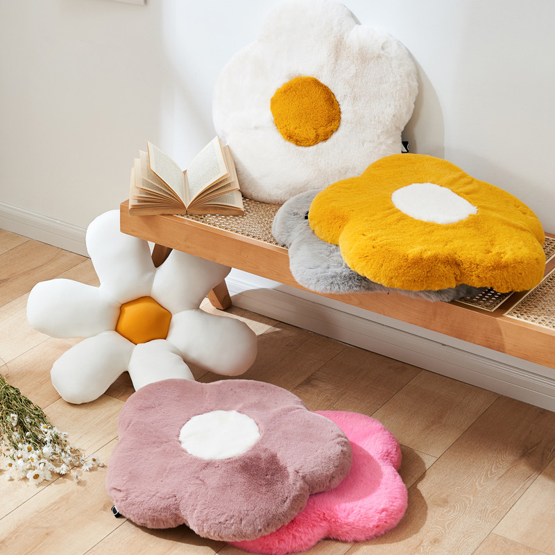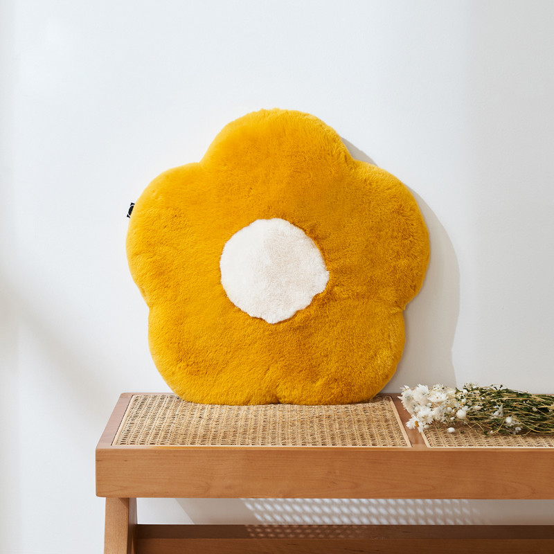 希诺新款ins大兔绒花朵记忆棉坐垫北欧风民宿风可拆洗 芒果黄