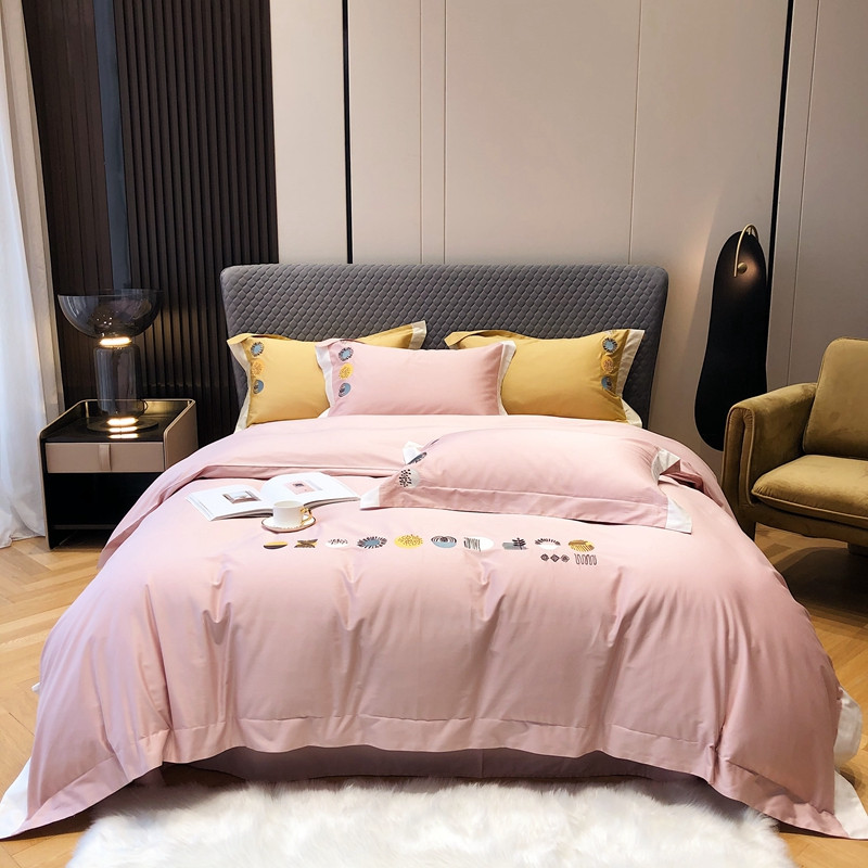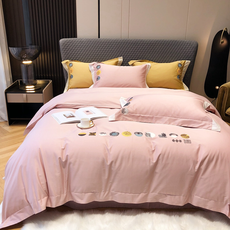 涞澳家纺 2021新款100支全棉长绒棉工艺款四件套-印象 粉