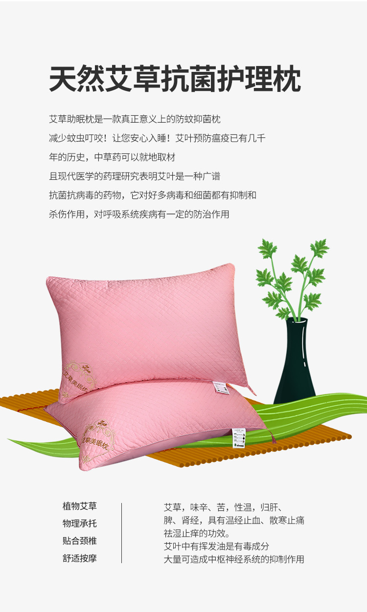 (总)梦叶草 2021新款全棉绗缝枕头艾草美眠枕芯