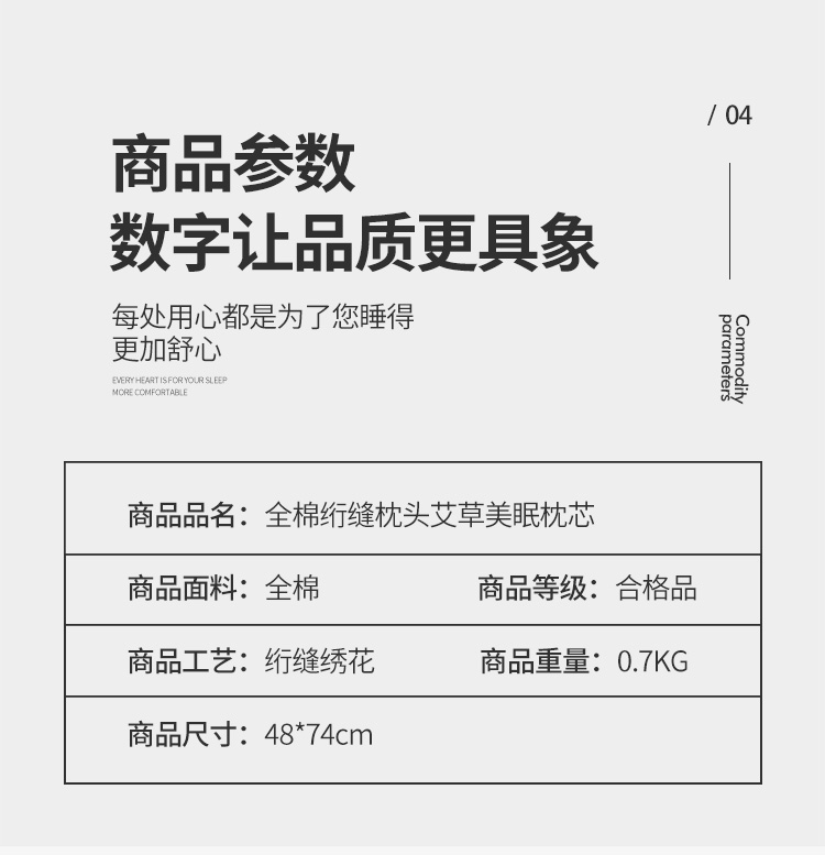 商品名称:(总)梦叶草 2021新款全棉绗缝枕头艾草美眠枕芯