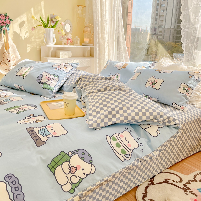(总)卡巴伦家纺 2025新款全棉皱皱纱大版卡通数码印花款四件套一,洛可可兔-粉,班尼的花园-粉,班尼的花园-黄,漂亮的领结-绿,漂亮的领结-米白,熊猫噗噗-绿,樱桃真甜-奶白