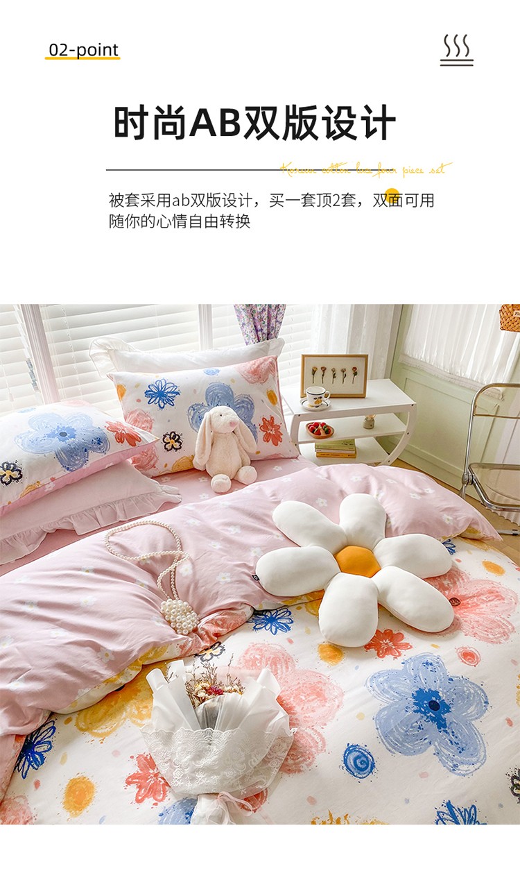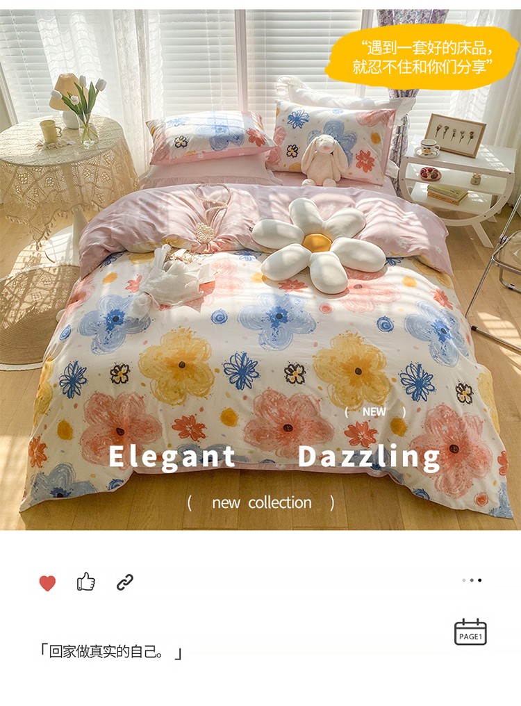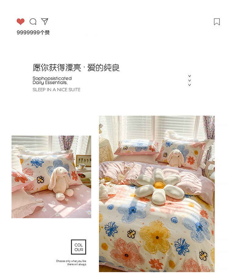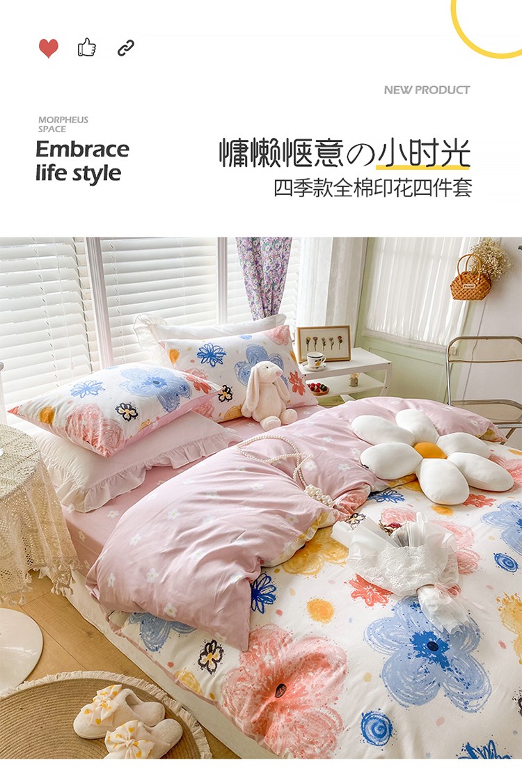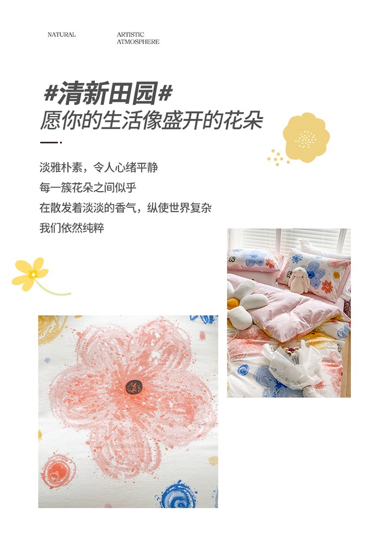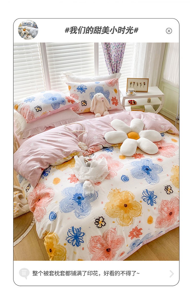 (总)珺柔家纺 2023新款13372全棉印花四件套,朵拉花园,粉色郁金香 ,可爱兔,迷你兔,太阳花,顽皮狗,喜结连理,薰衣草