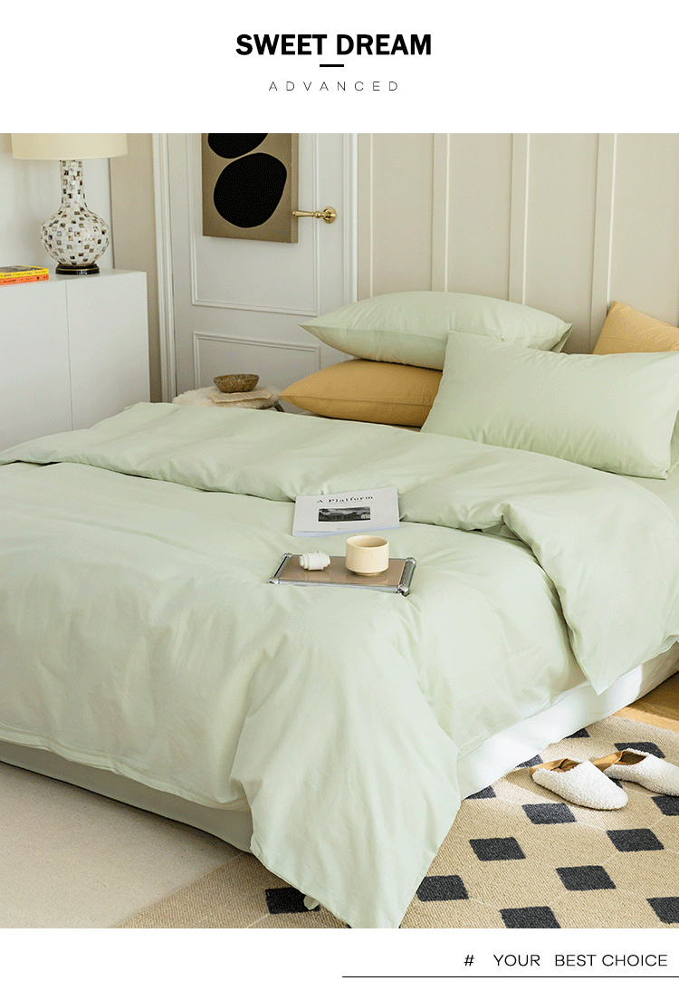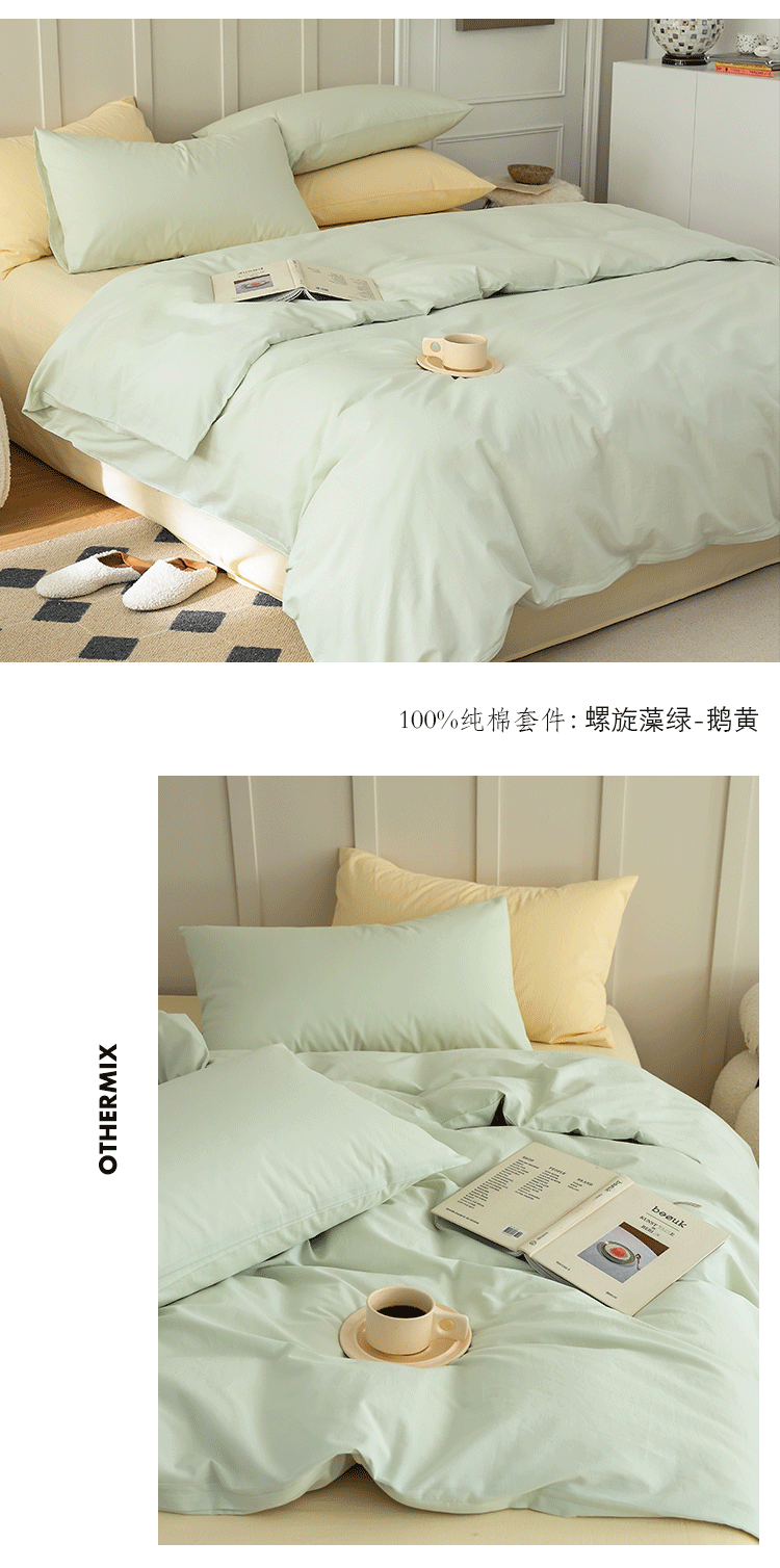 当前位置: 91家纺网 > 商品网购 > 床品套件 > 四件套 > 水洗棉四件套 > 北欧风ins纯棉水洗棉床四件套全棉简约被套床单上三件套床笠 螺旋藻绿