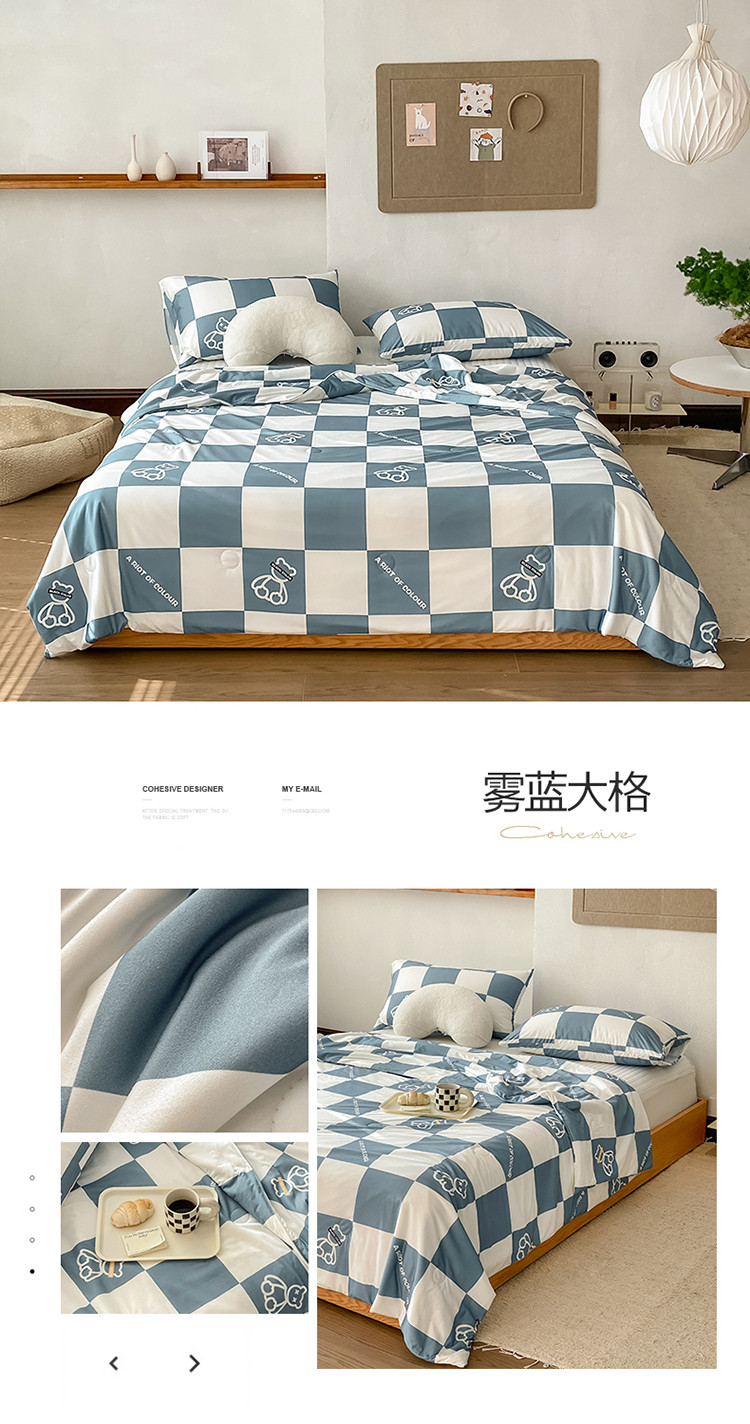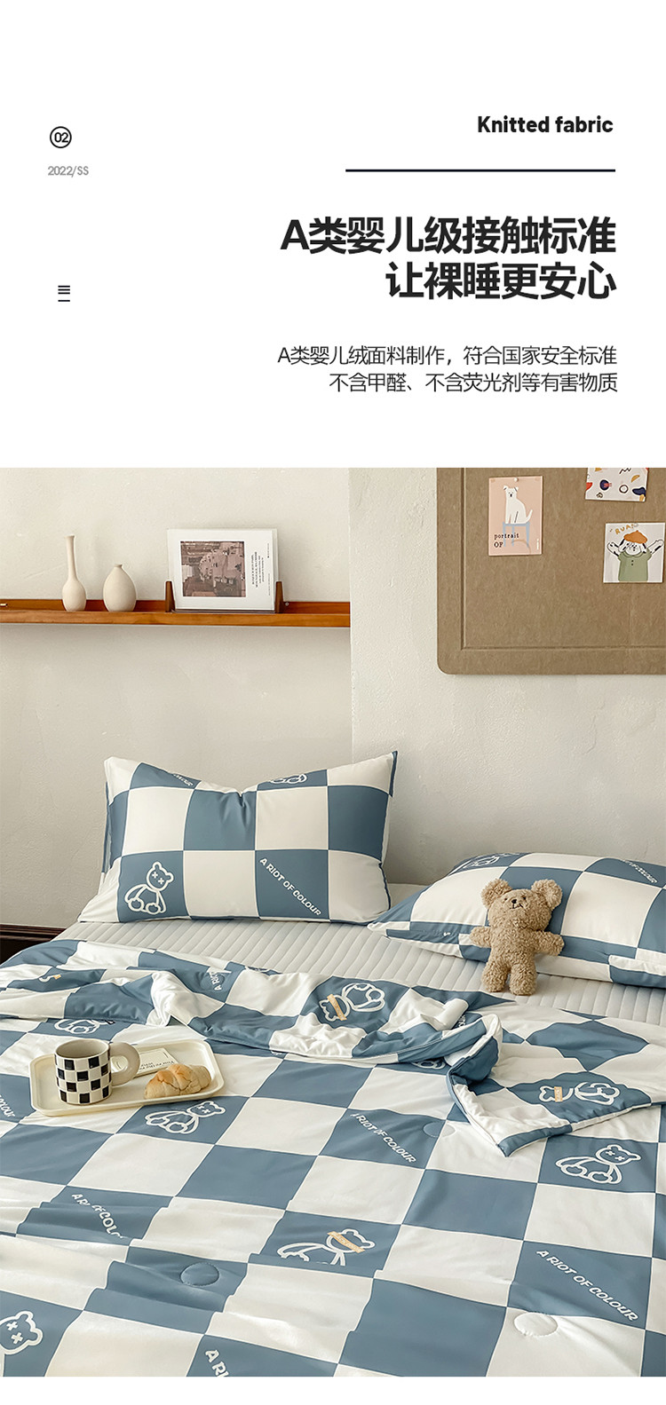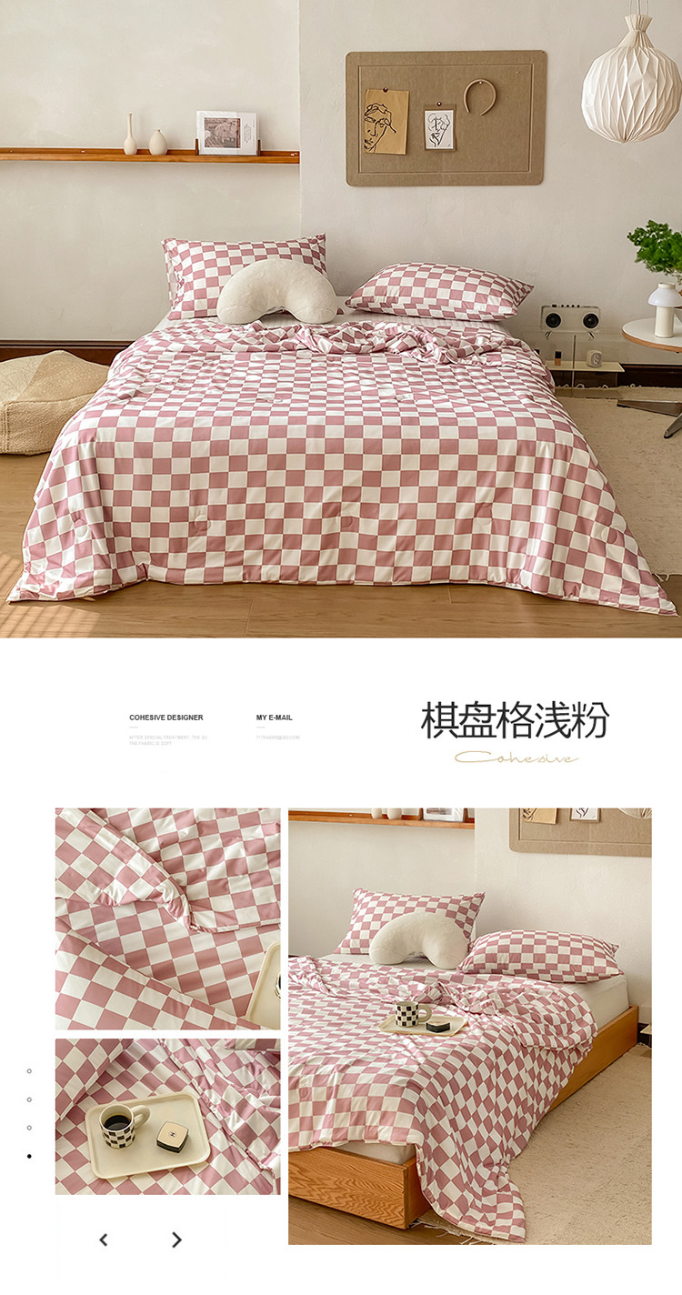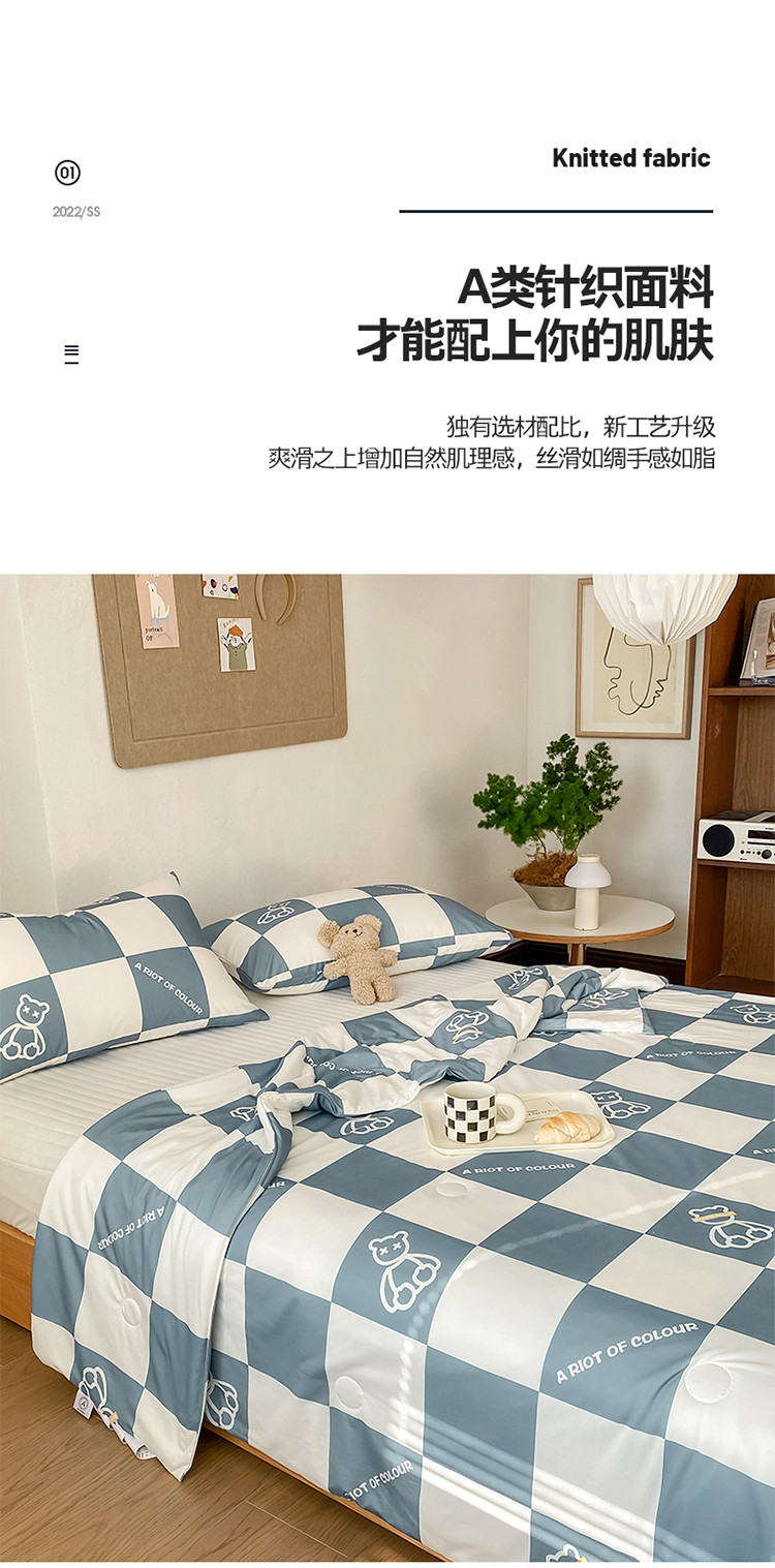 (总)寐眠 2023新款全棉色织水洗棉儿童夏被,粉大格,粉小格,灰白格,蓝大格,蓝小格,雾蓝格,小粉格