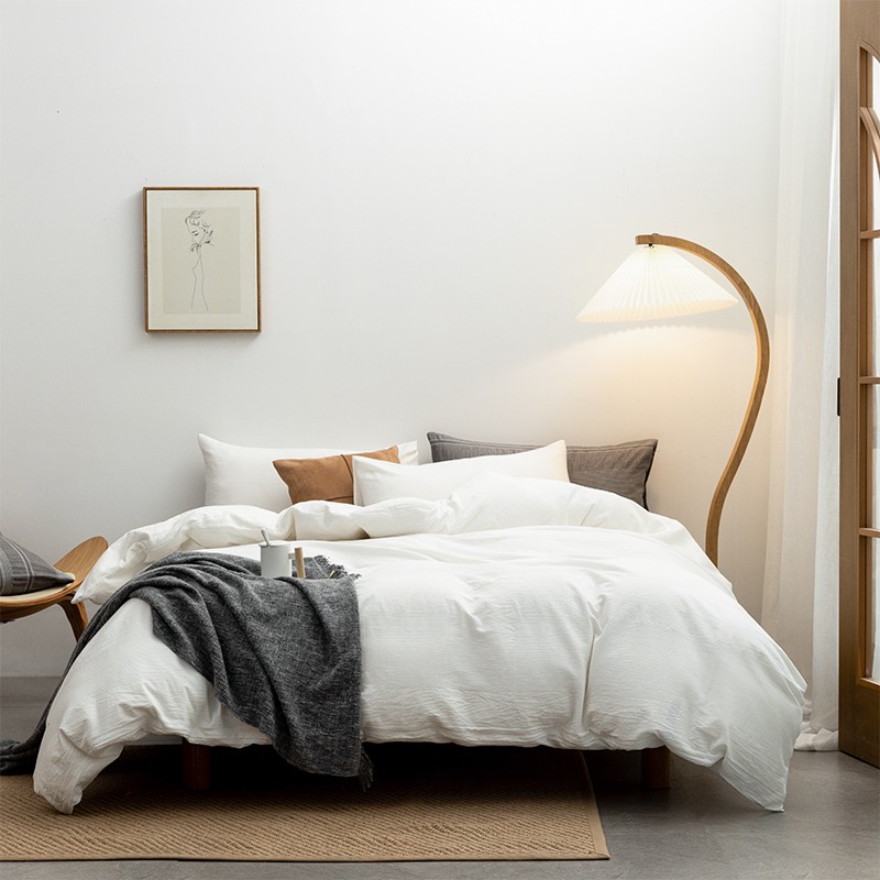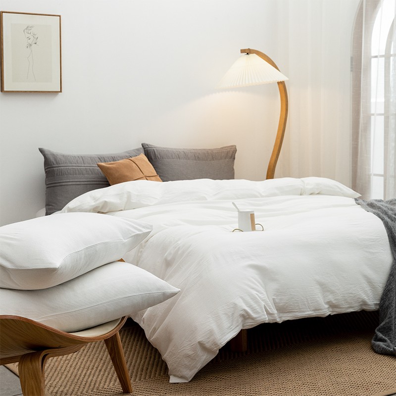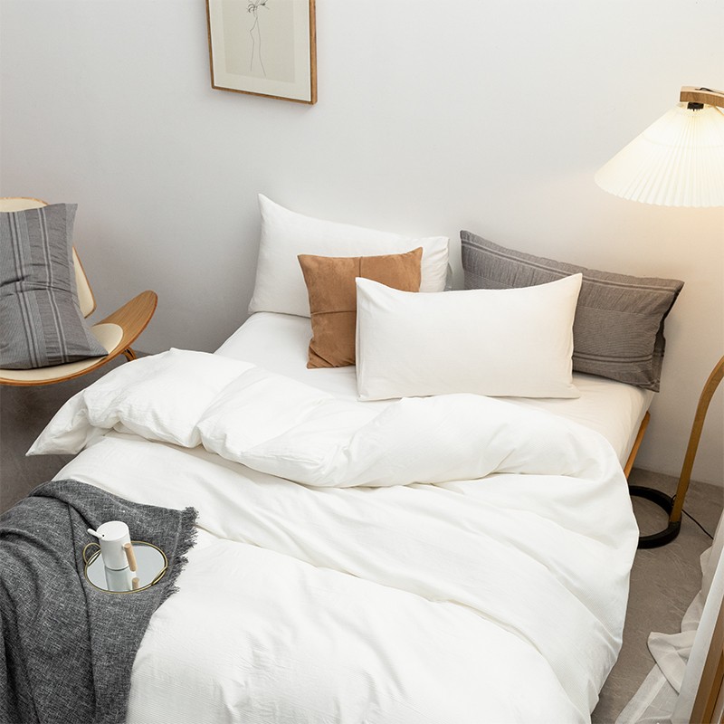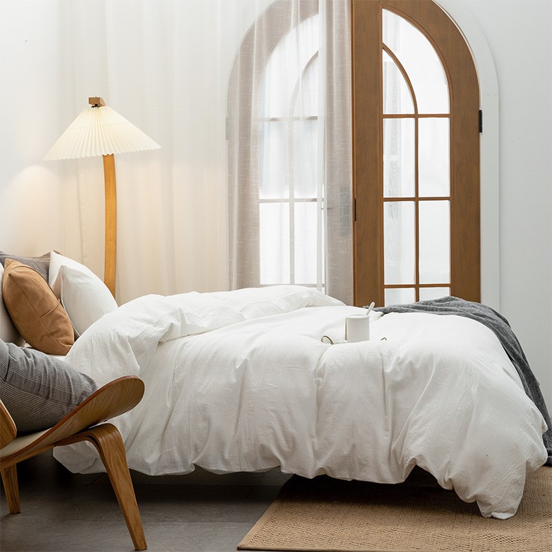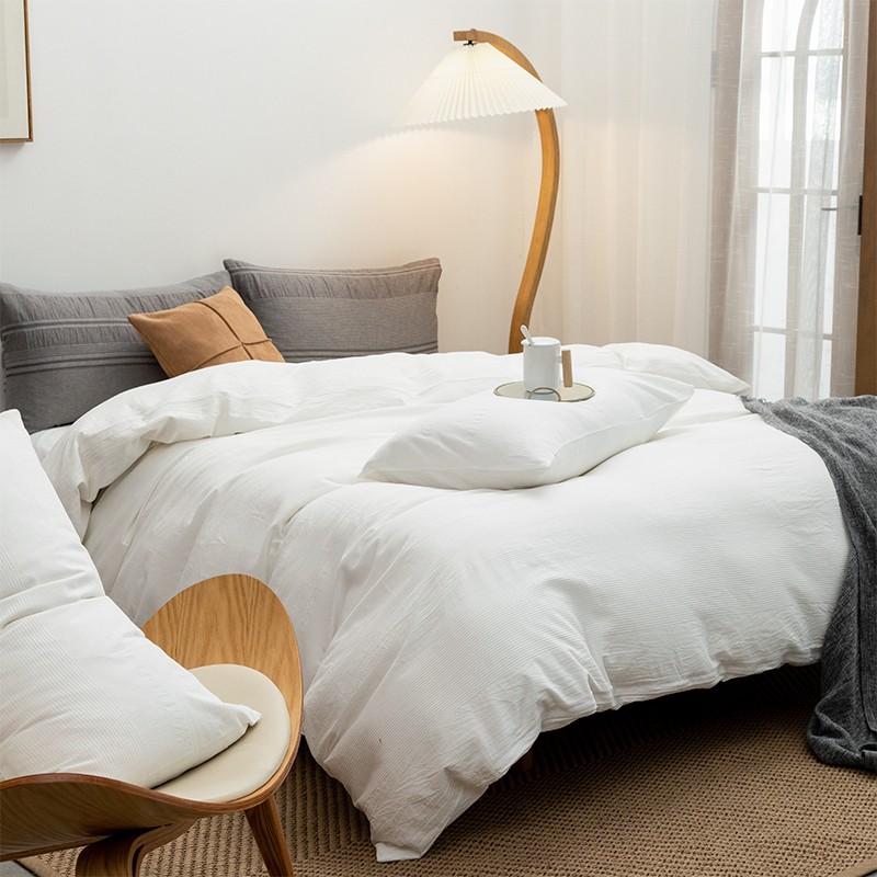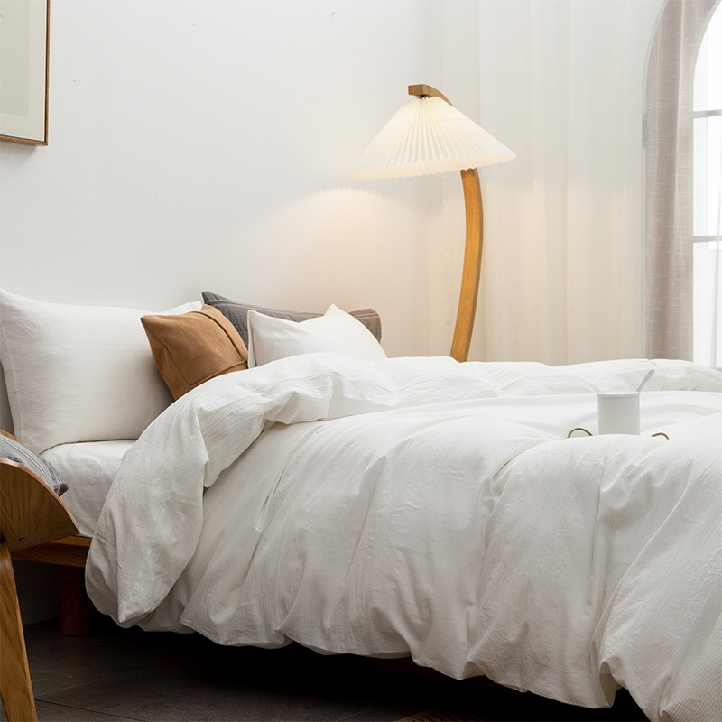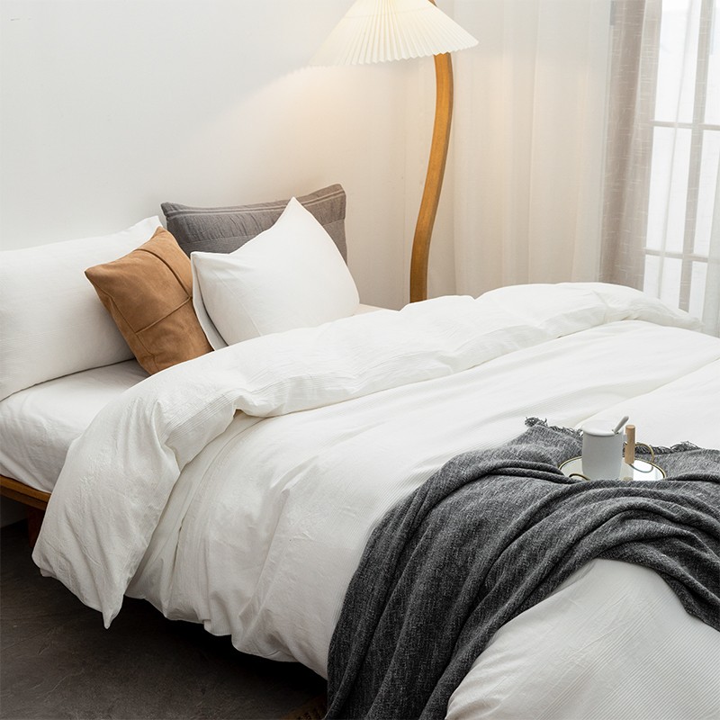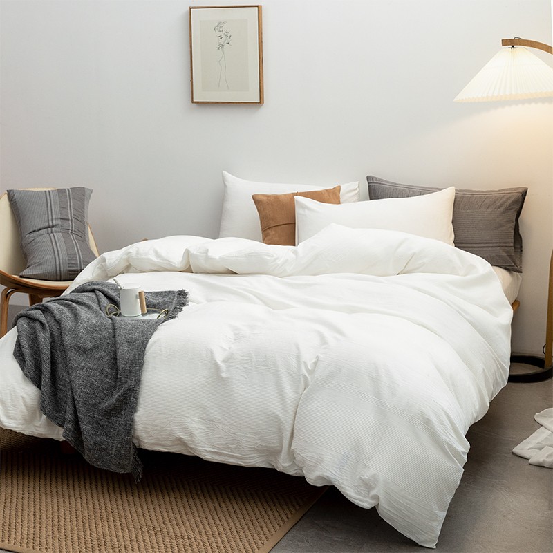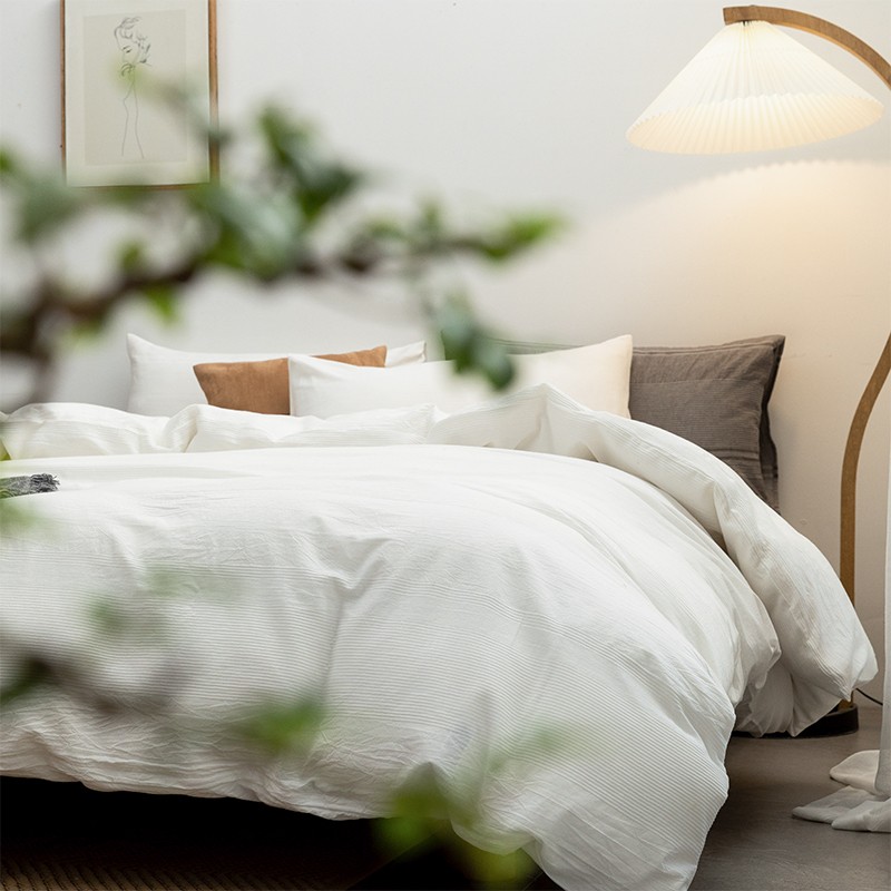 当前位置: 91家纺网 > 商品网购 > 床品套件 > 四件套 > 水洗棉四件套 > 2022年新款日式简约良品全棉色织水洗棉提花四件套淡雅白
