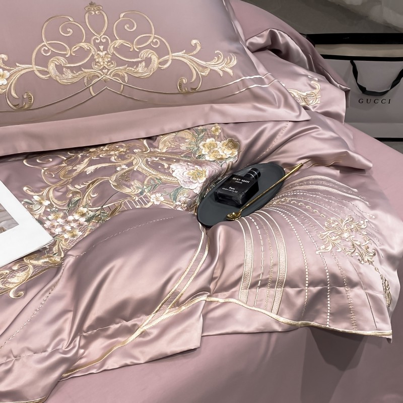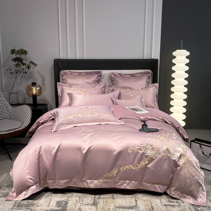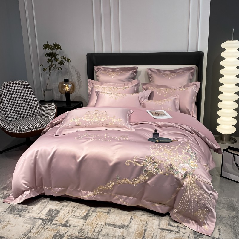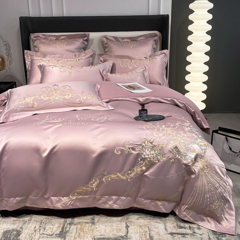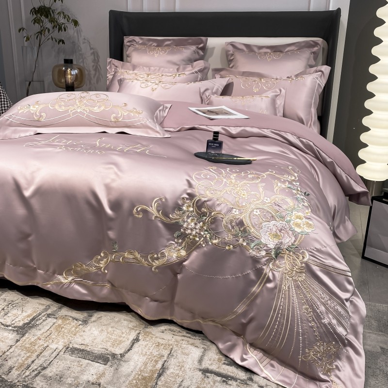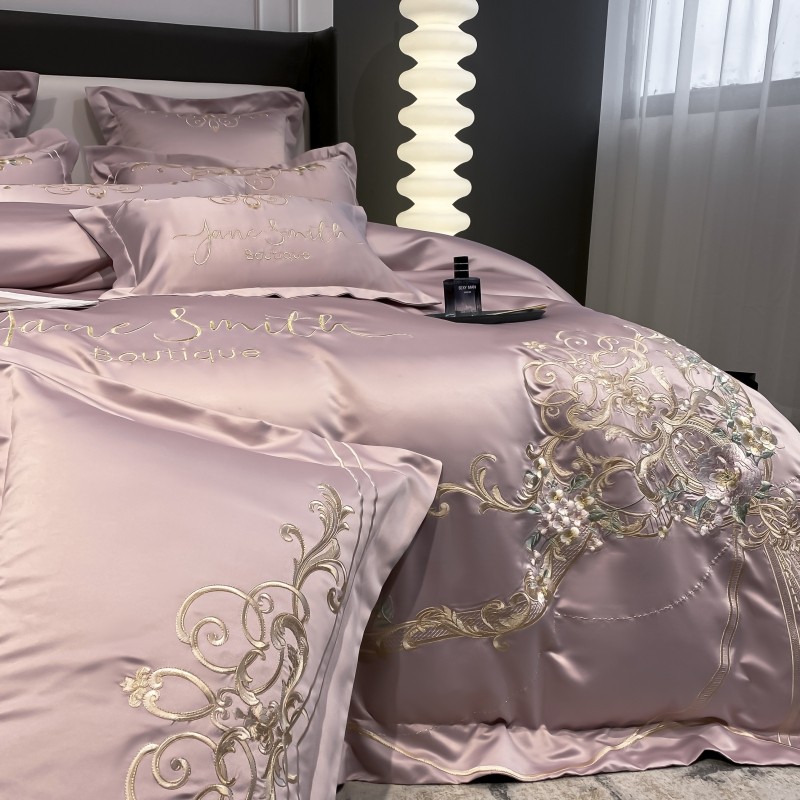 (总)博纳家纺 2025新款亲服棉宽边高级简奢款绣花四件套-盛世年华,宾利蓝,繁星蓝,粉玉,高级灰,香槟