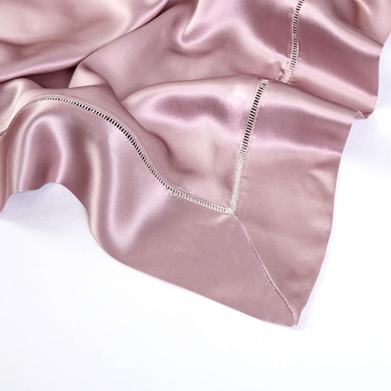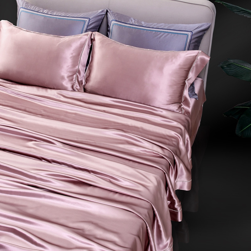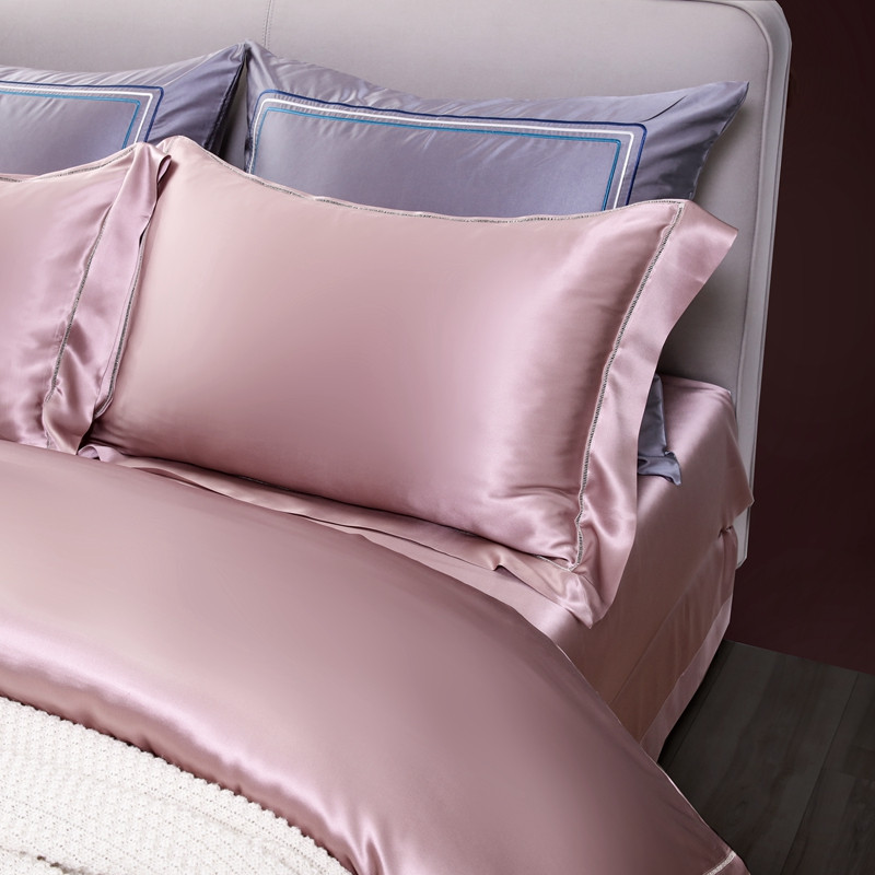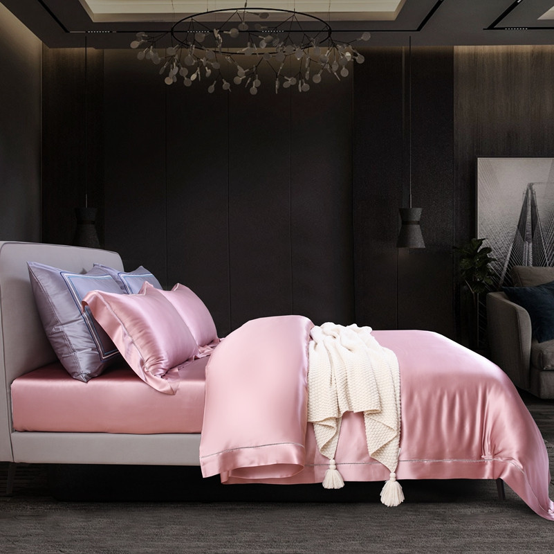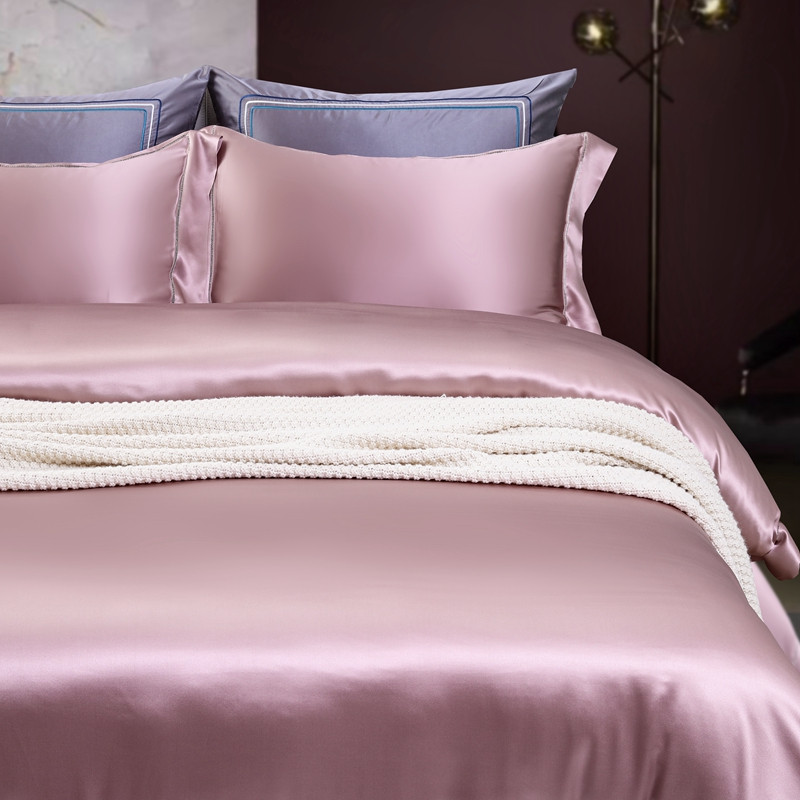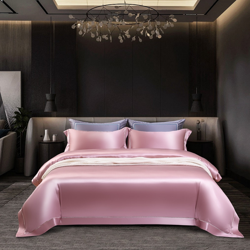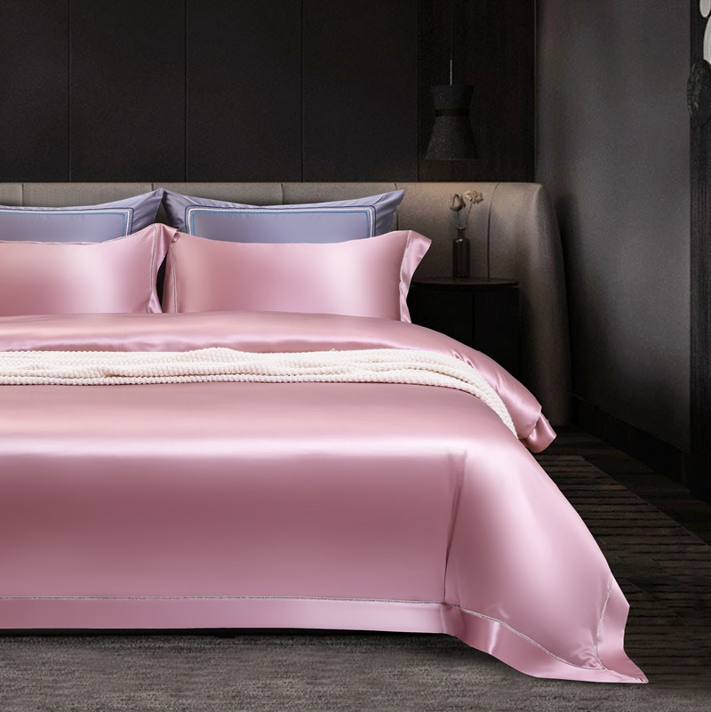 晋瑞红顶鹅绒馆新款纯色全真丝工艺款四件套 芍药粉