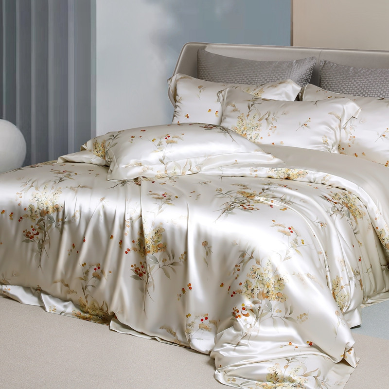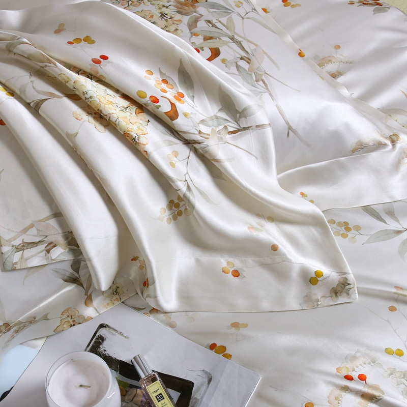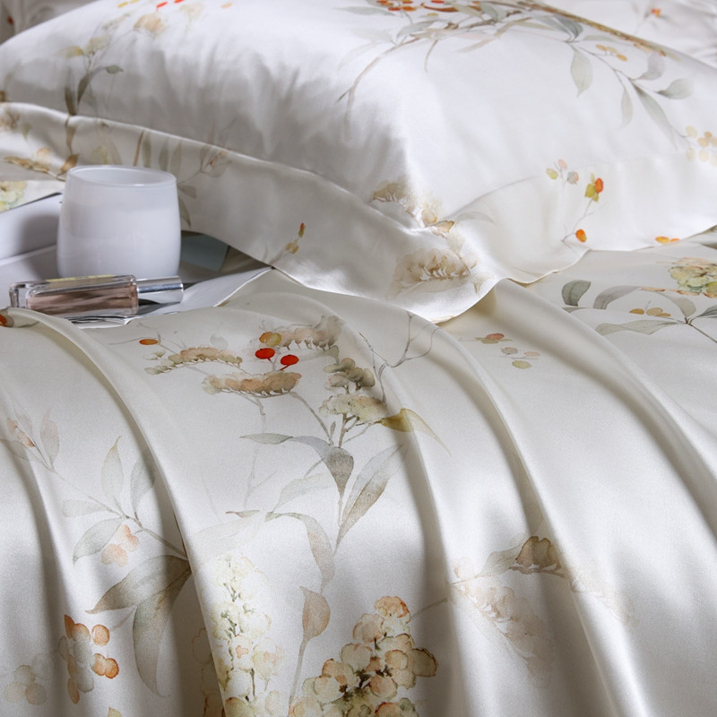 (总)晋瑞红顶鹅绒馆 新款全真丝数码印花四件套,浅若清风