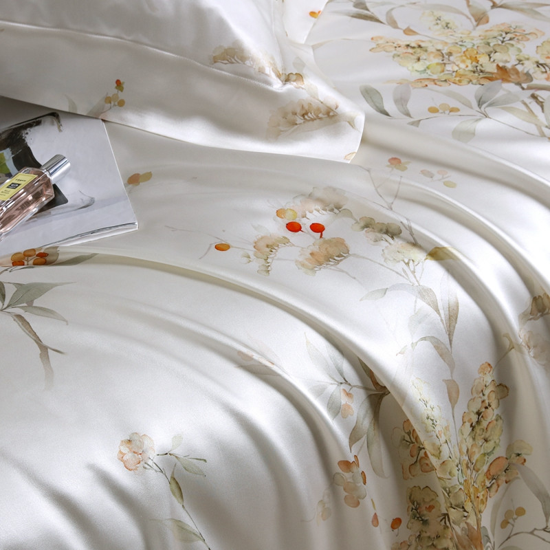 晋瑞红顶鹅绒馆 新款全真丝数码印花四件套 浅若清风