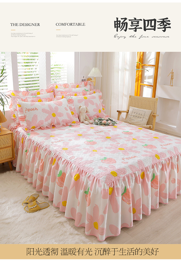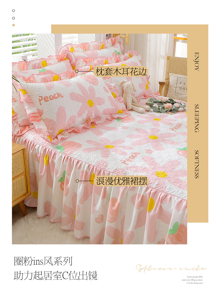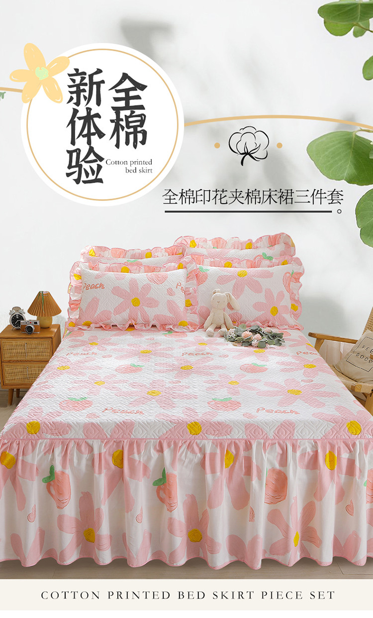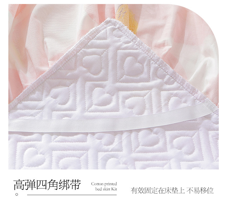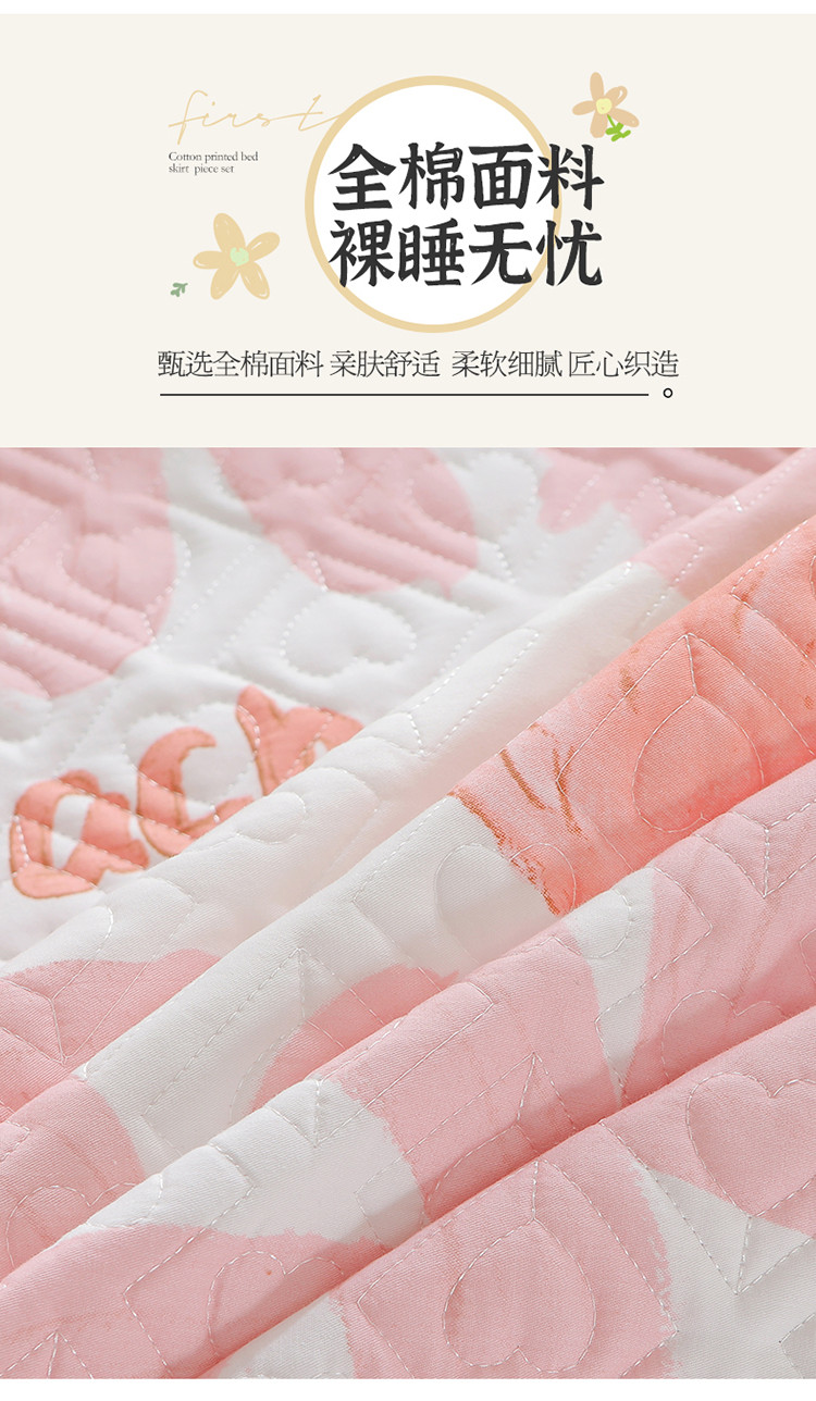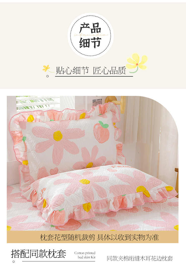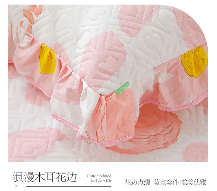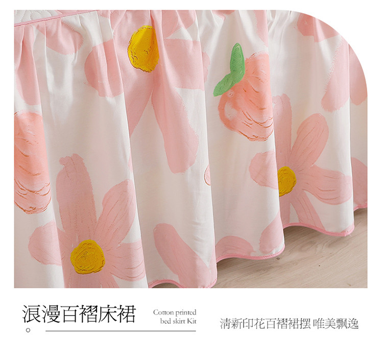 宜凡家纺 2023新款全棉印花花边床裙三件套 静待花开-粉